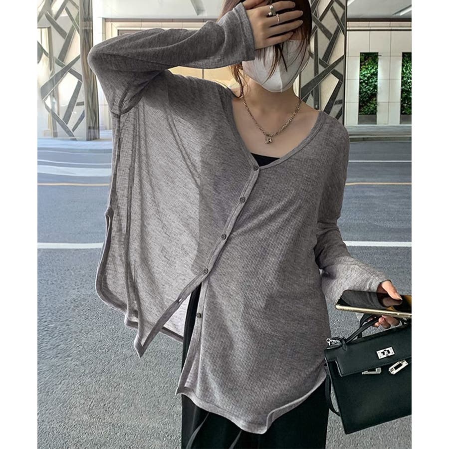 サイドスリット 薄手UVカーディガン 長袖ゆったり 紫外線対策 冷房対策上着 涼しい韓国風シアートップス 着やせ 前開き