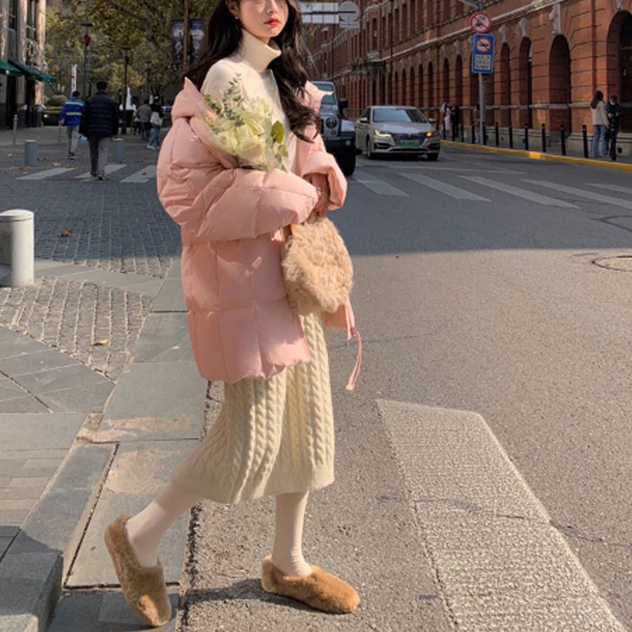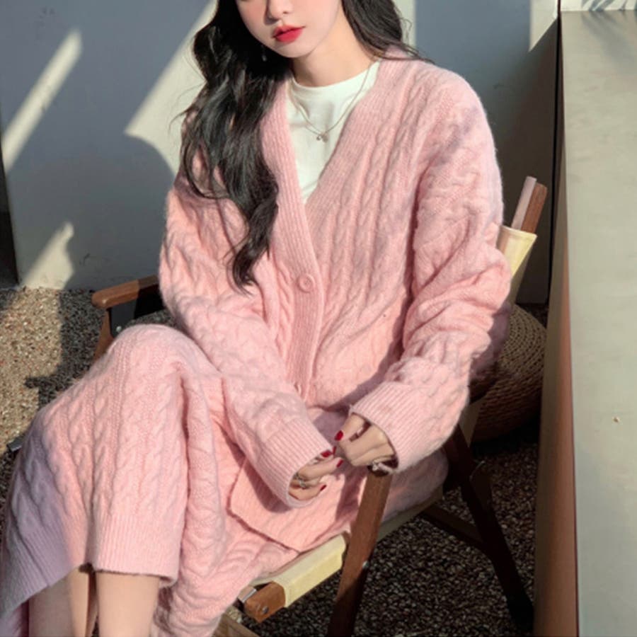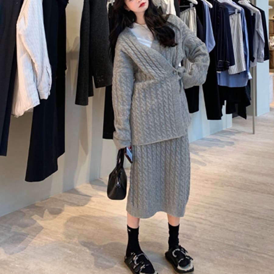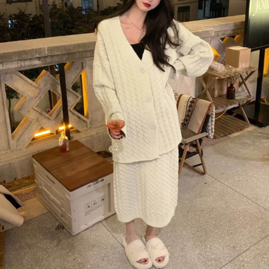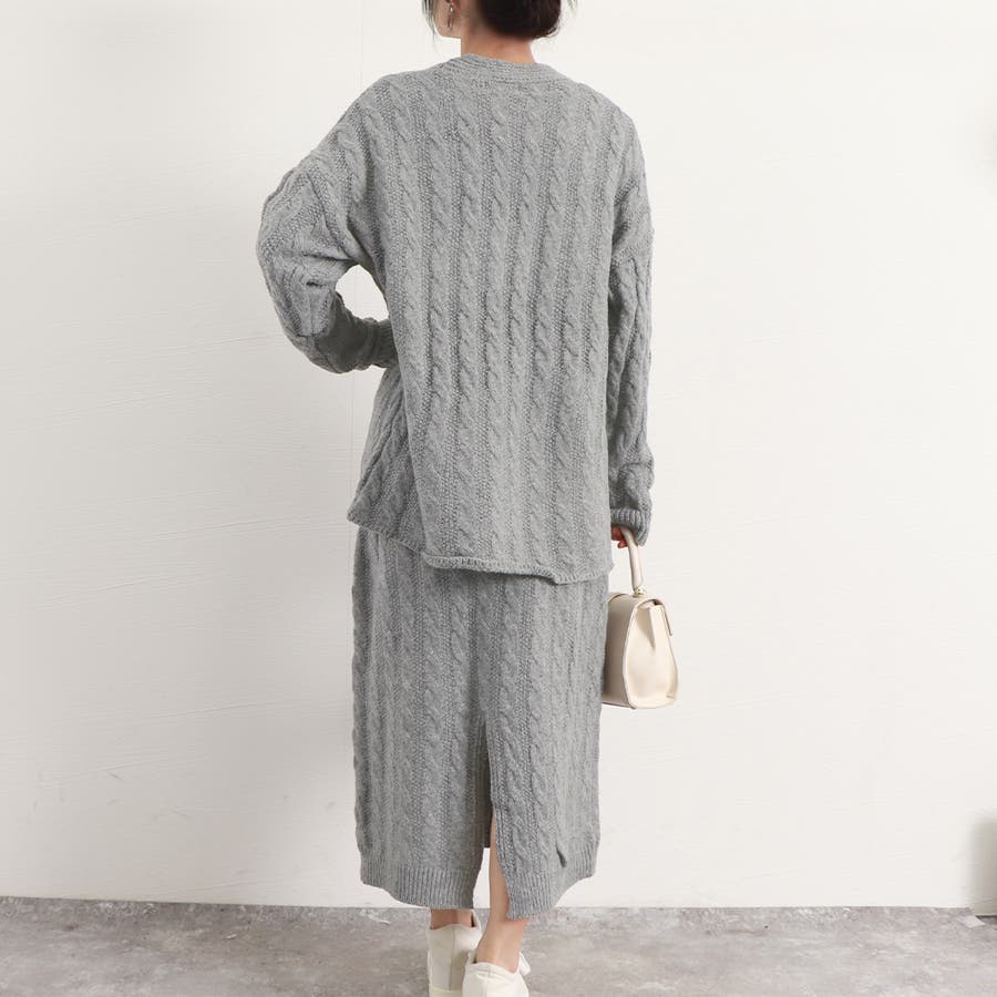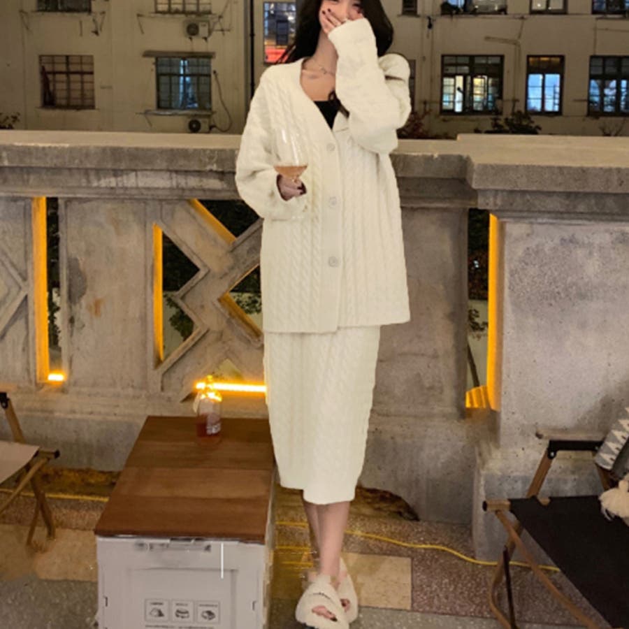 ゆったりラフに羽織れるカーディガンとニットスカートの上下セットアップ