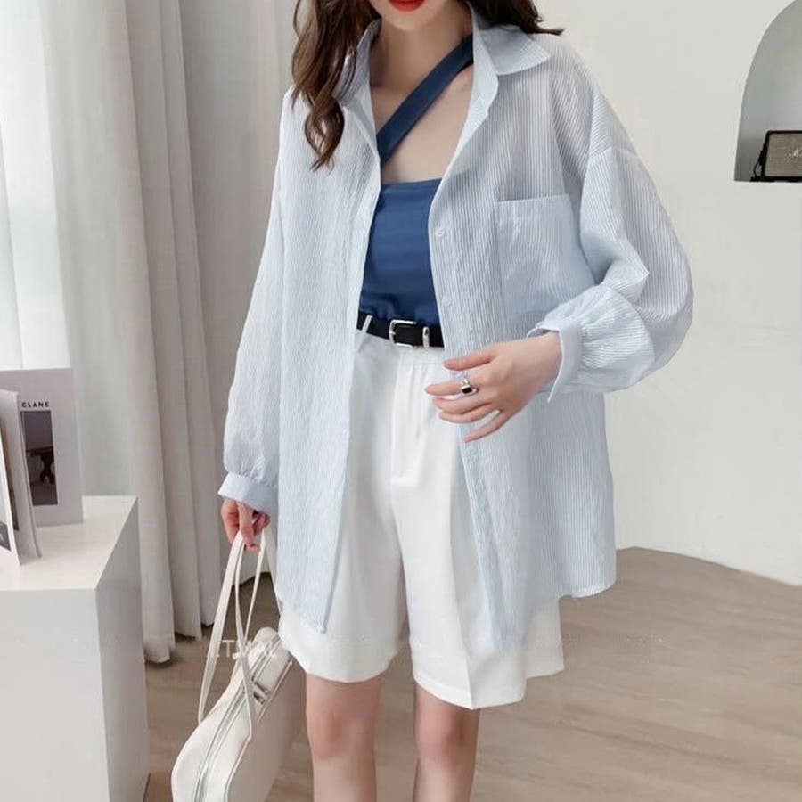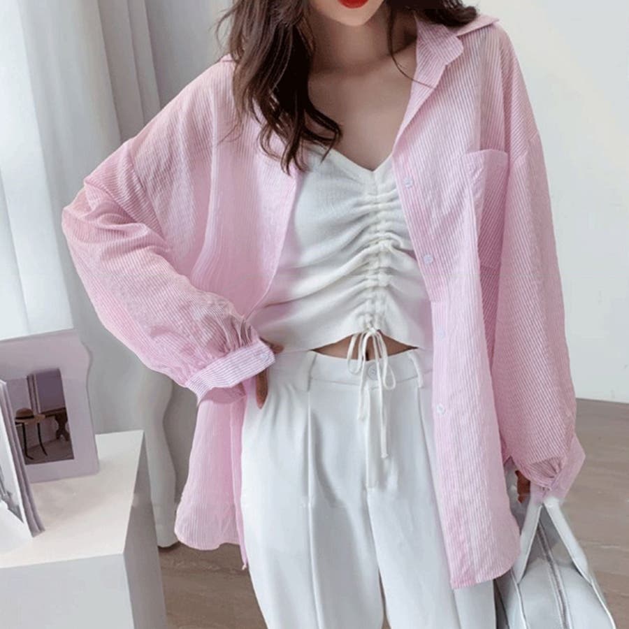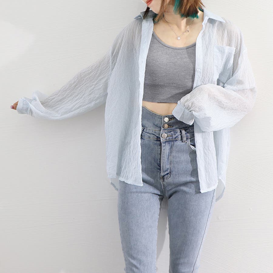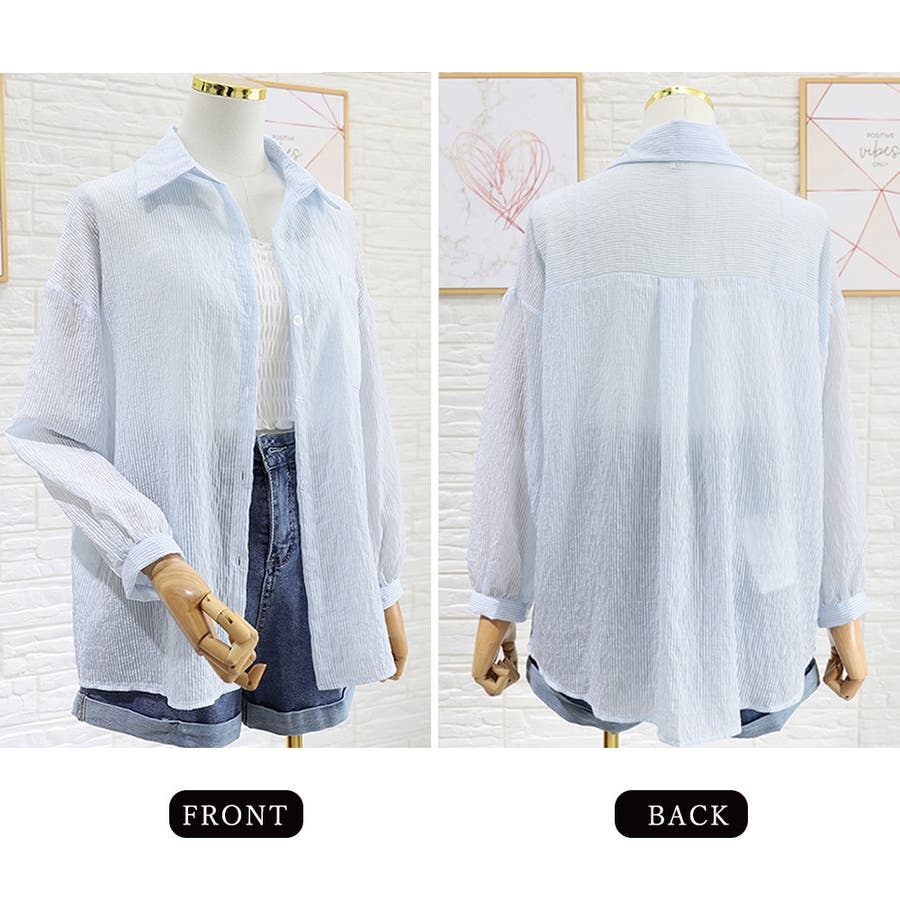 ストライプ ブラウス シアーシャツ 夏服