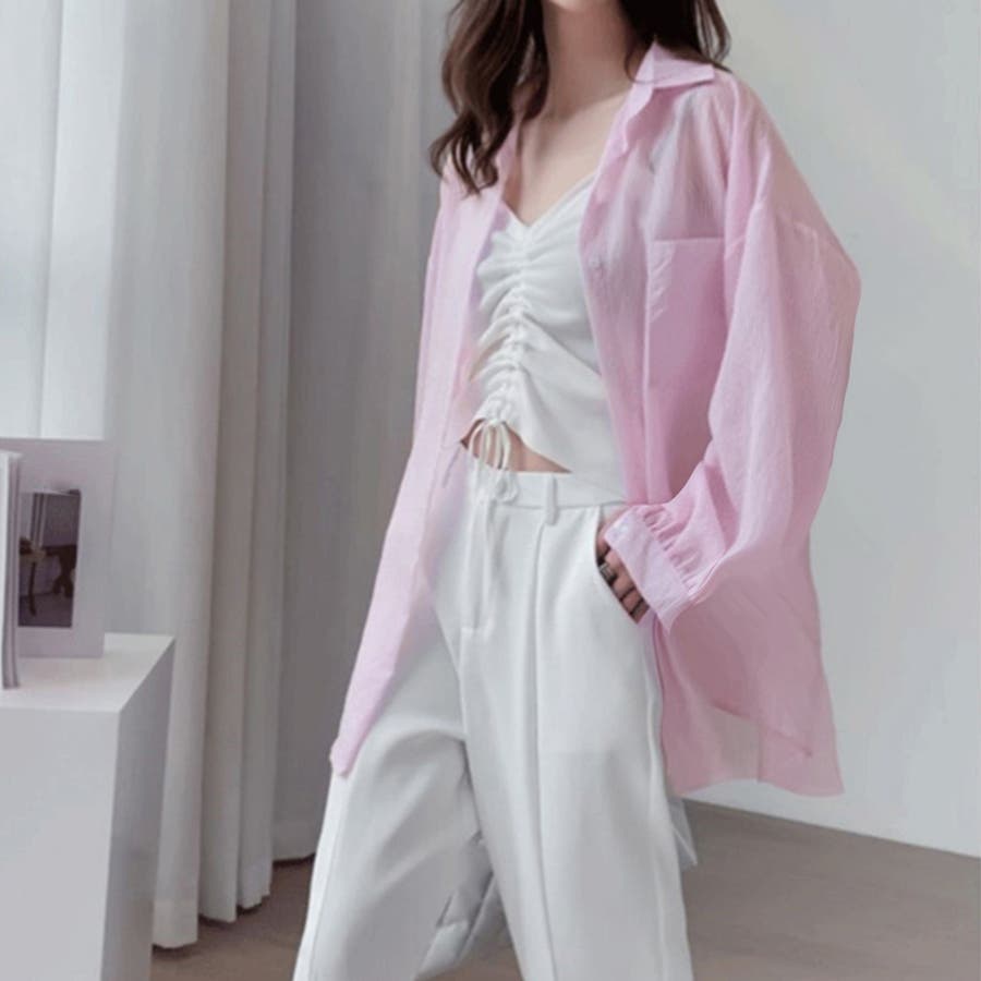 体型カバートップス シャツカーディガン シアーカーディガン