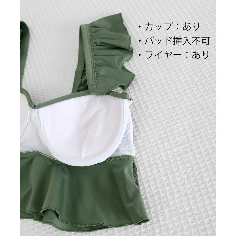 スカート部分のラッフルフリルが、体型カバーしつつ可愛らしい印象を与える。