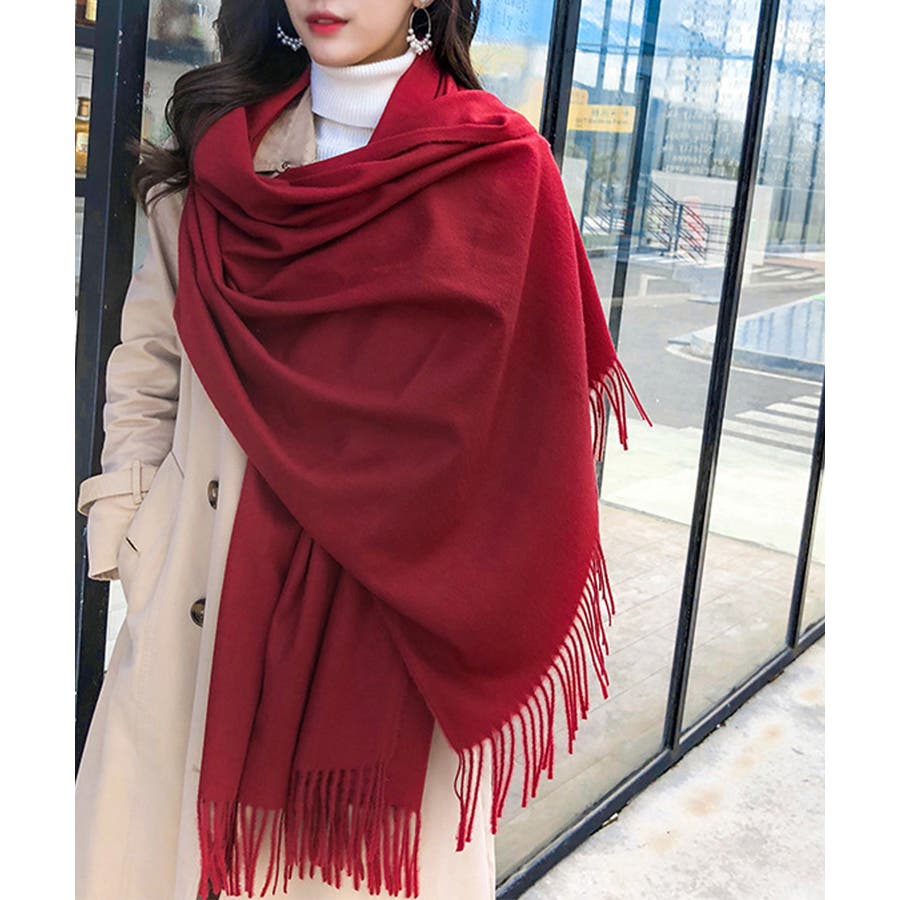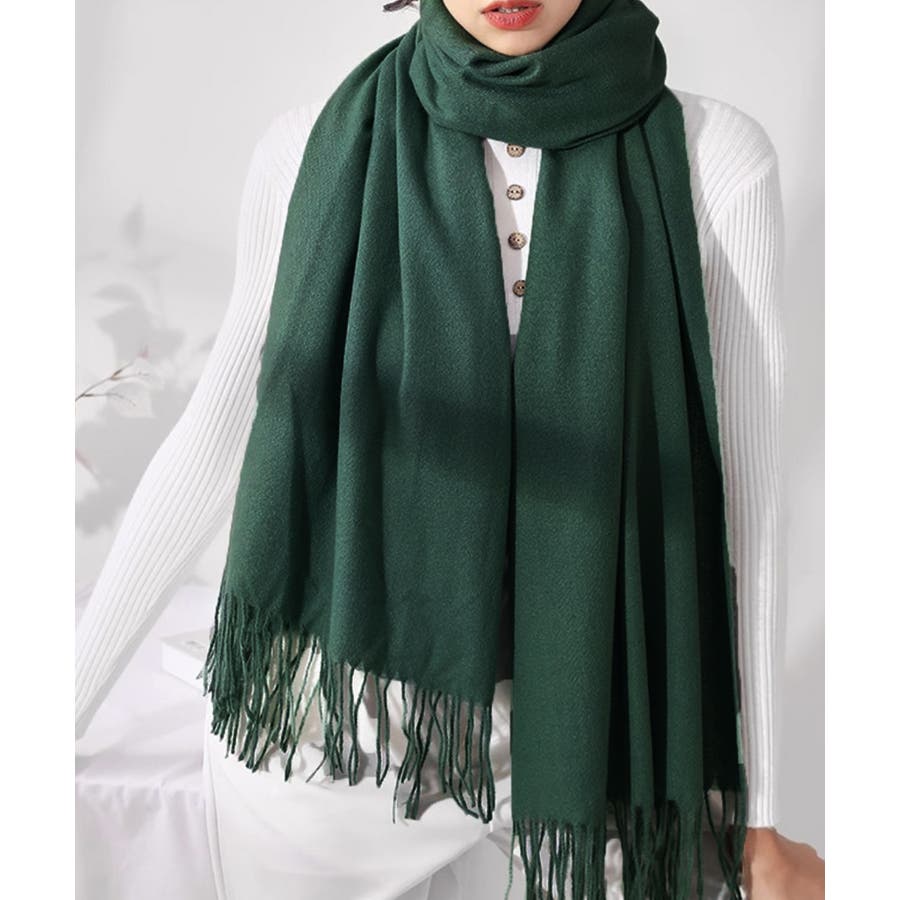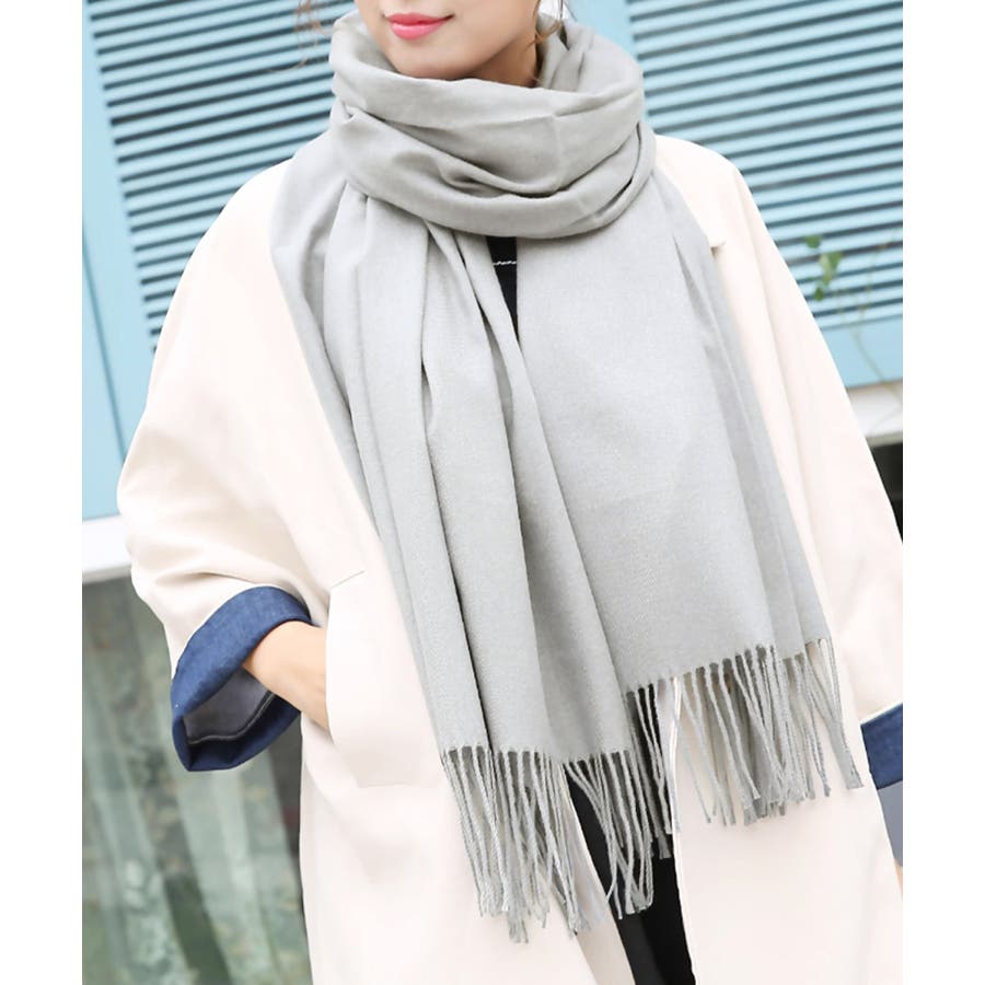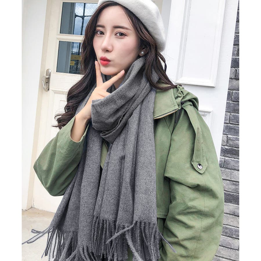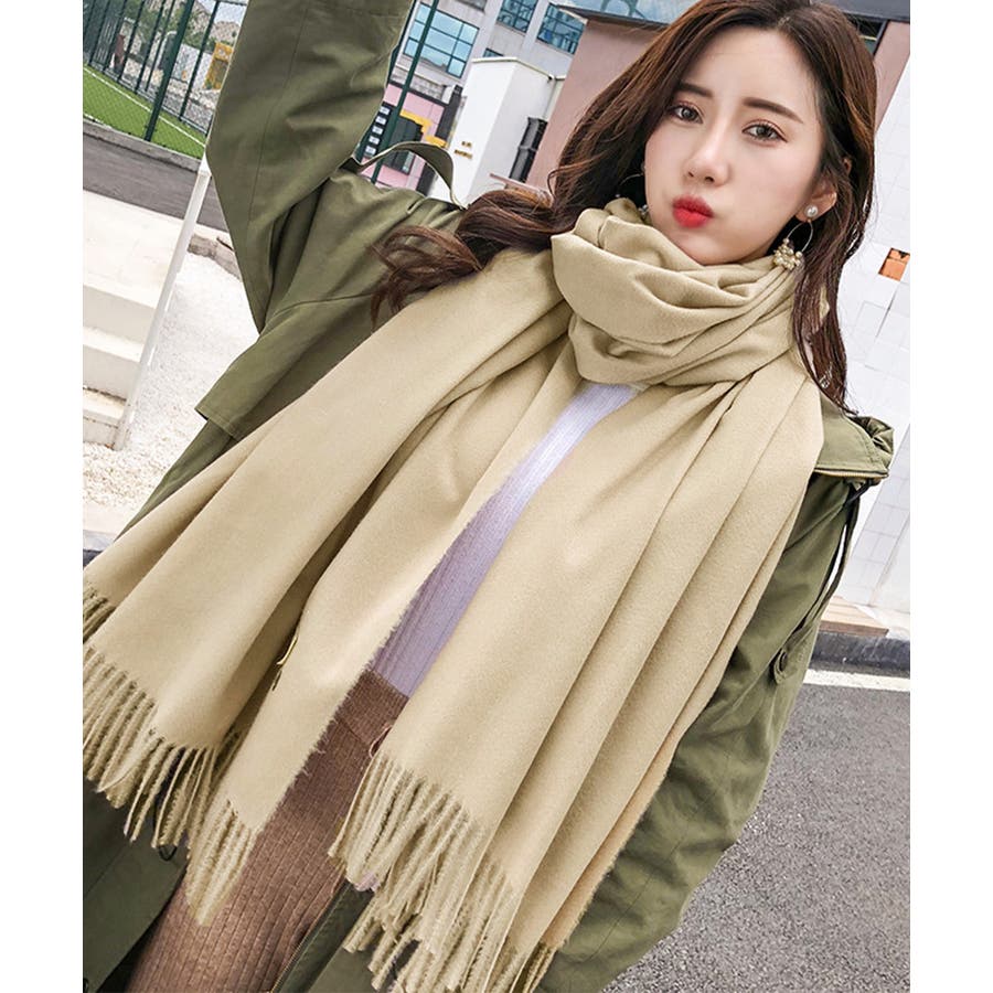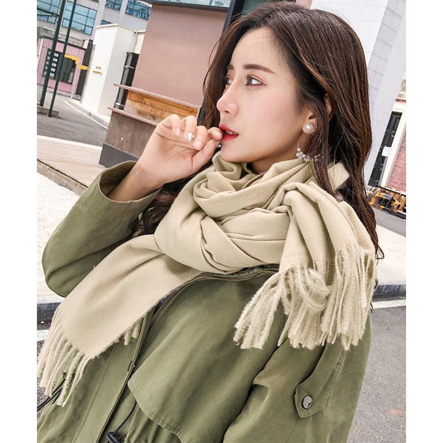 柔らかい上質なカシミヤ風生地を贅沢に使用、シンプルでスタイリッシュなフリンジ付き無地大判マフラー