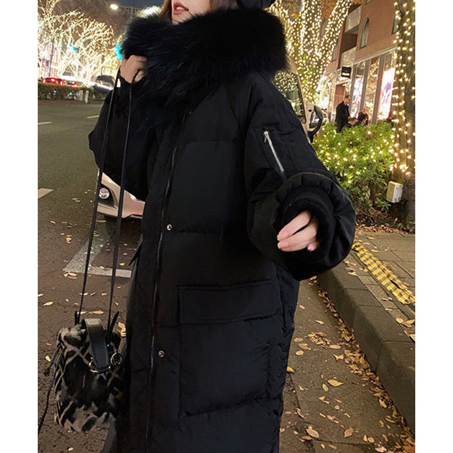 あったかアウター黒 エコダウンコート女 体型カバー防寒着冬