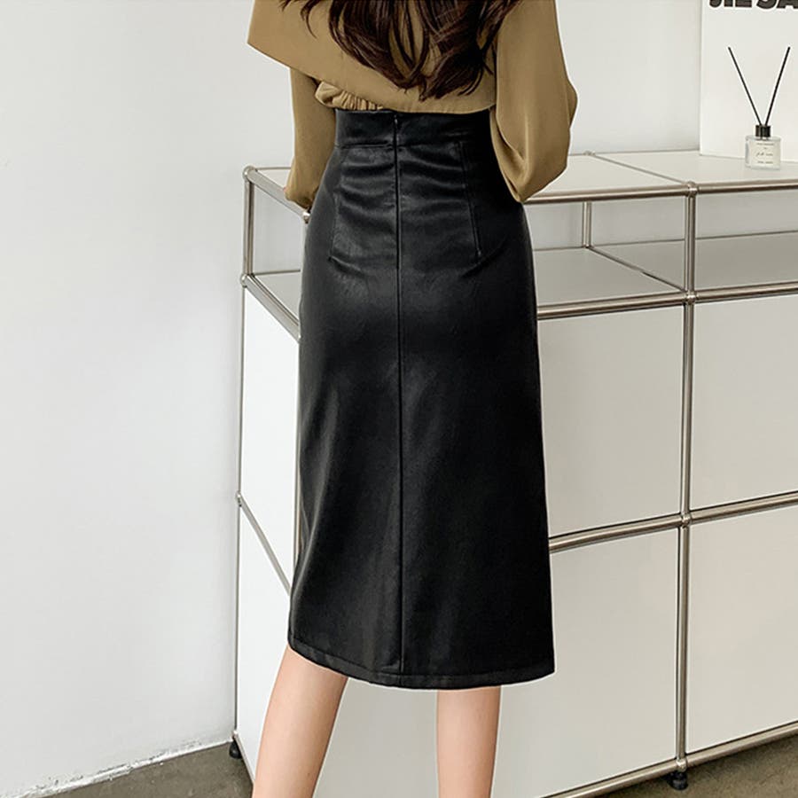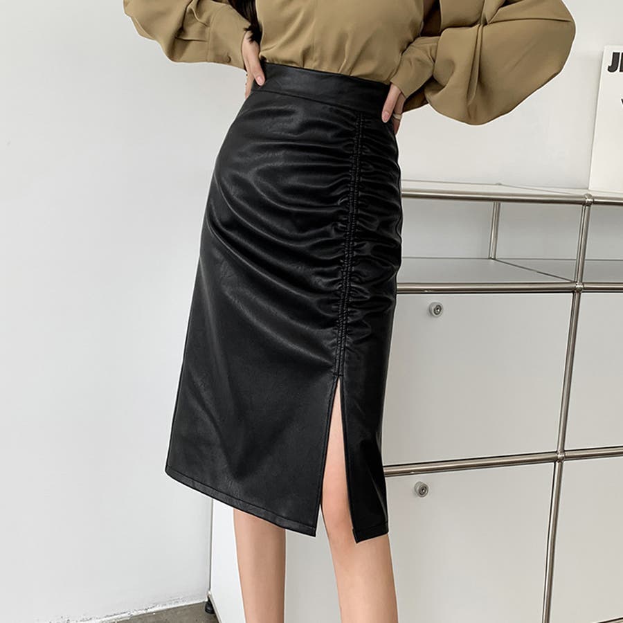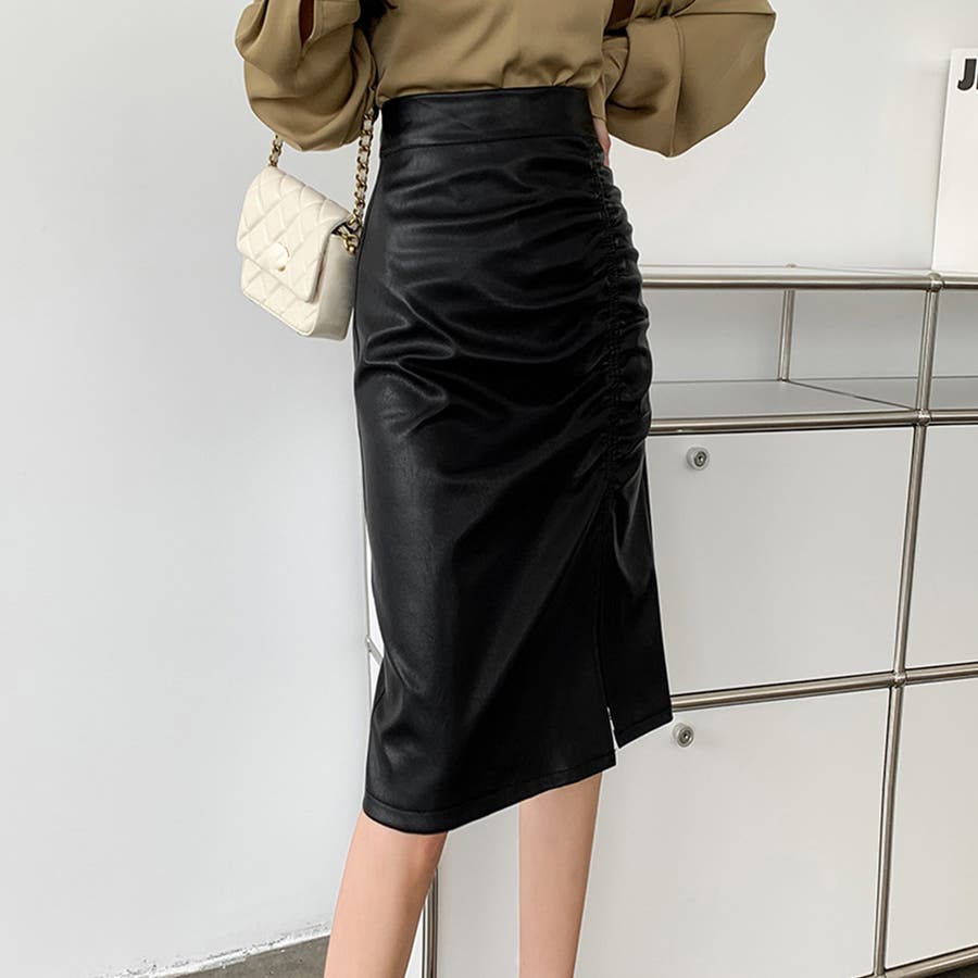 一点投入すれば着こなしがクラスアップするPUレザースカート