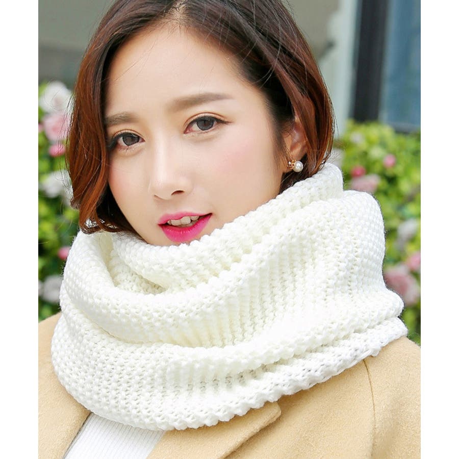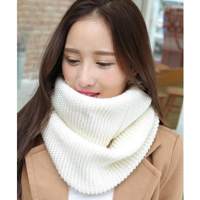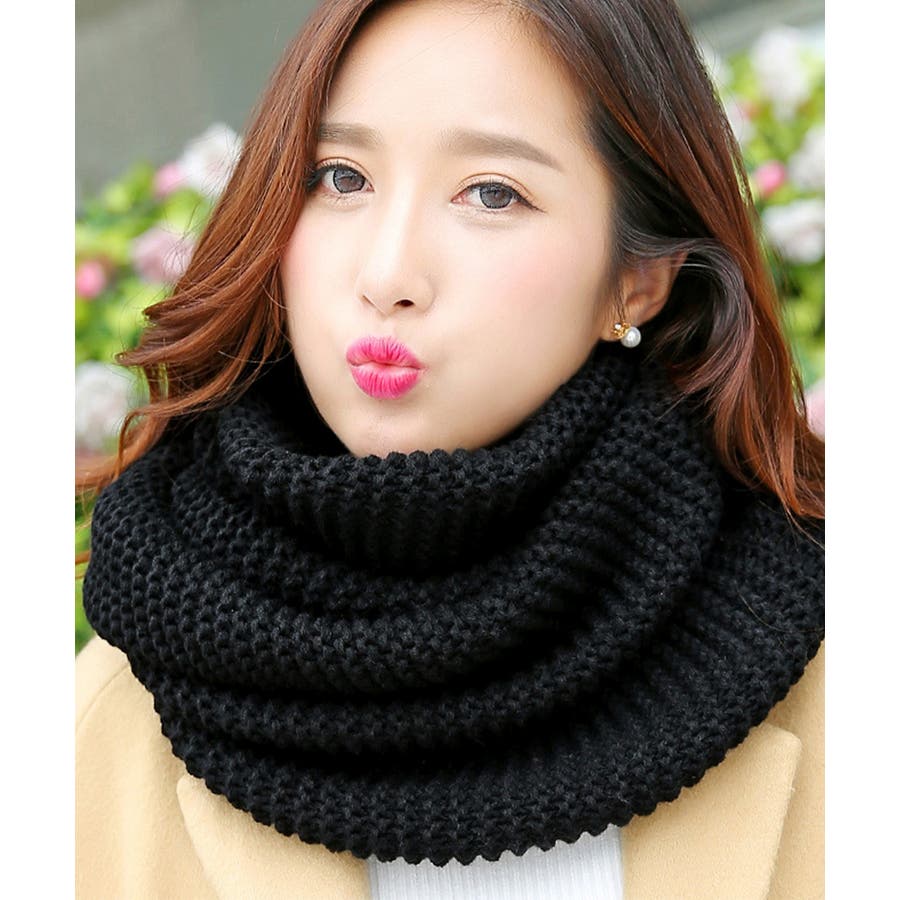 伸縮性があり、ふんわりとした柔らかな素材感で肌触りの良い仕上がりニットスヌード