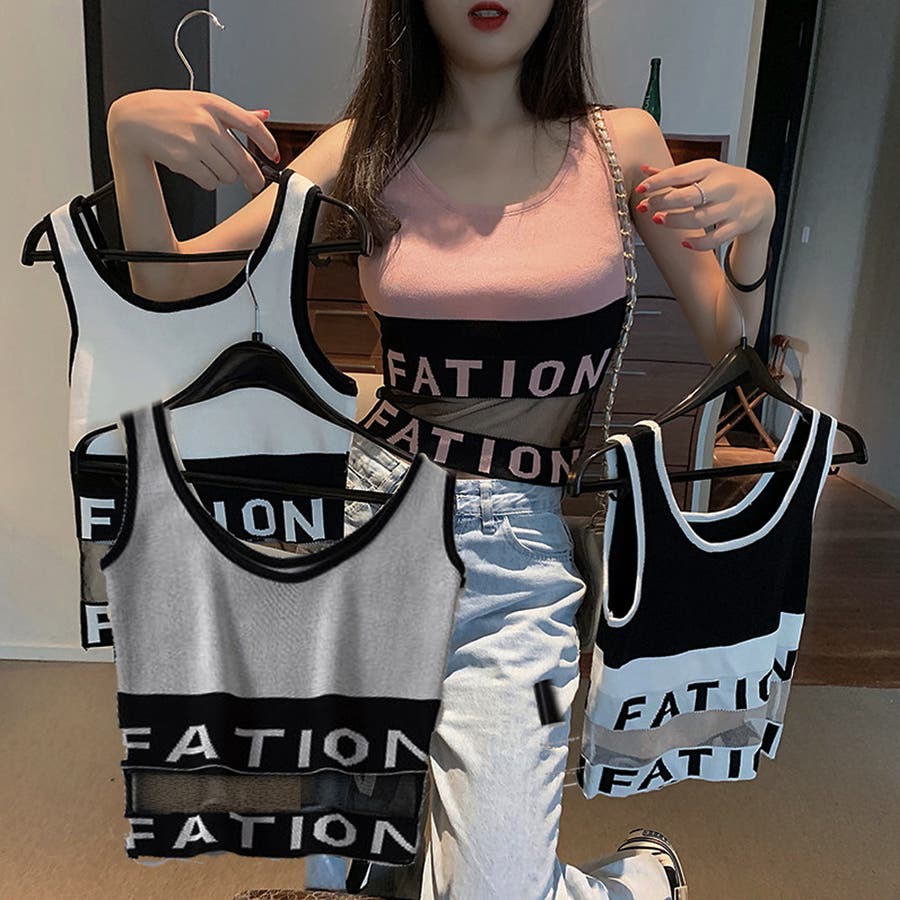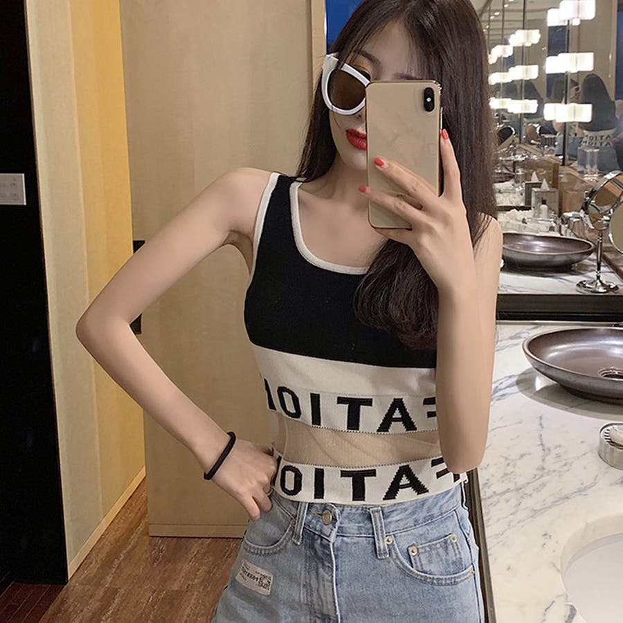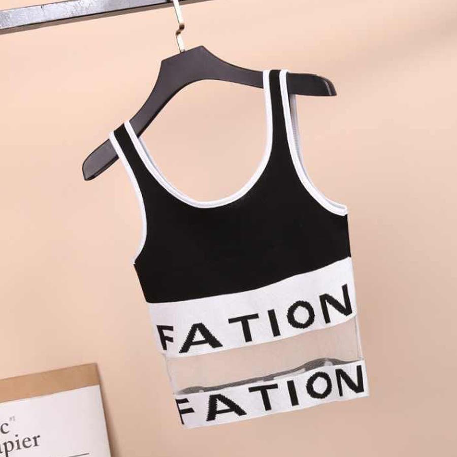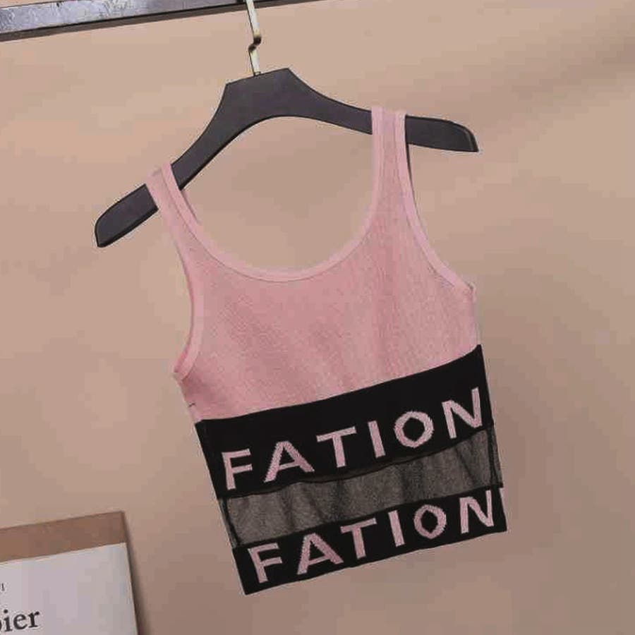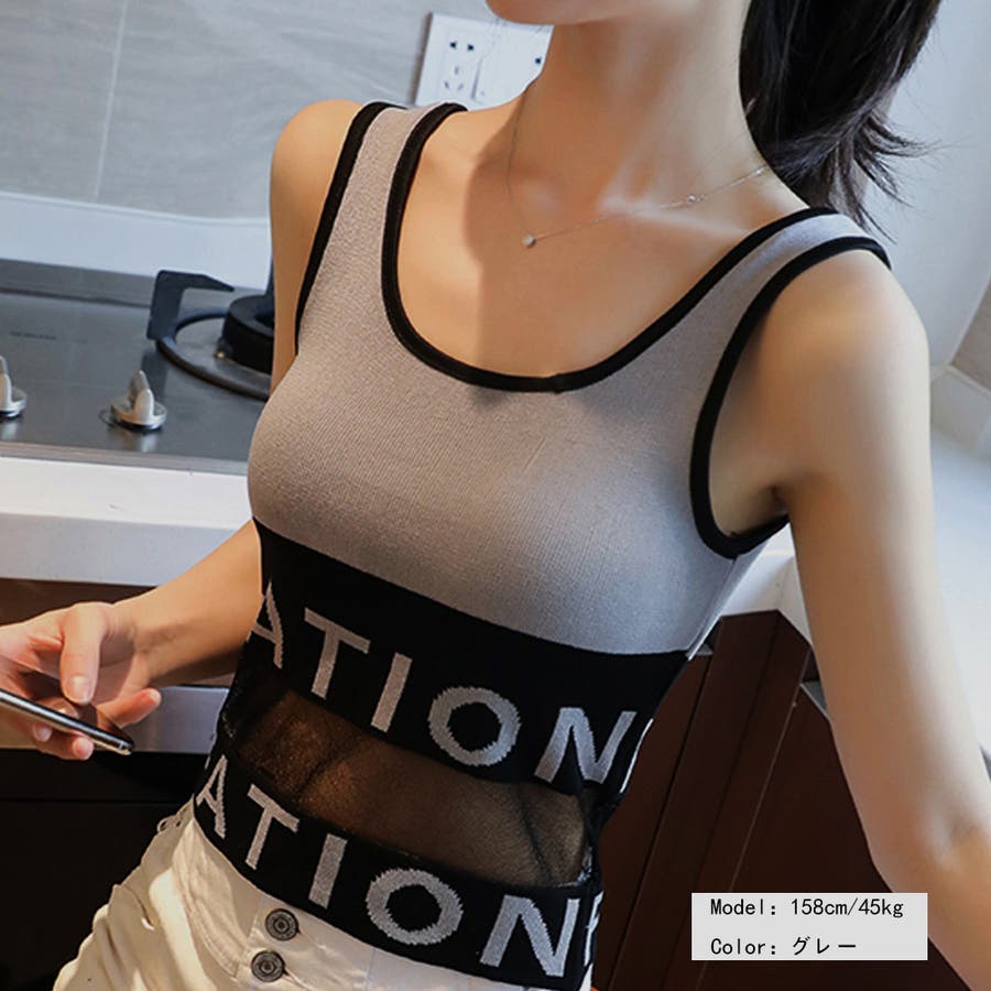 インナー 重ね着 セクシー カジュアル チュール切り替え ショート丈 夏 リブニット