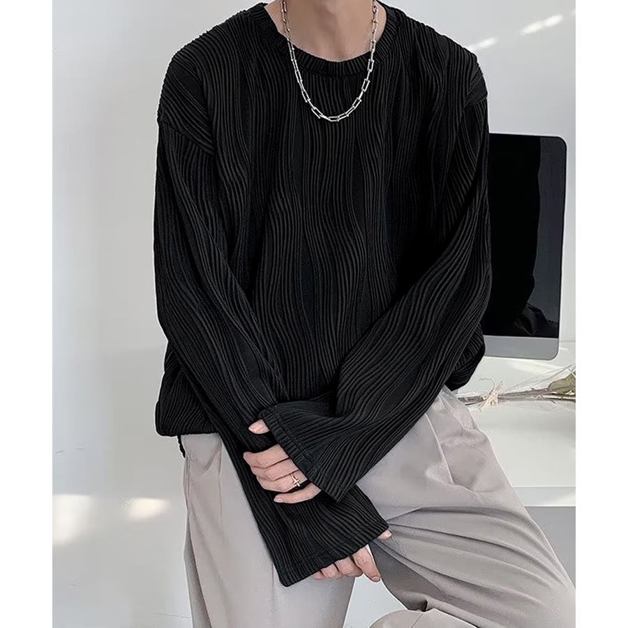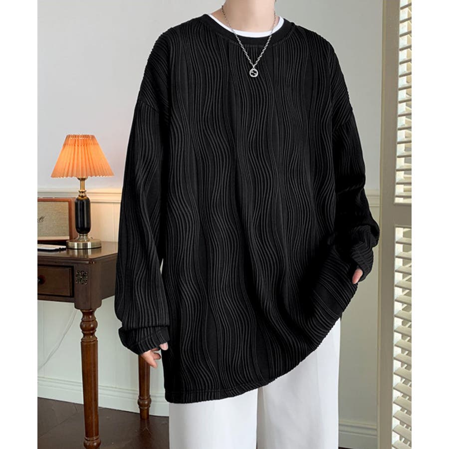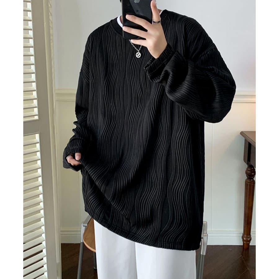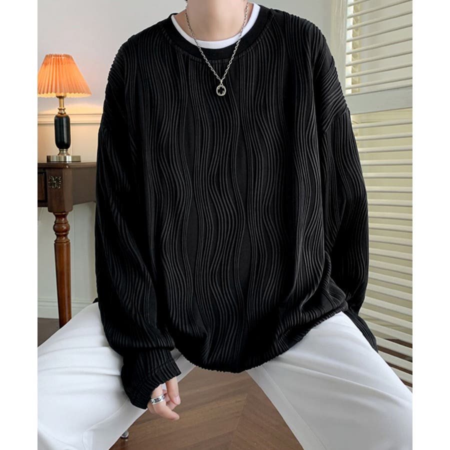 メンズ ファッション ブラック ストリート カットソー ゆったり かっこいい 人気 ロングスリーブ 無地 お洒落 春秋服