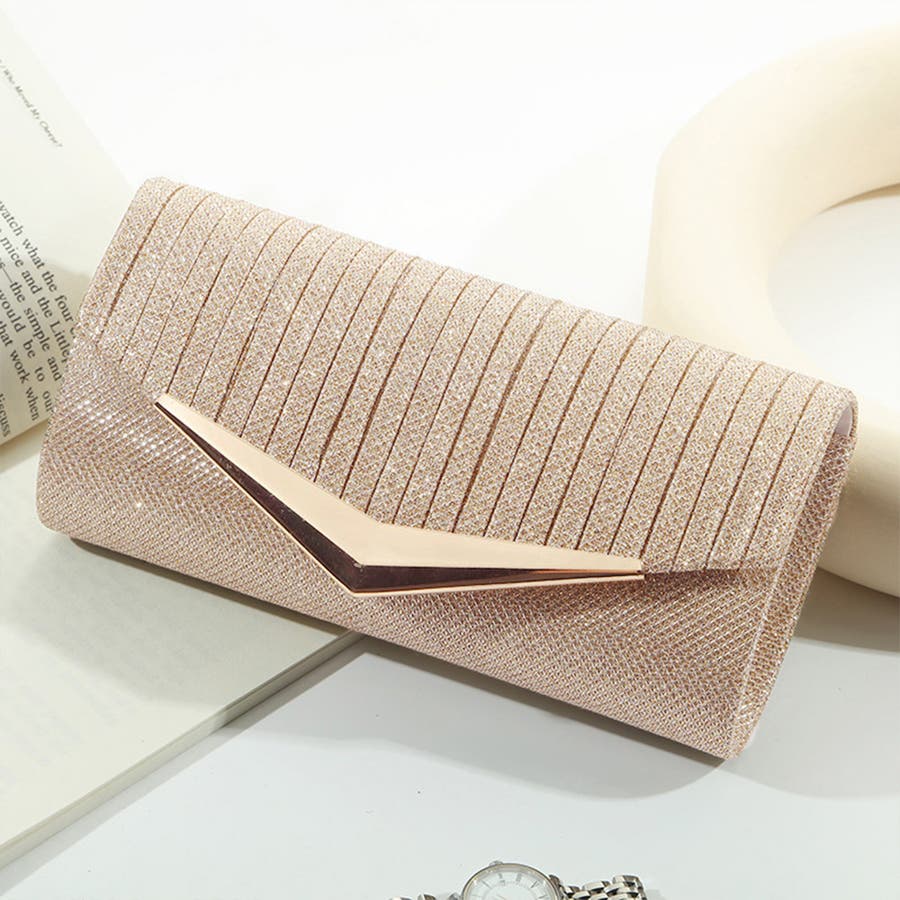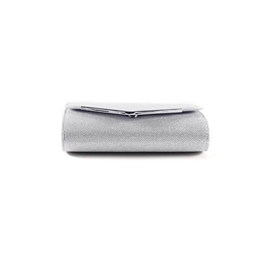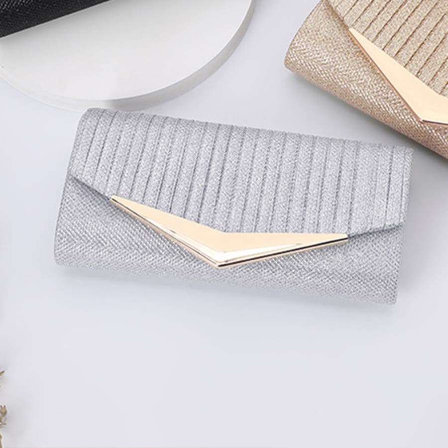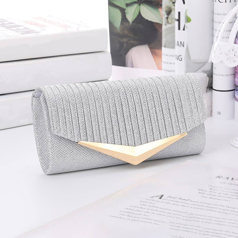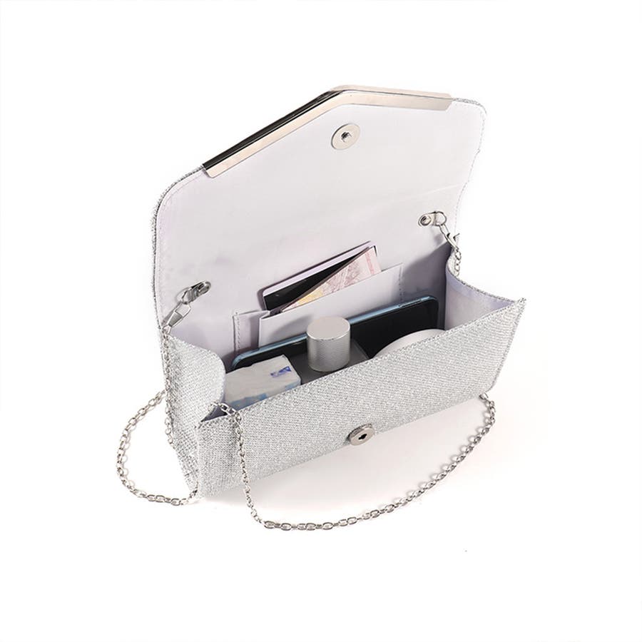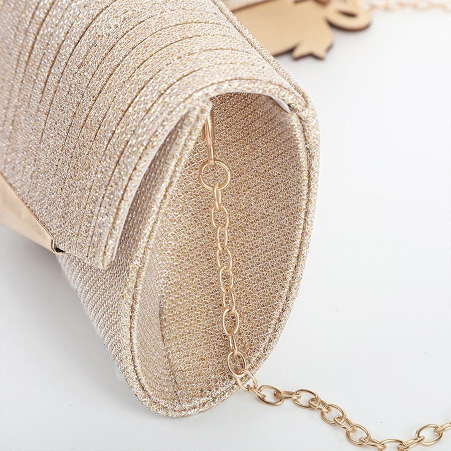 キラキラと輝くツヤ感のある生地、上品な印象を与えてくれ、一目惚れされるパーティーバッグ
