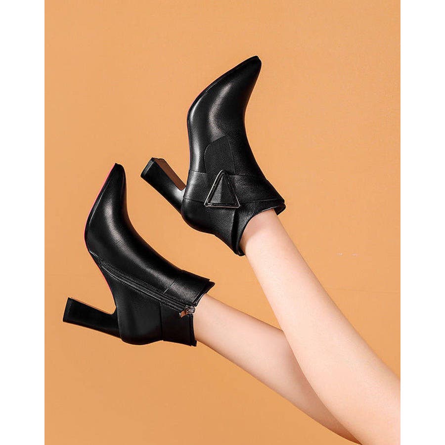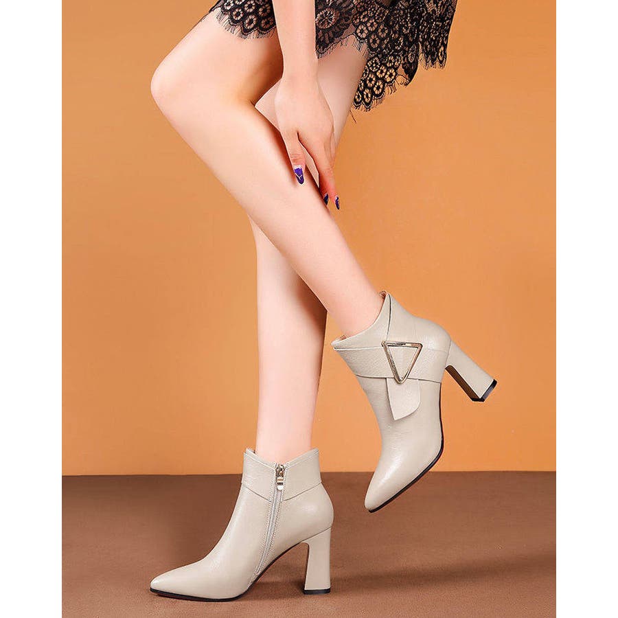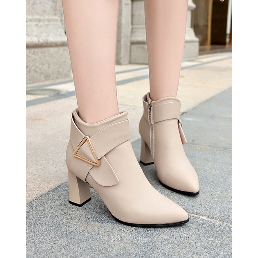 フェミニンなバックルベルトデザイン、着脱簡単なサイドファスナー仕様、ファッションアイテムでもらくちんを忘れないスマートなレディースブーティ