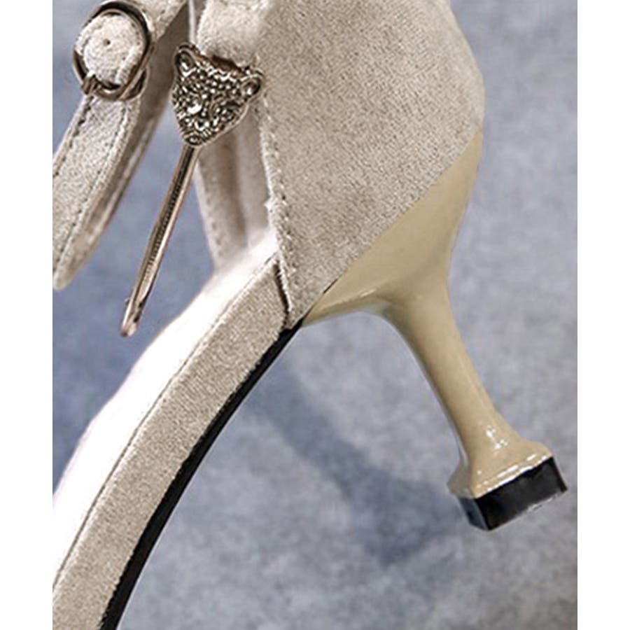 滑らかなスエード調生地で高級感を醸し出し、シルエットを追求した究極の美脚ダブルストラップパンプス