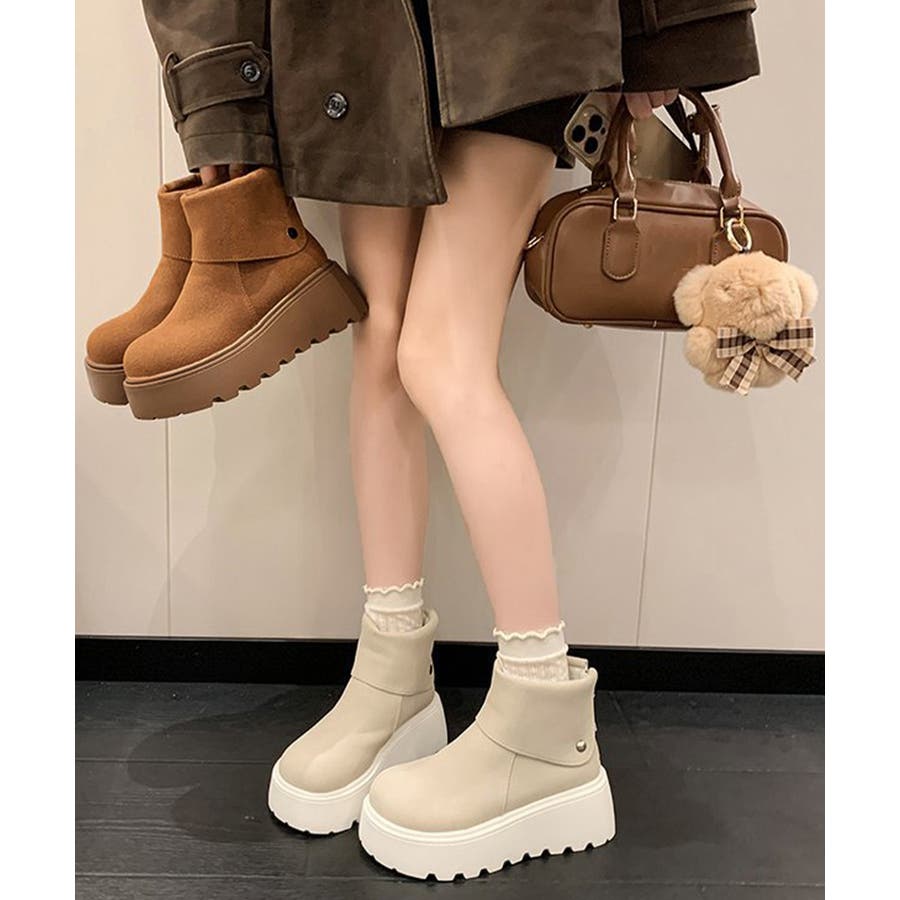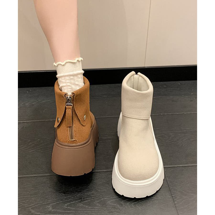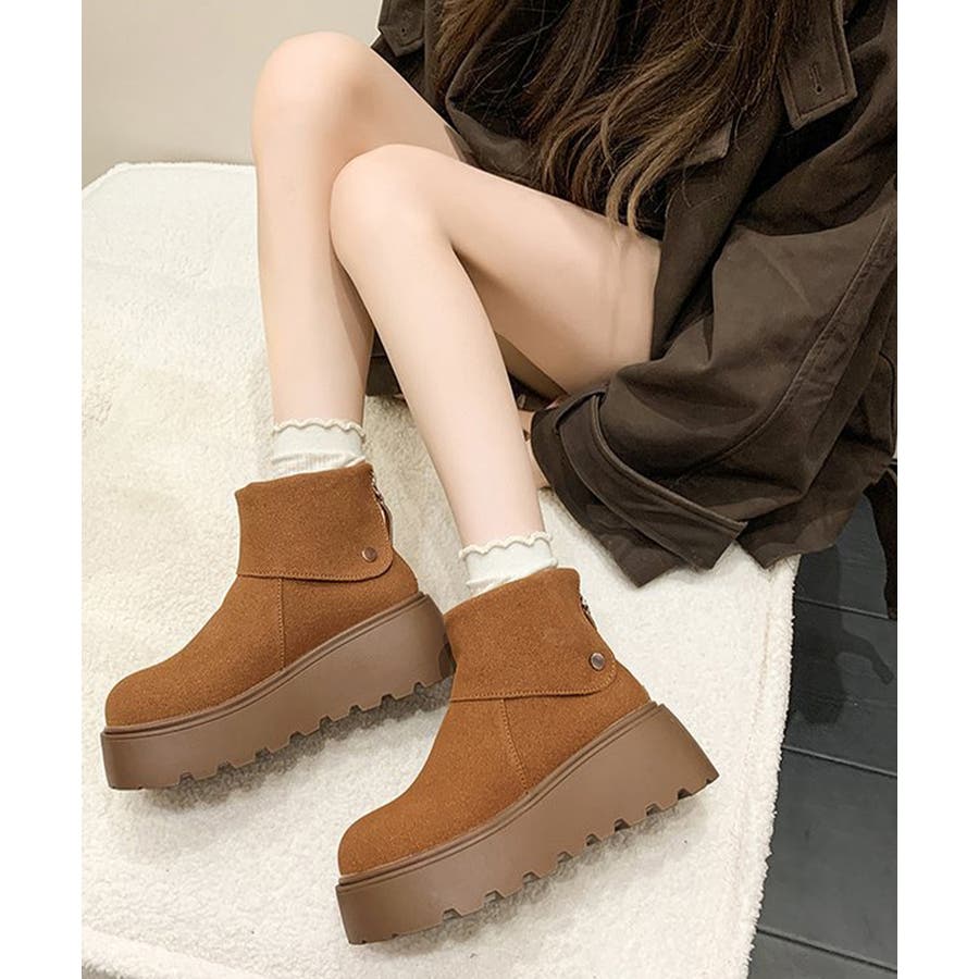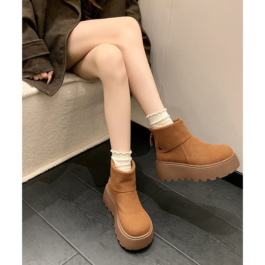 厚底ショートブーツ 秋冬シューズ美脚脚長