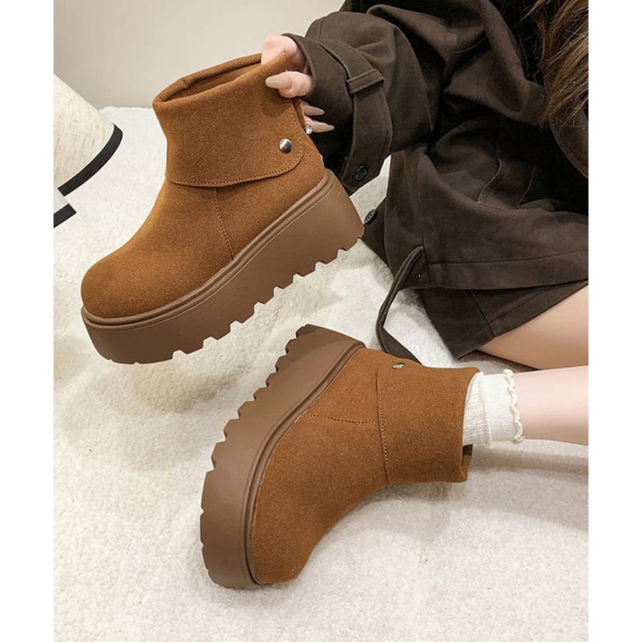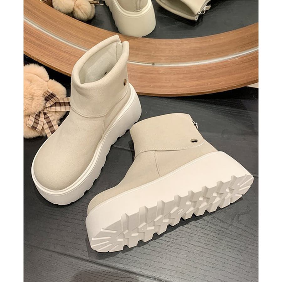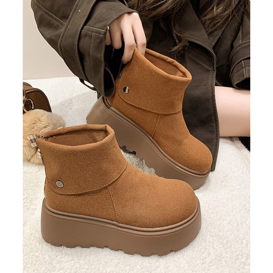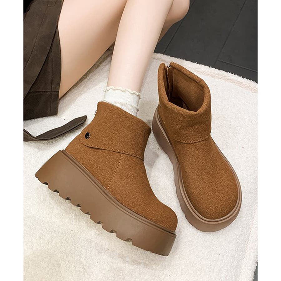 厚底ショートブーツ 秋冬シューズ美脚脚長