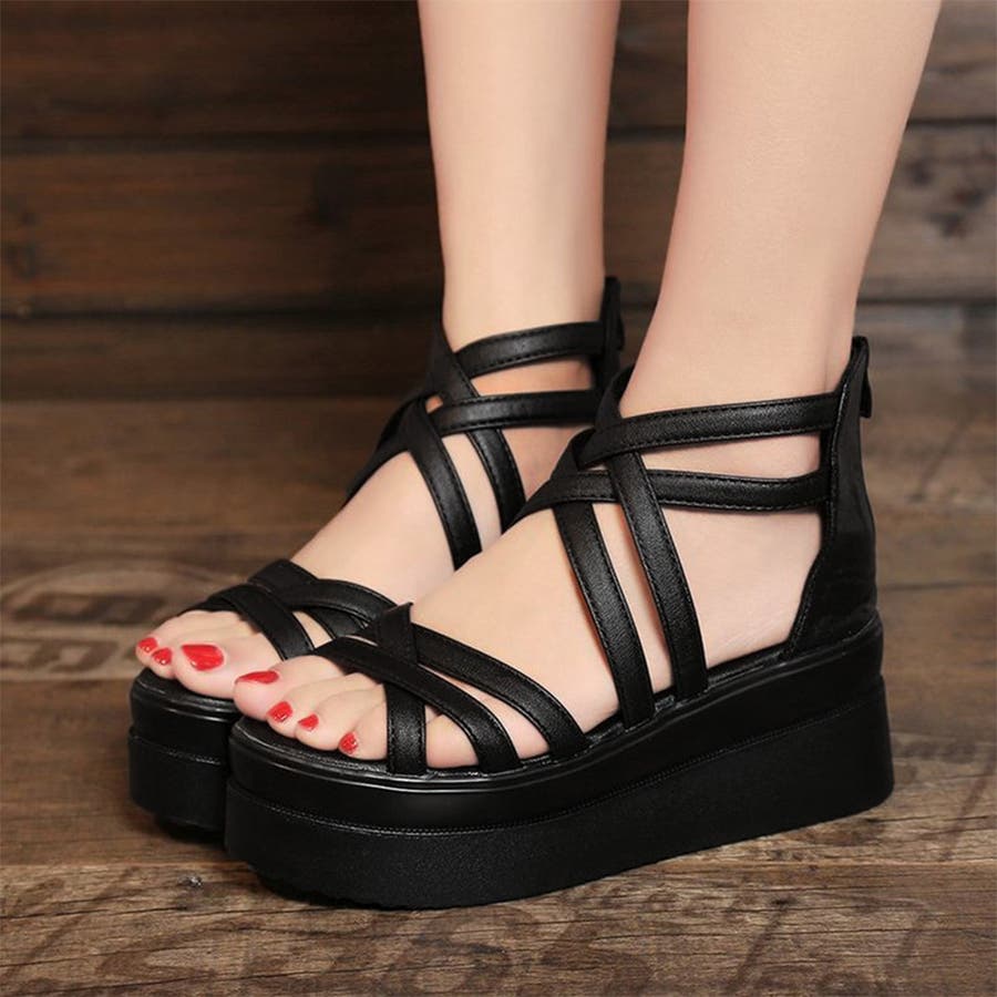厚底サンダル クロスストラップサンダル夏