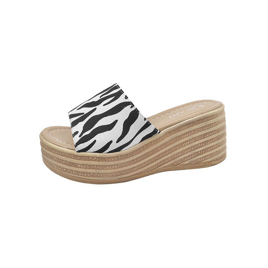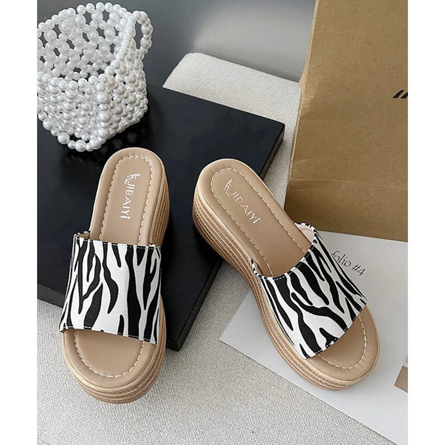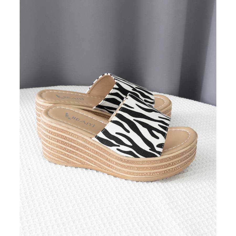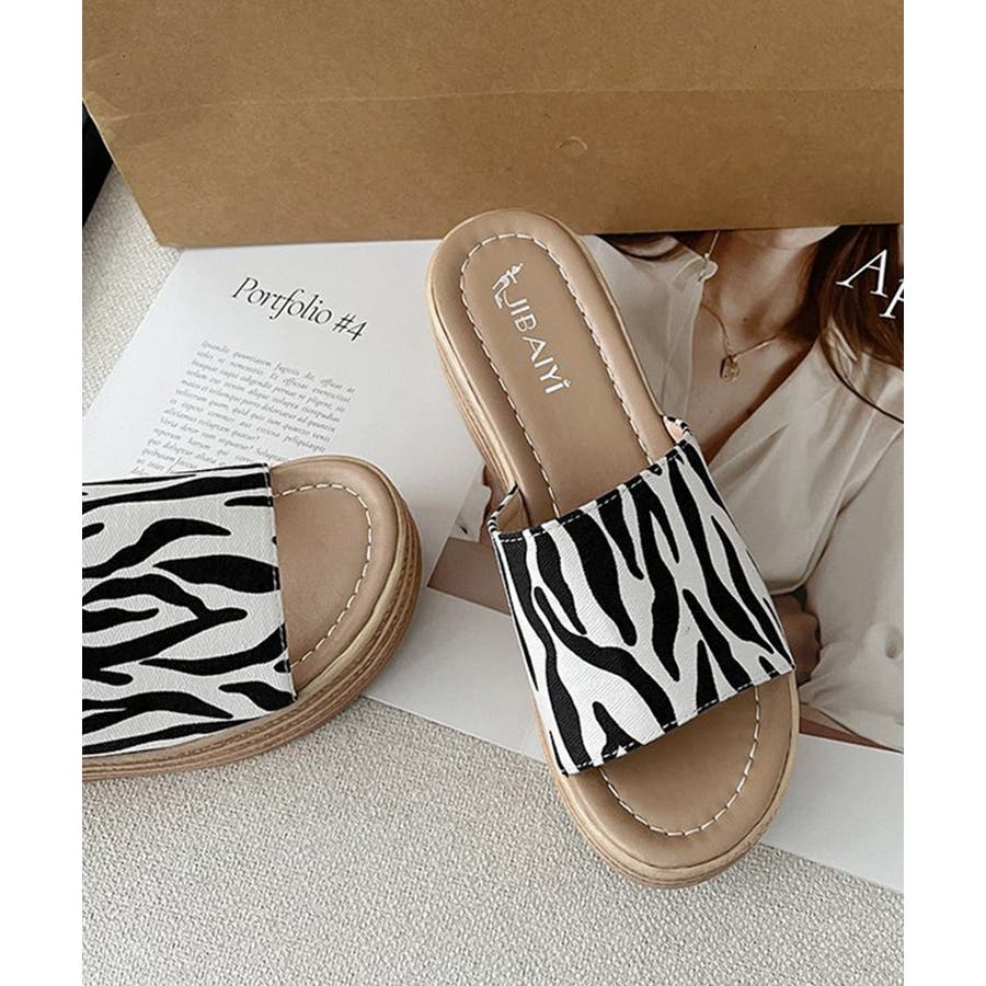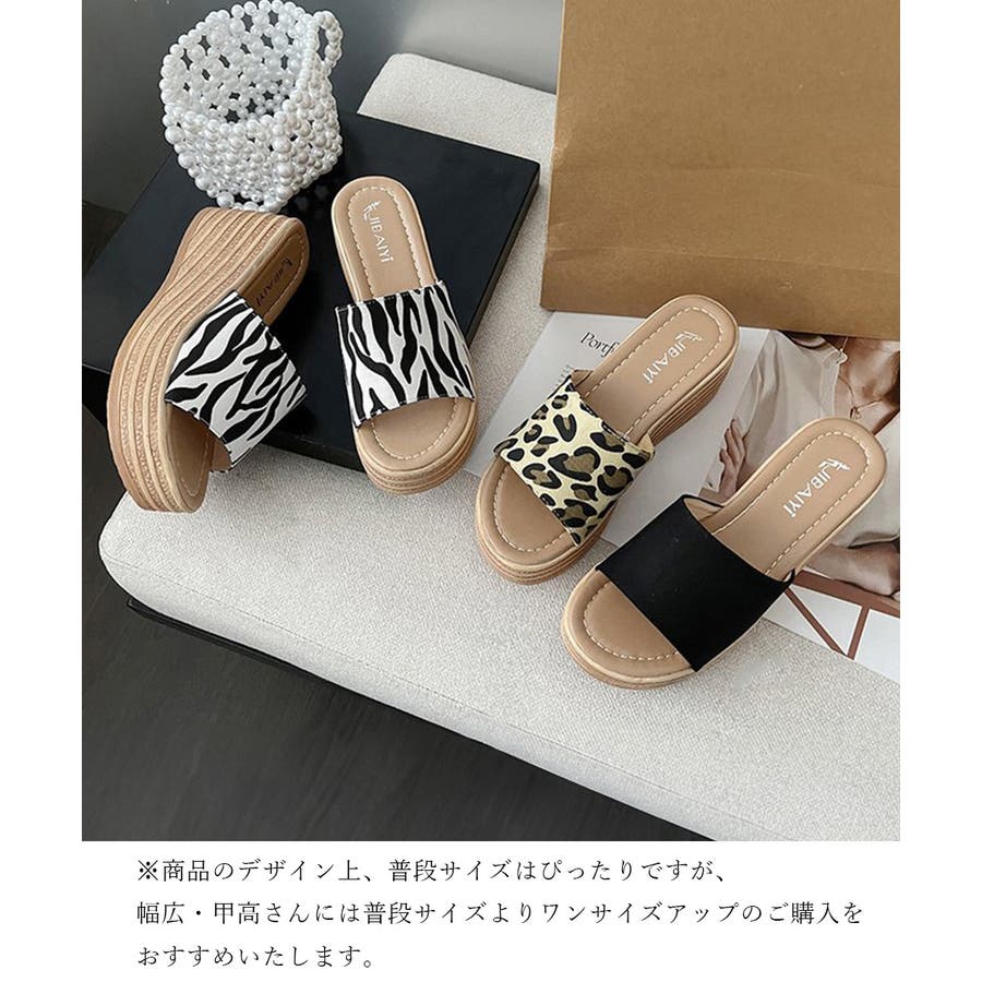 ヒョウ柄サンダル夏 おしゃれサンダル黒 ゼブラ柄くつ 夏海