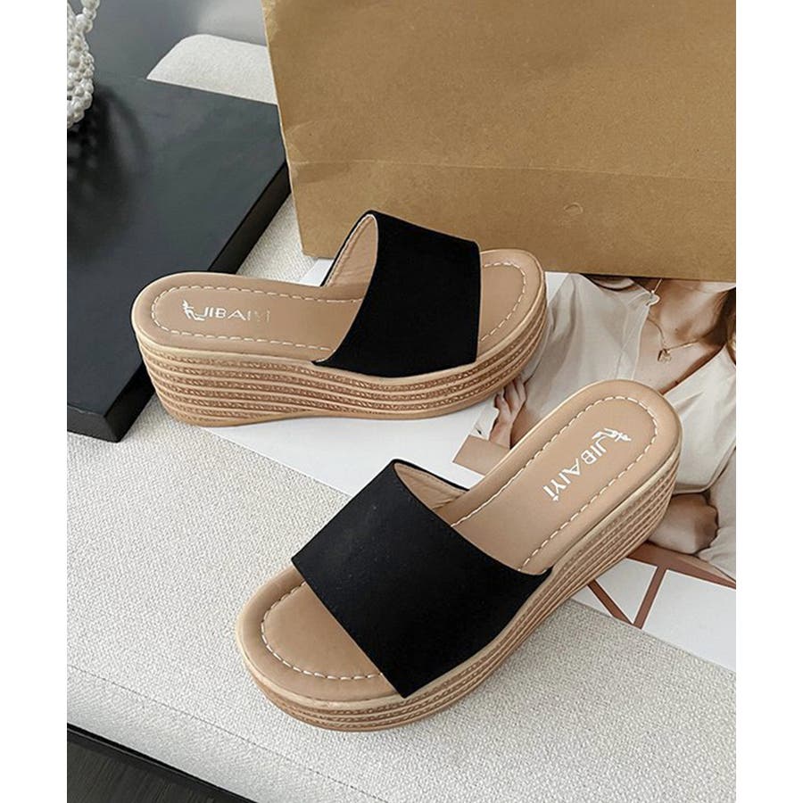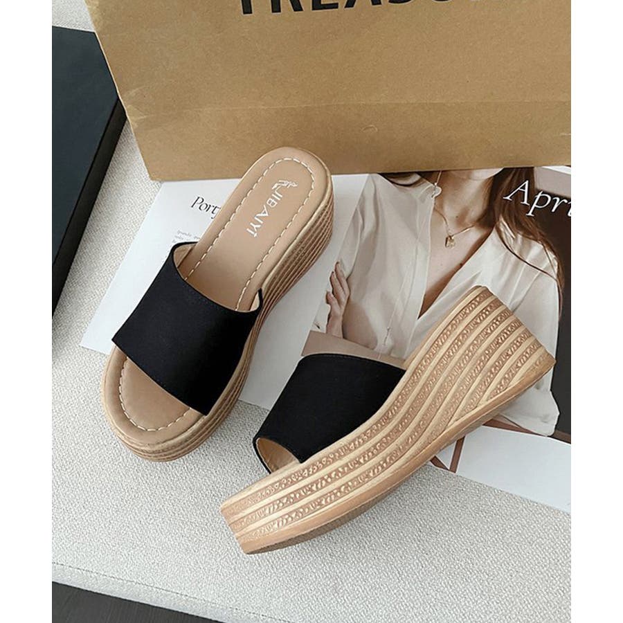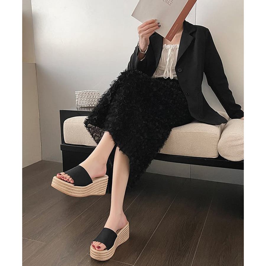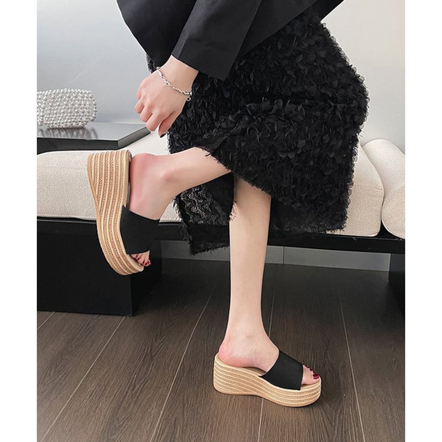 安定感のあるウェッジソールを採用し、履き心地はもちろん、足元を美しく演出する厚底サンダル