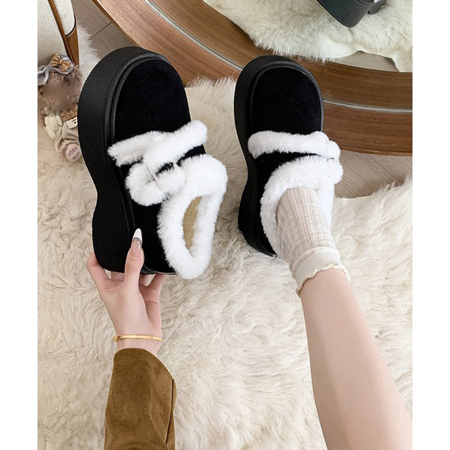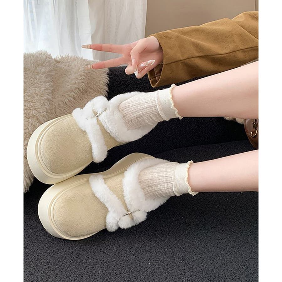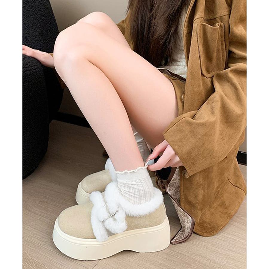 もこもこファー厚底ムートンシューズ裏起毛