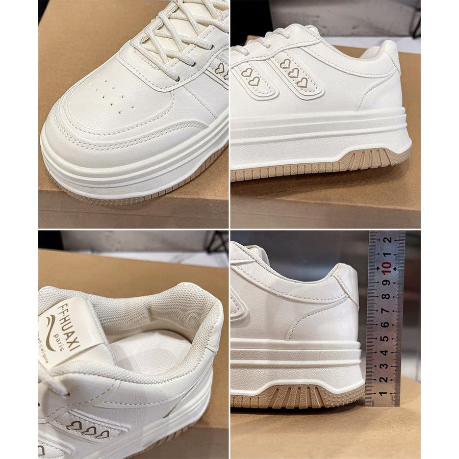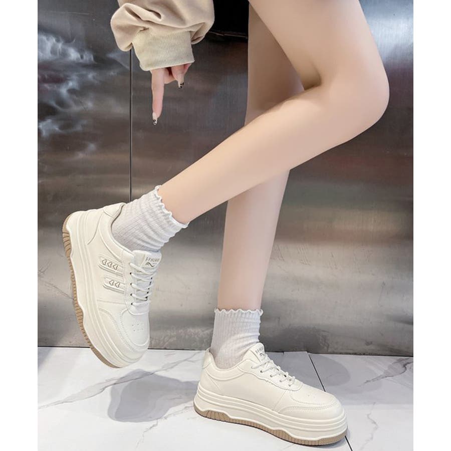 疲れにくい厚底くつ 着回しスニーカー白 レースアップ靴脚長