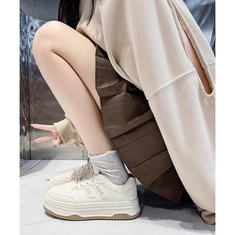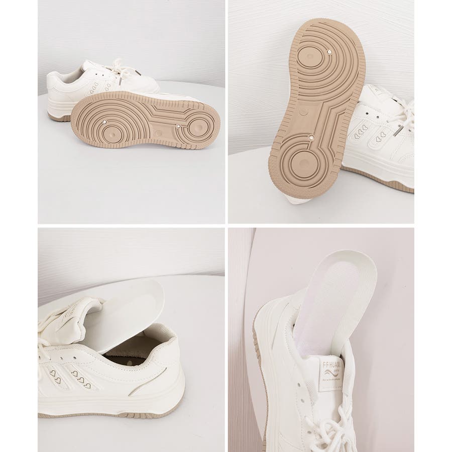 ハートモチーフ ボリュームソールスニーカー レディース