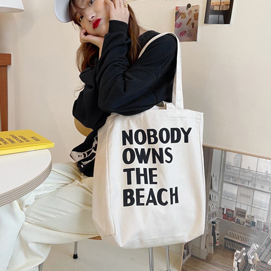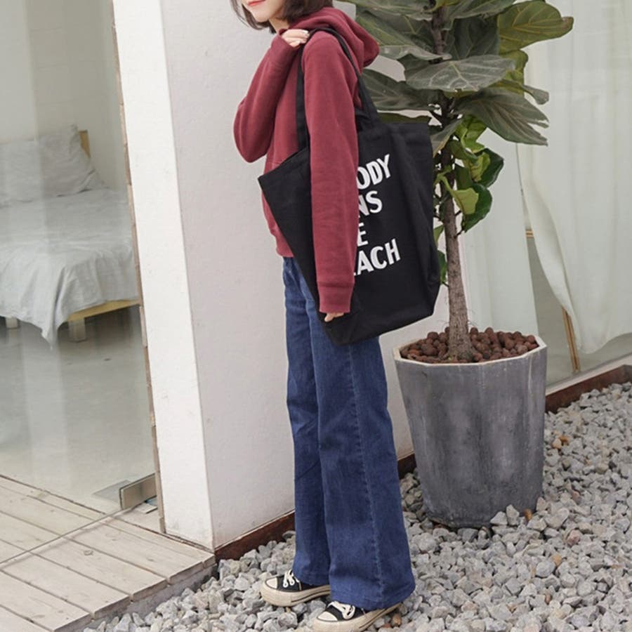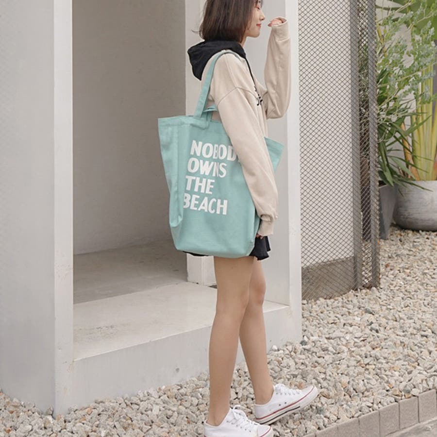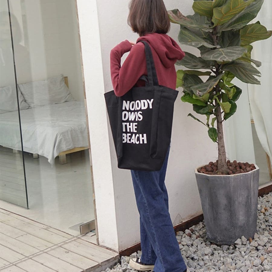 帆布かばん 手提げ エコバッグ 韓国風 プリント鞄 縦型