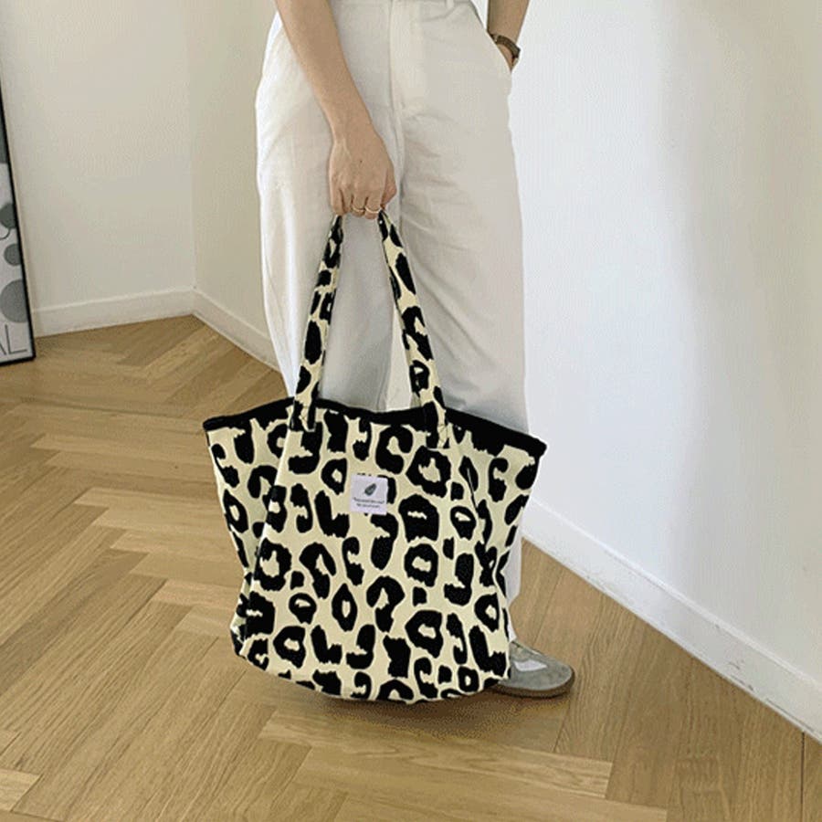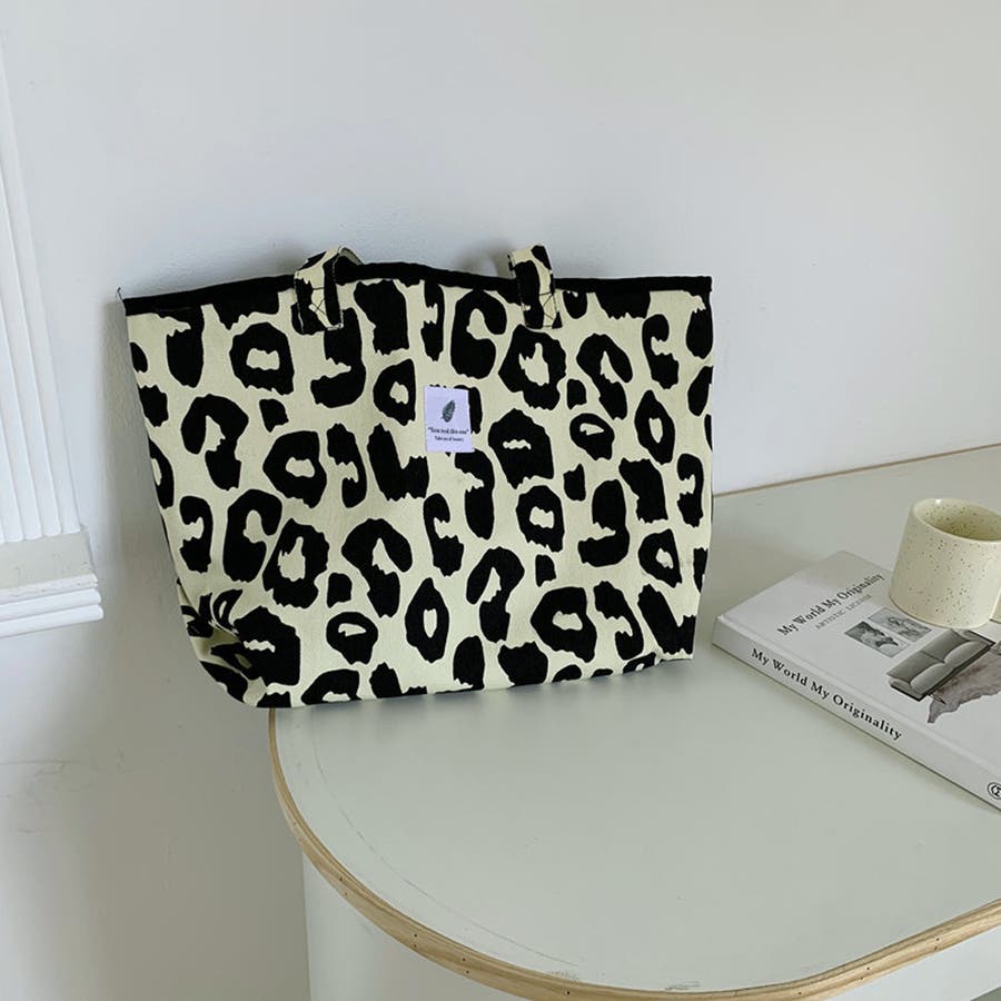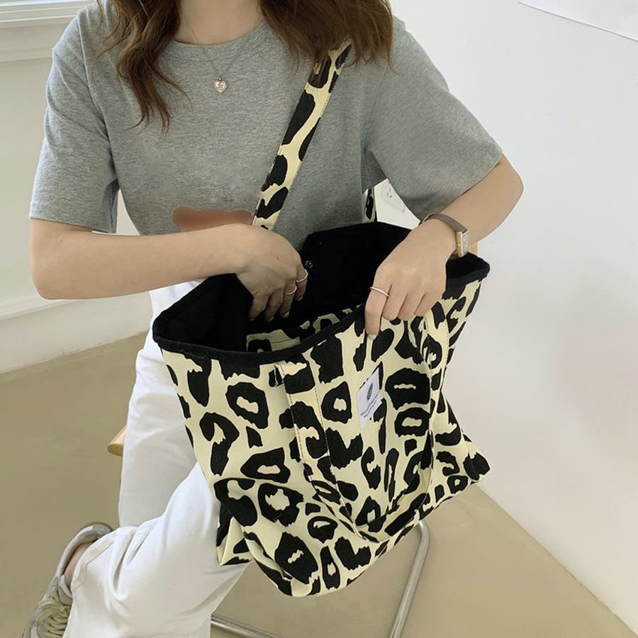 派手で存在感抜群、カジュアルな風合いの使い勝手が良い大きいサイズの豹柄トートバッグ