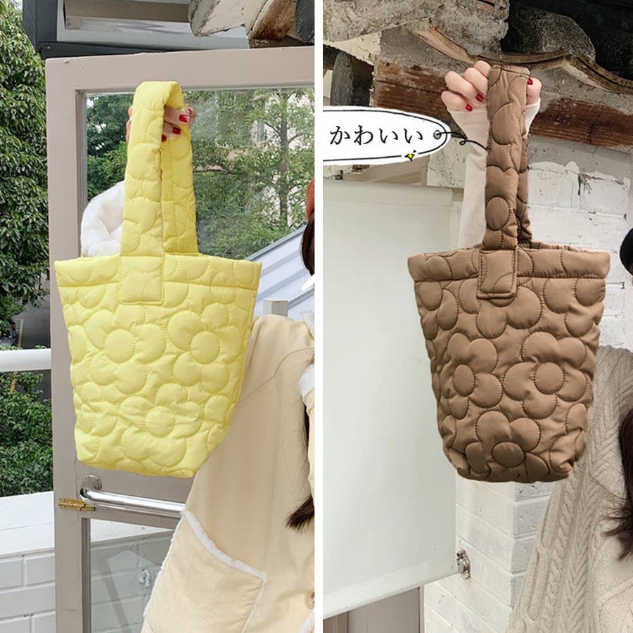 キルティングトート お散歩バッグ 花柄ステッチ 大人可愛い バケツバッグ 縦型 ハンドバッグ 手提げカバン おしゃれ