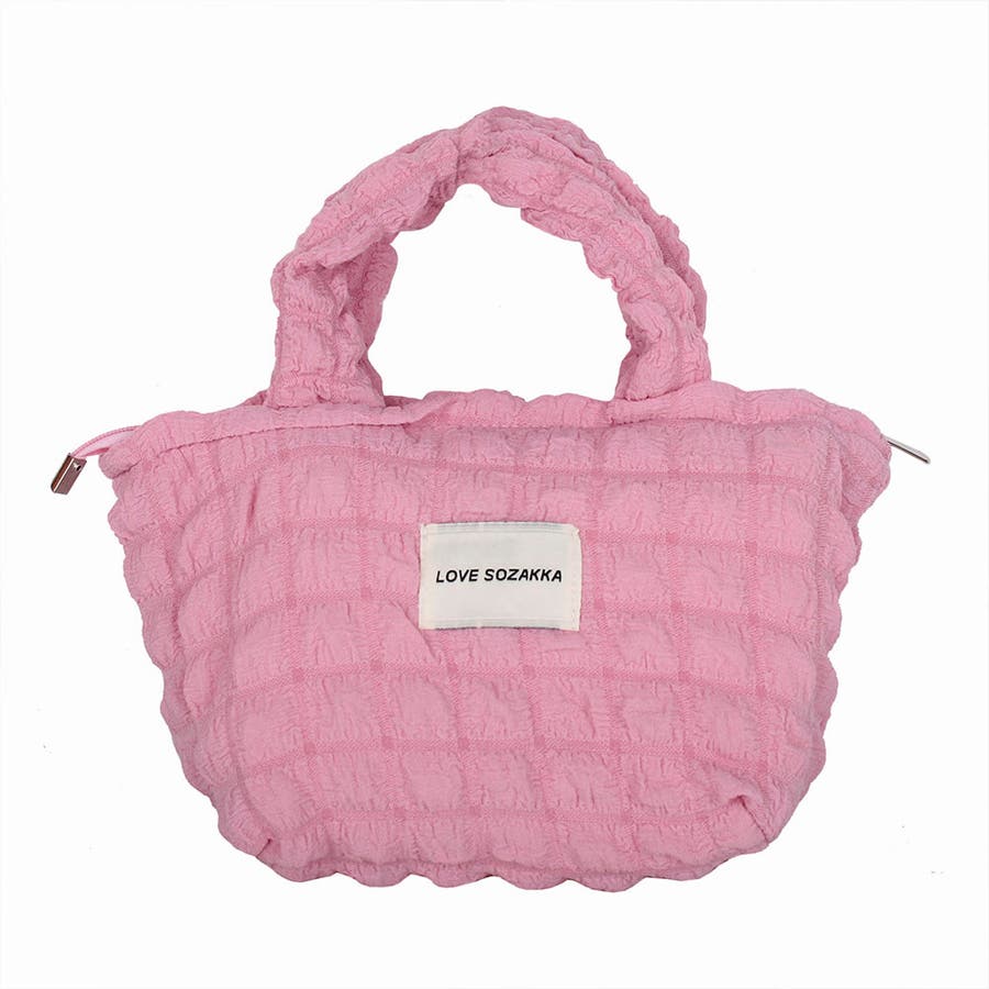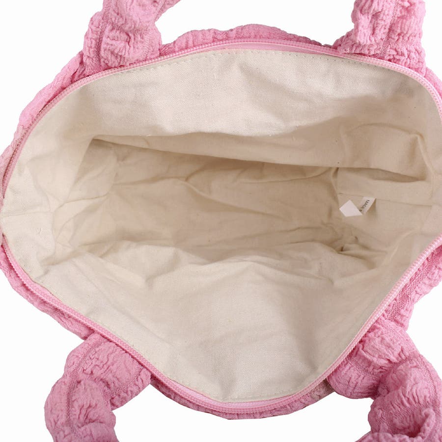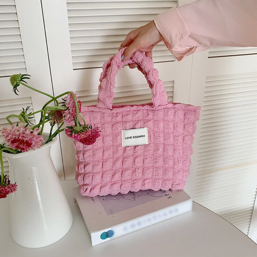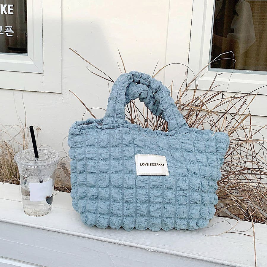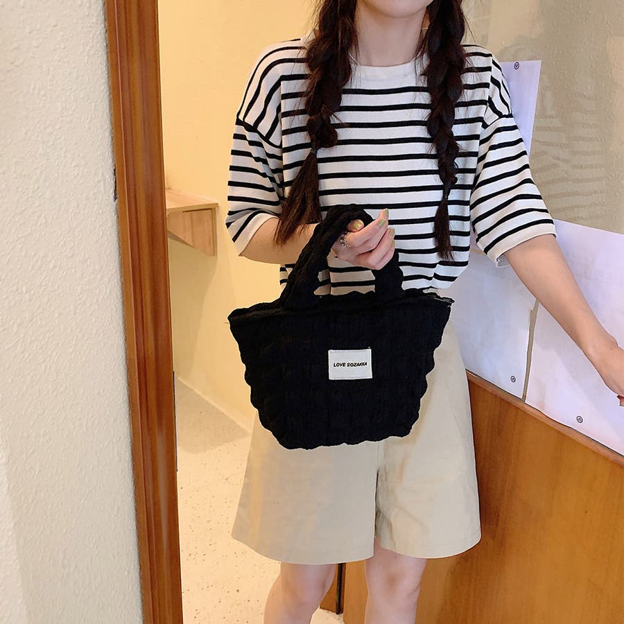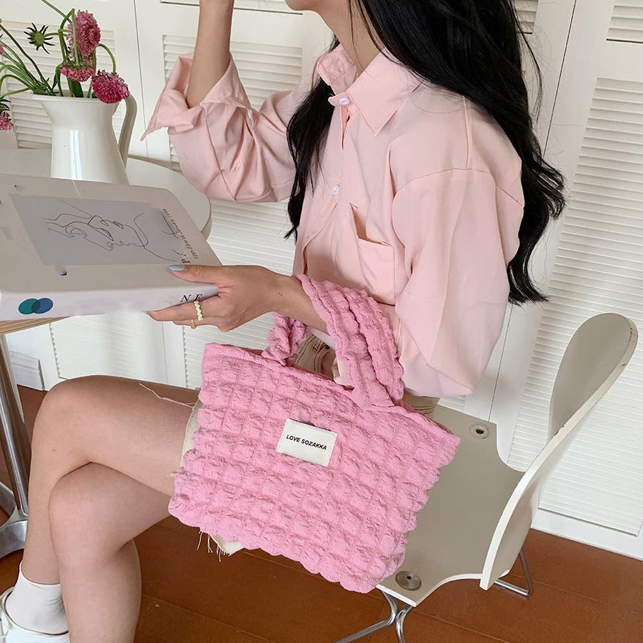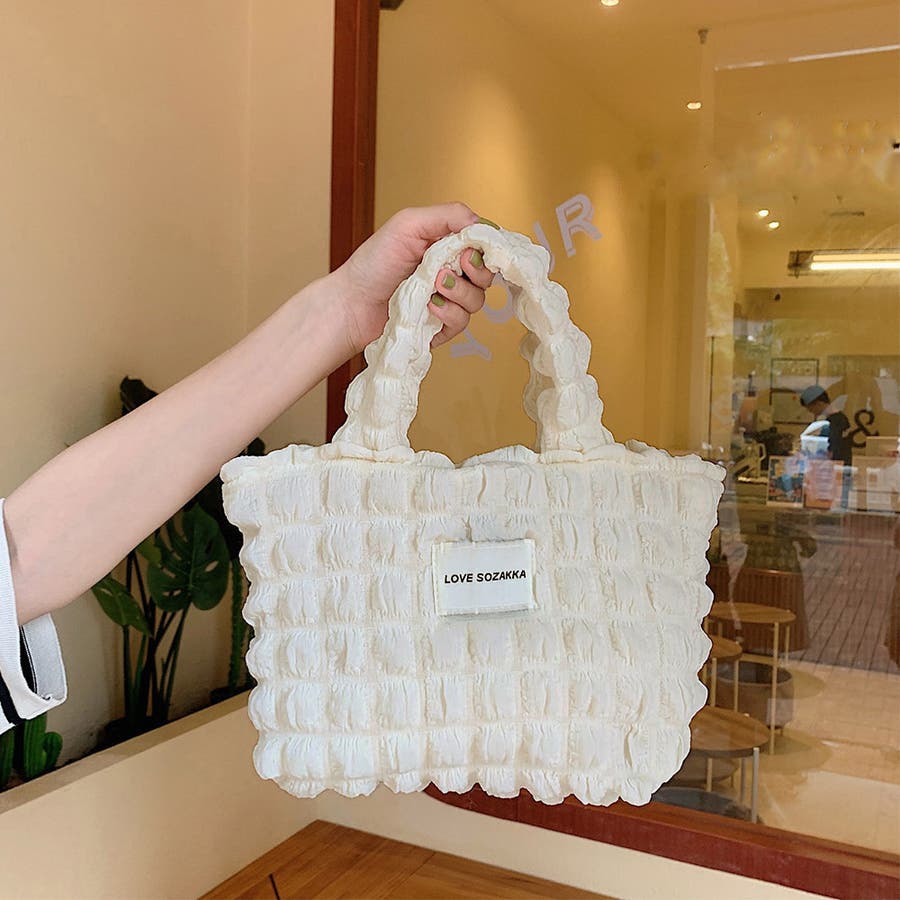 ポコポコとした表面感が可愛らしいポップコーン生地のミニトートバッグ