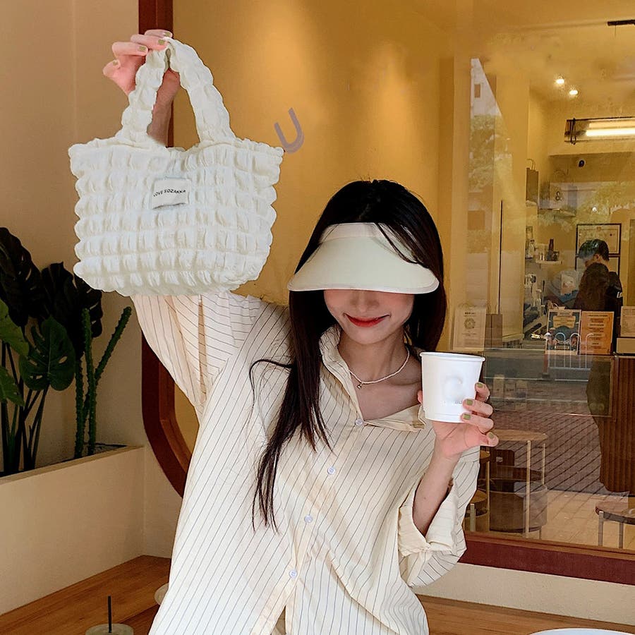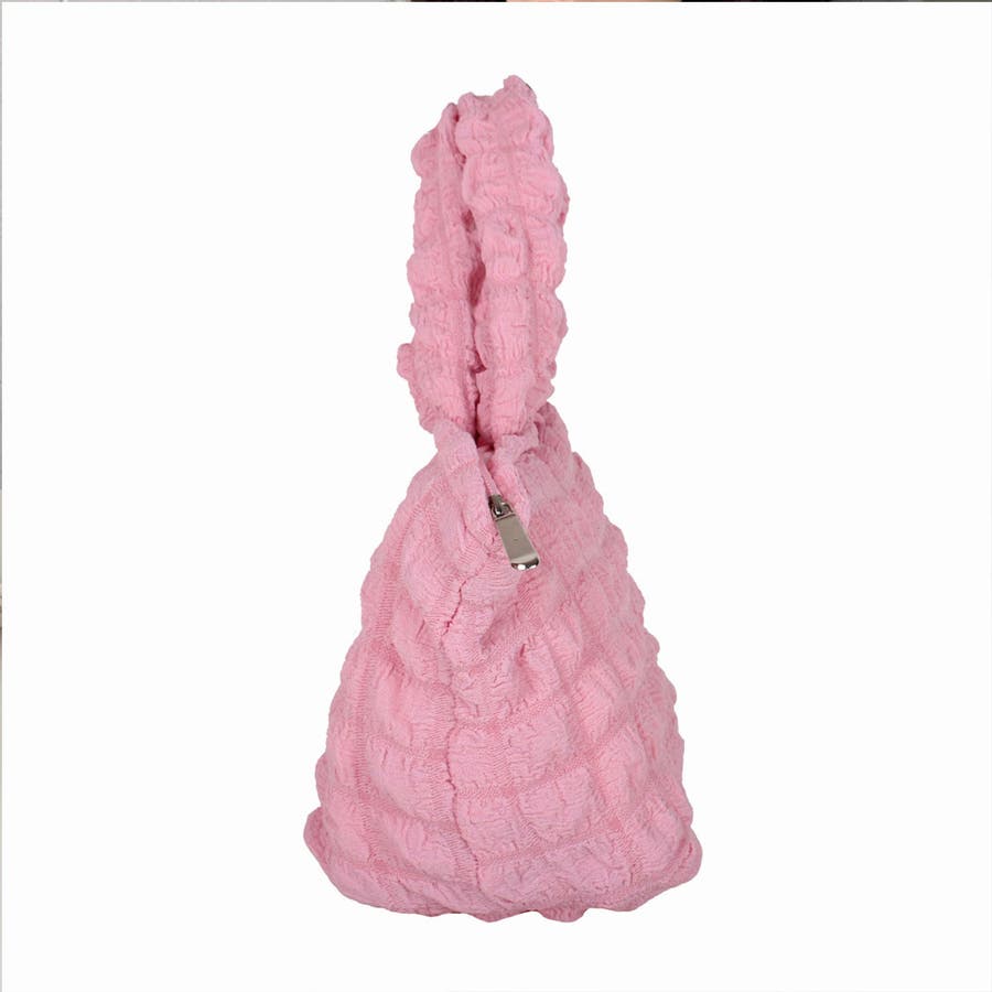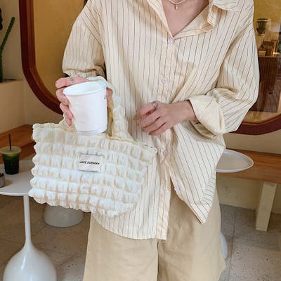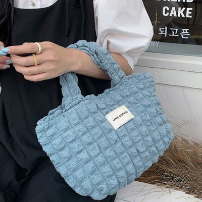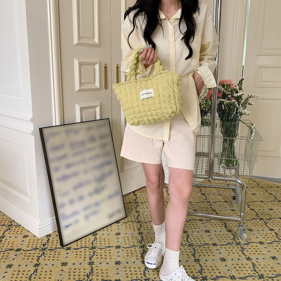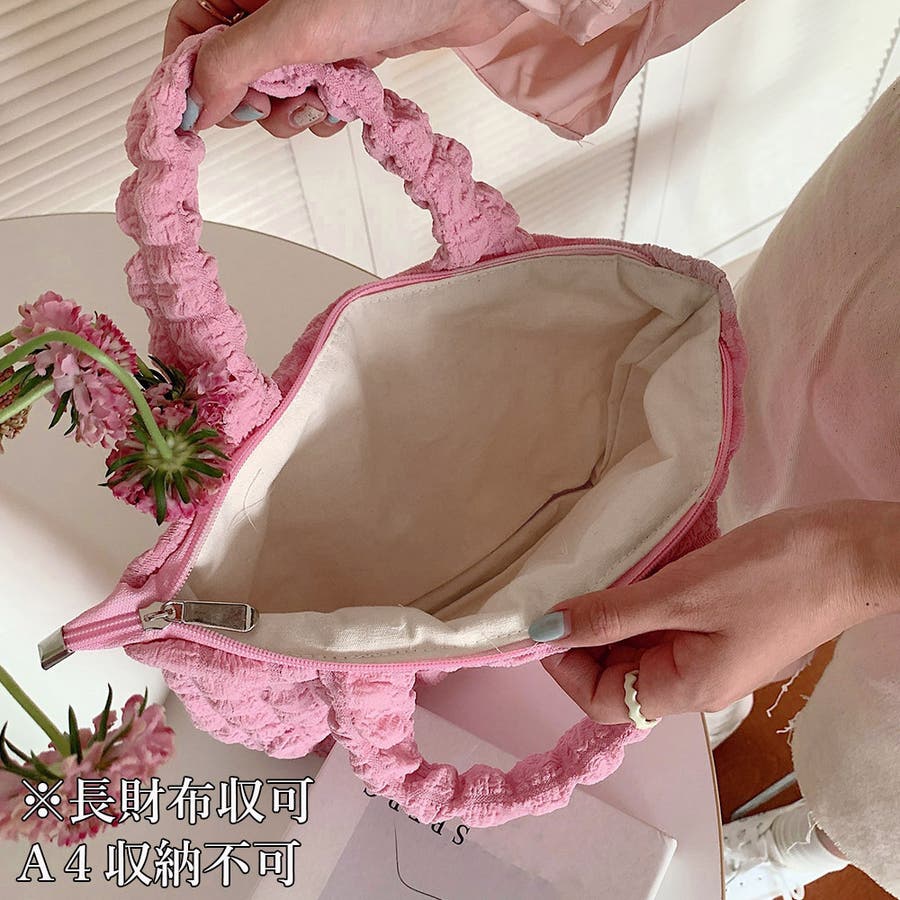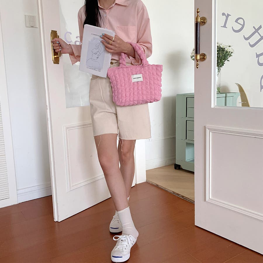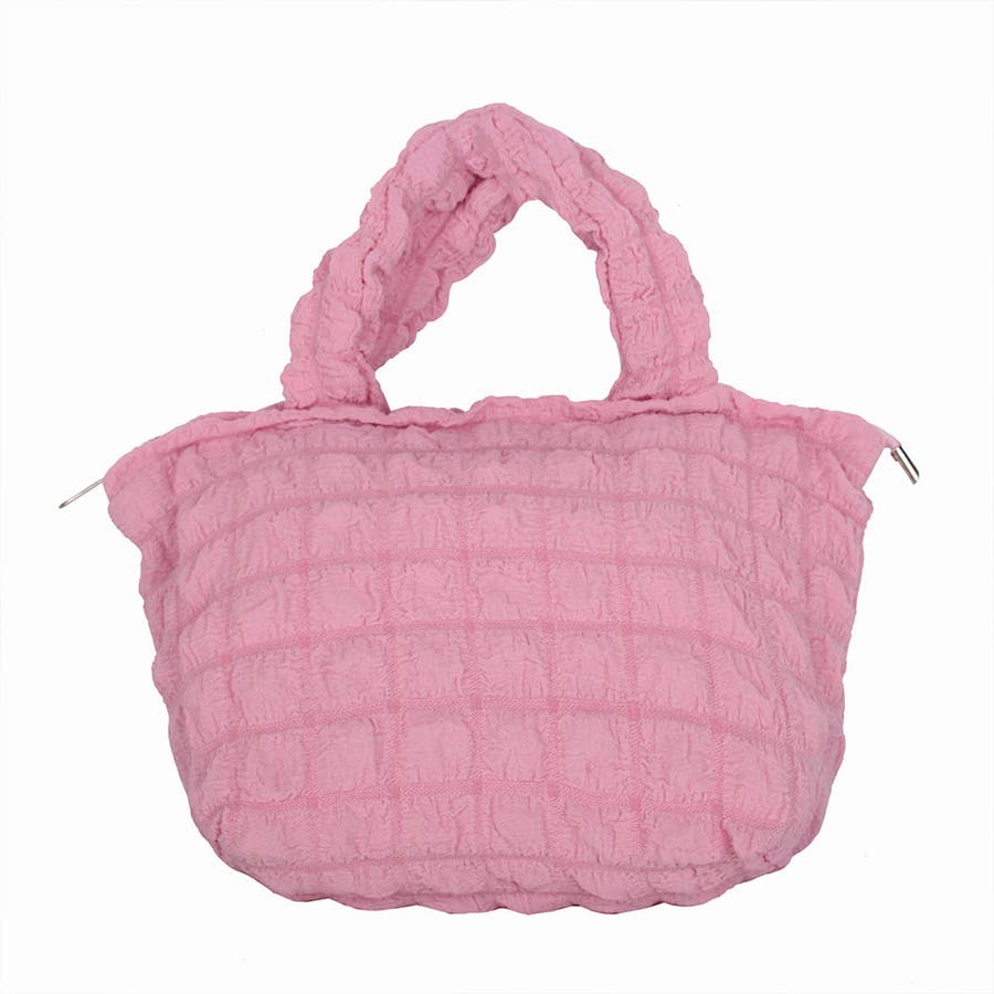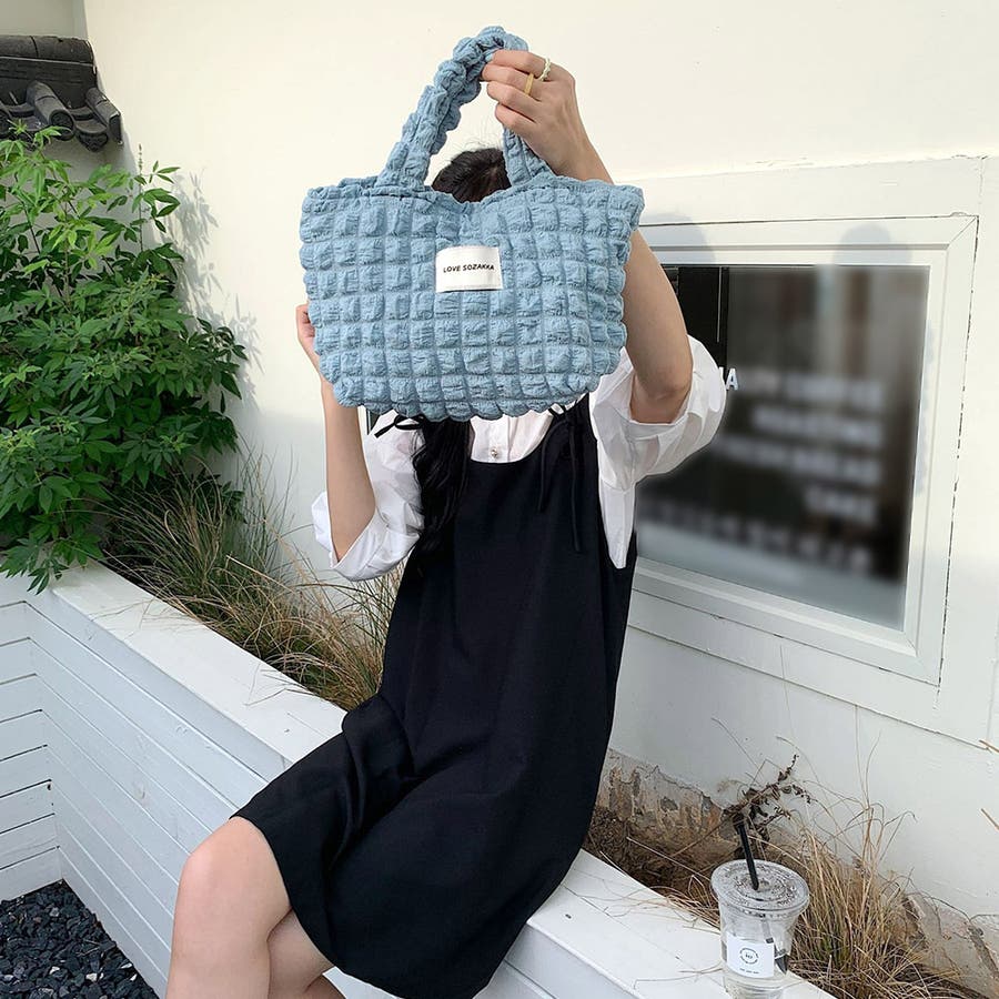 ポコポコとした表面感が可愛らしいポップコーン生地のミニトートバッグ