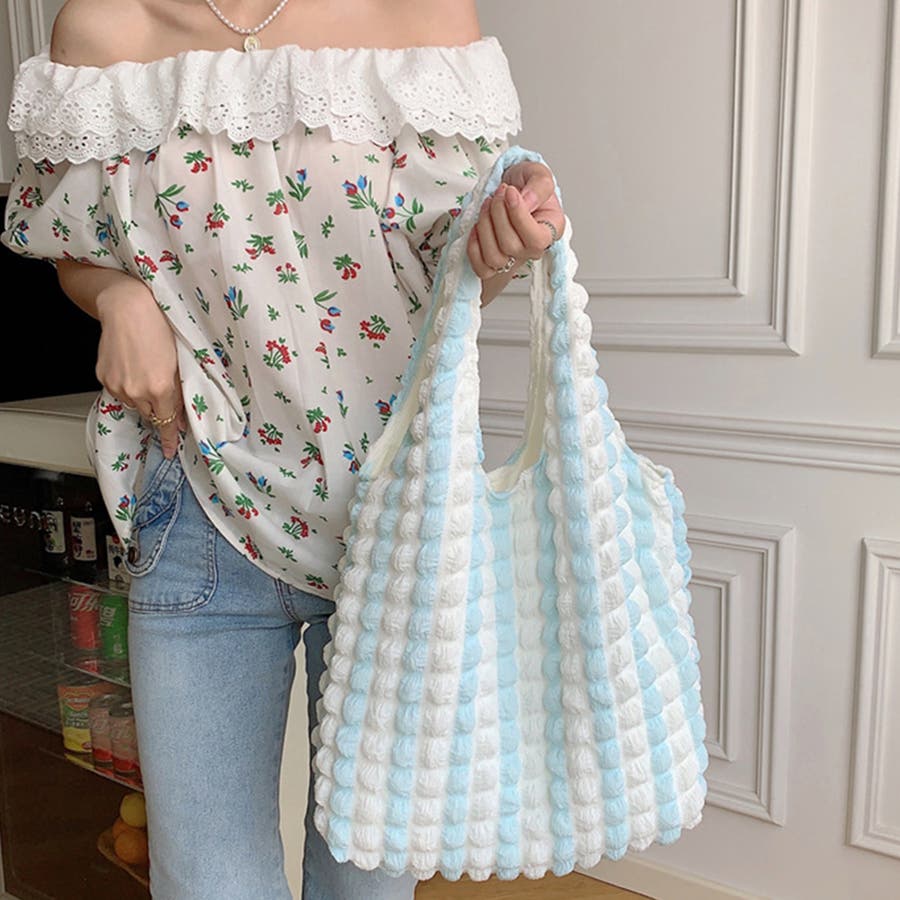 エンボスバッグ軽い お散歩バッグお洒落 ポコポコトート配色
