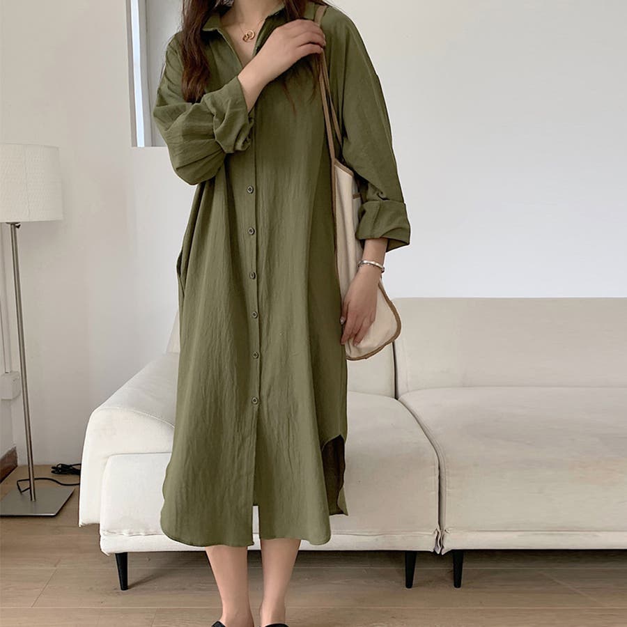 夏 秋 韓国 オルチャン 韓国ファッション 韓国風 韓国系 かわいい 可愛い きれいめ シンプル オフィス カジュアル OL フェミニン エレガント 人気 安い 洋服 レディース 通販 ファッション WOMEN デート 10代 20代 30代 40代 夏 秋 プチプラ コーデ 大人 トレンド 売れ筋 モテ モテ女子 大人女子 定番 袖あり 体型カバー 膝下 ミディアム丈 ロングワンピース ワンピ ワンピース シンプル シャツワンピ ホワイト ブラック ピスタチオグリーン カーキ ブラウンオフィスカジュアル 量産型 ホーム 中学生 高校生