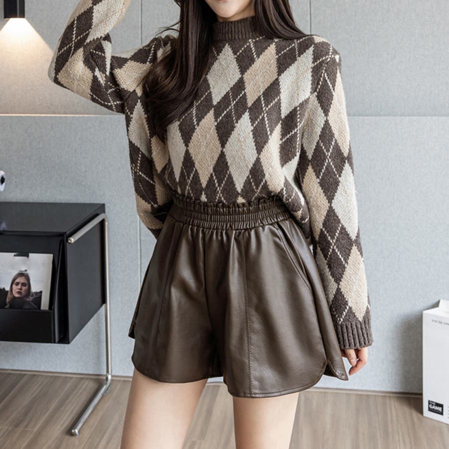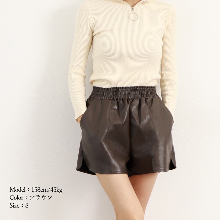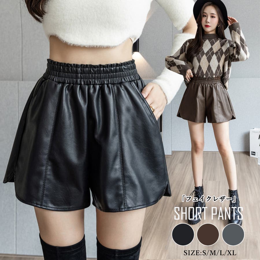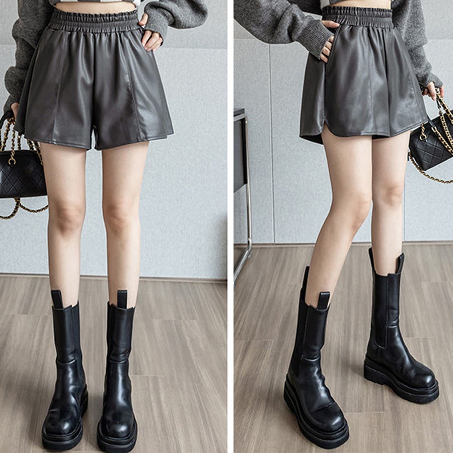 PUレザー ショートパンツ レディース