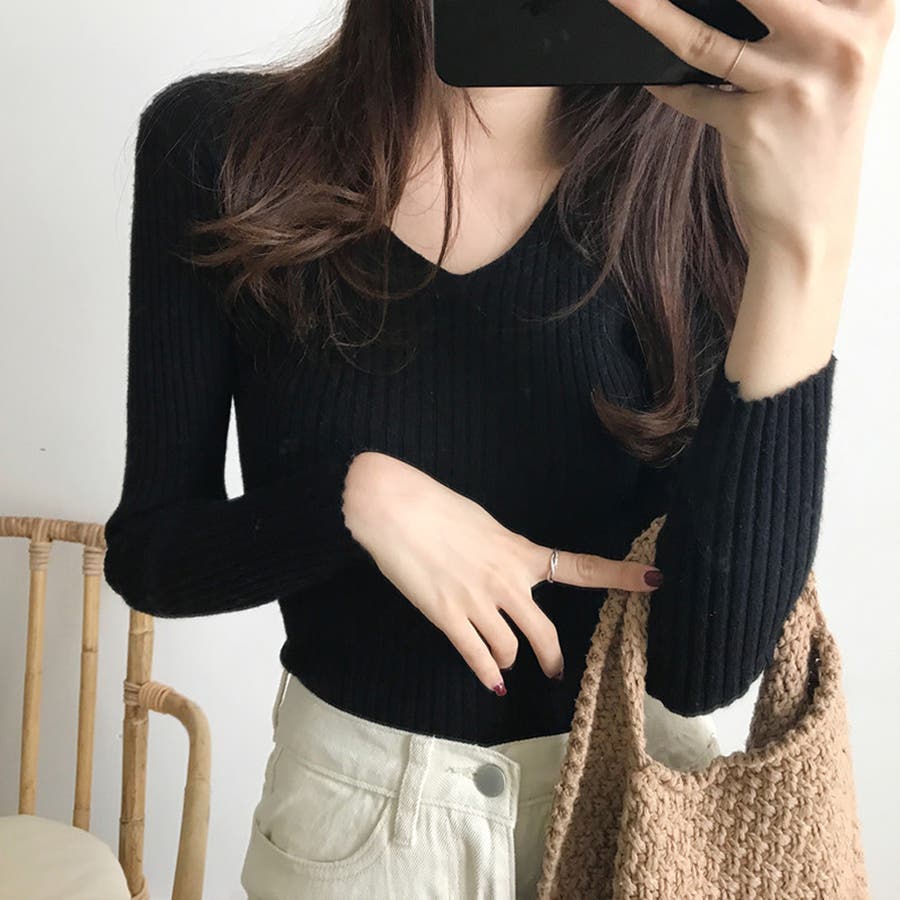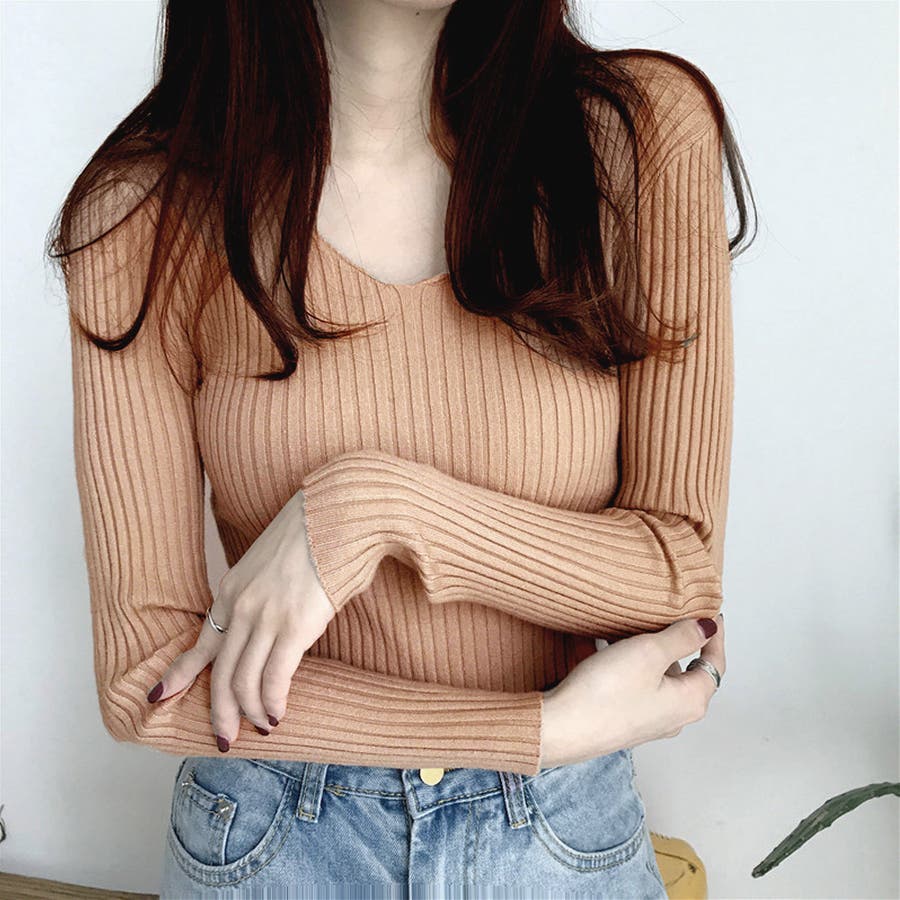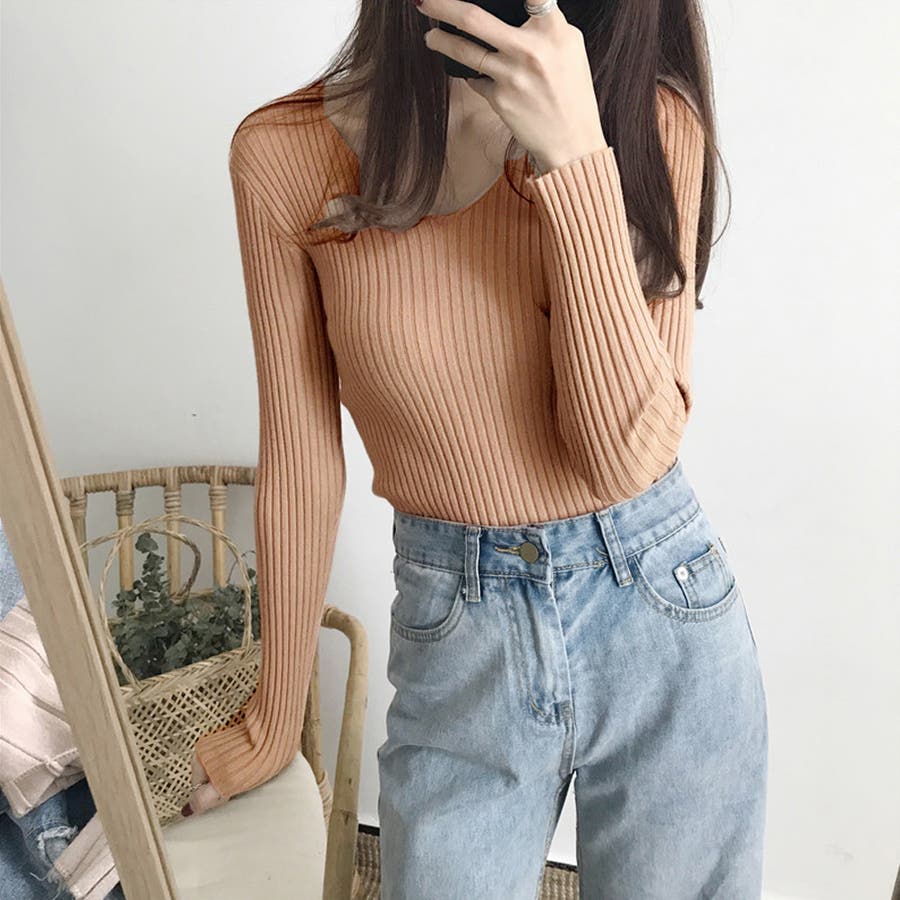 1枚を着るだけできれいめなオトナ女子に変身できるリブニットトップス