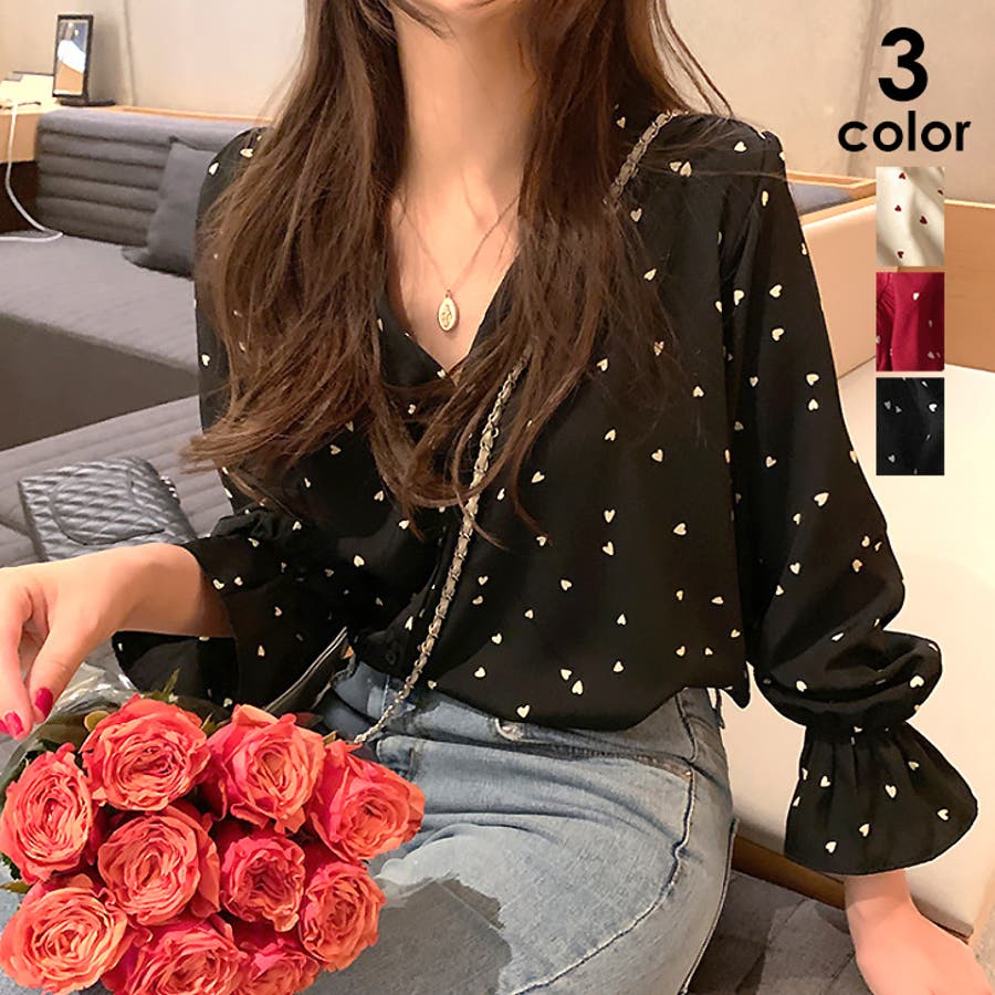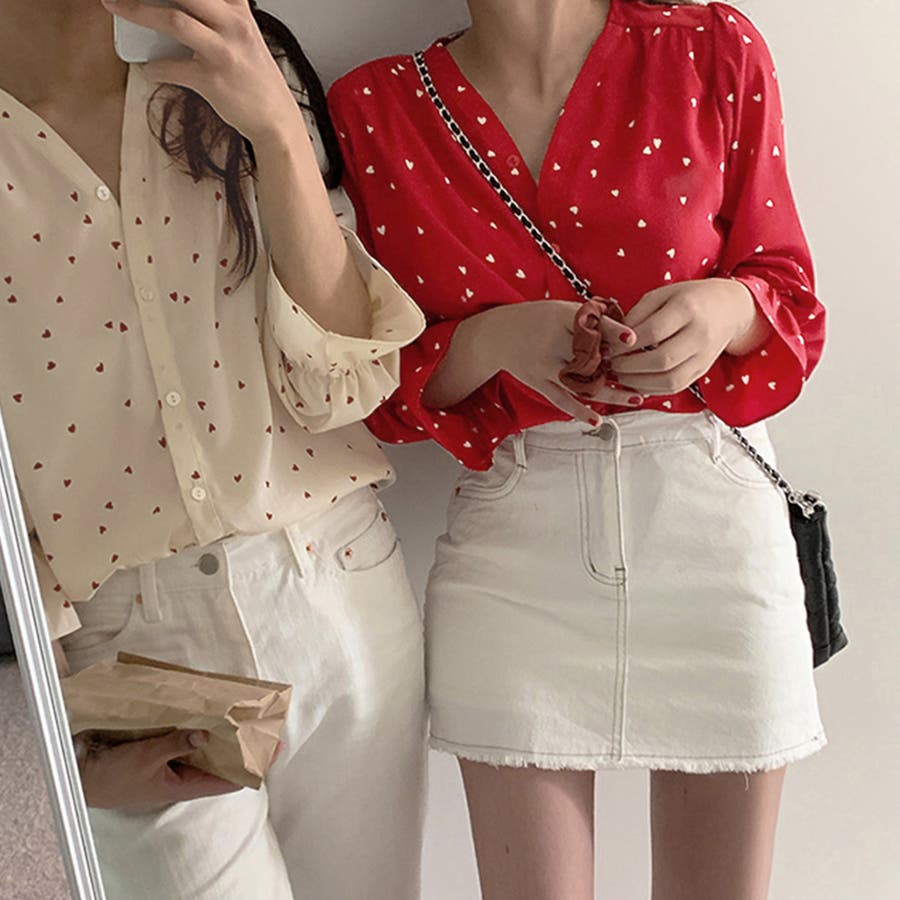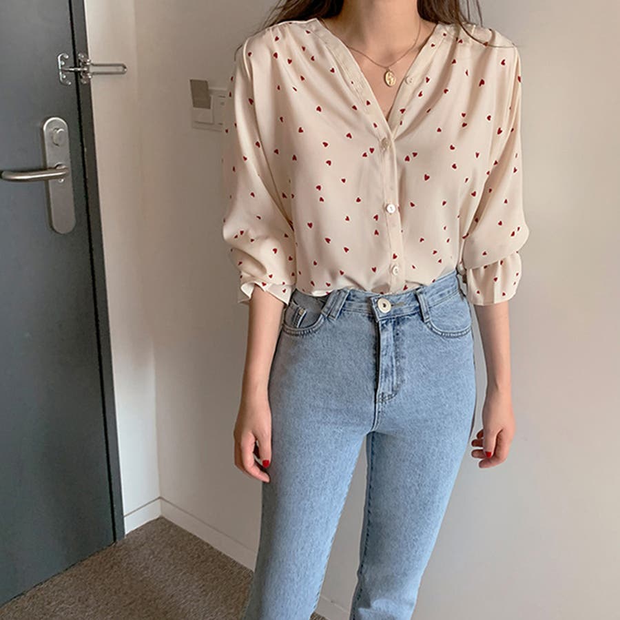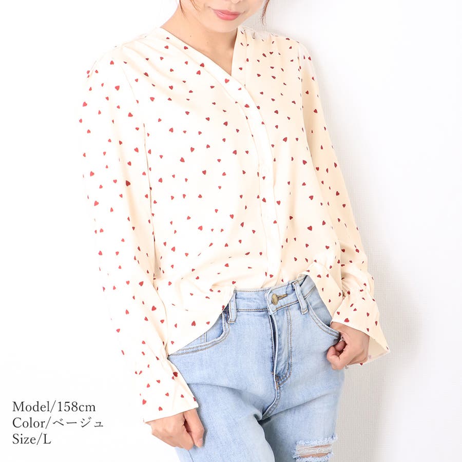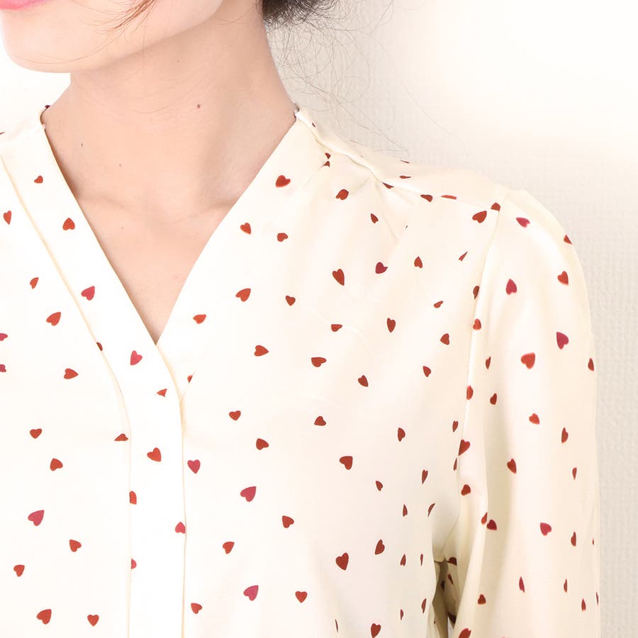 ハート柄 シャツブラウス レディースVネック
