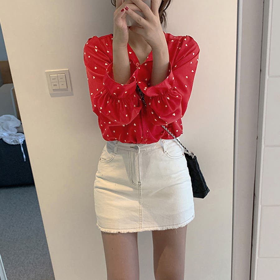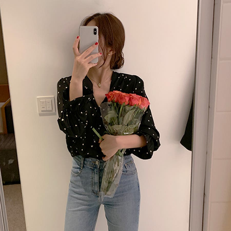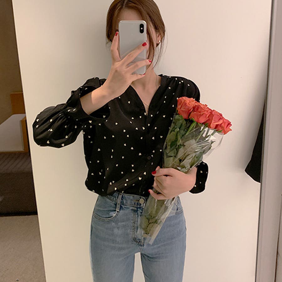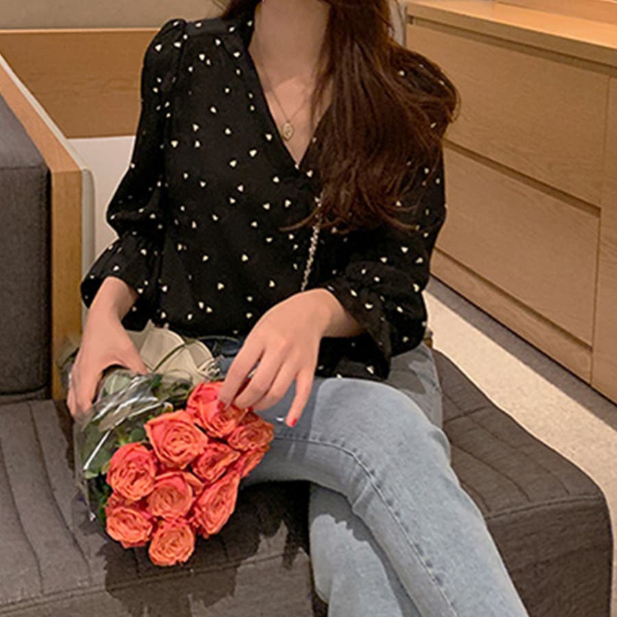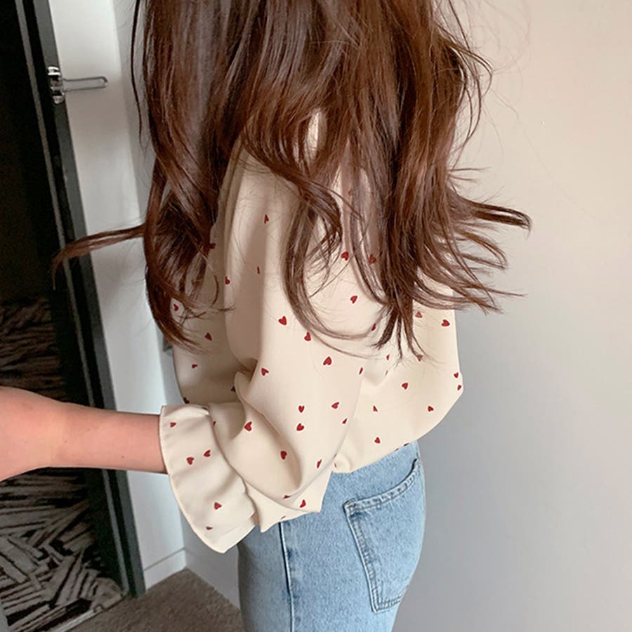 ハート柄 シャツブラウス レディースVネック
