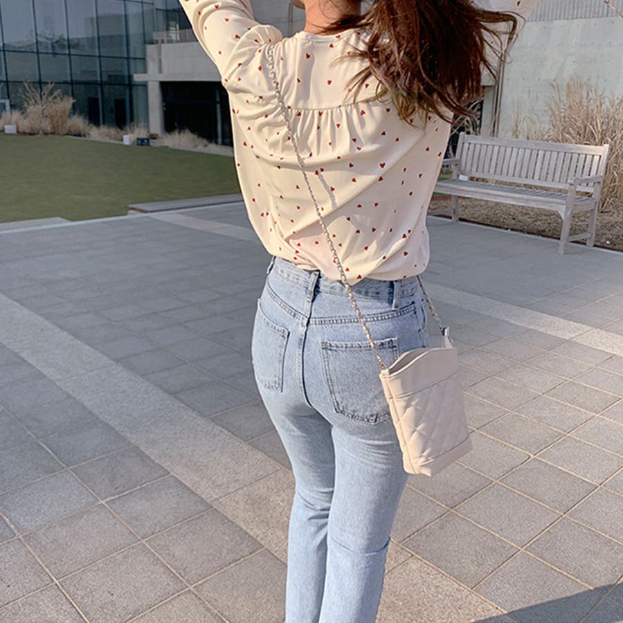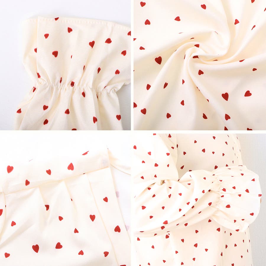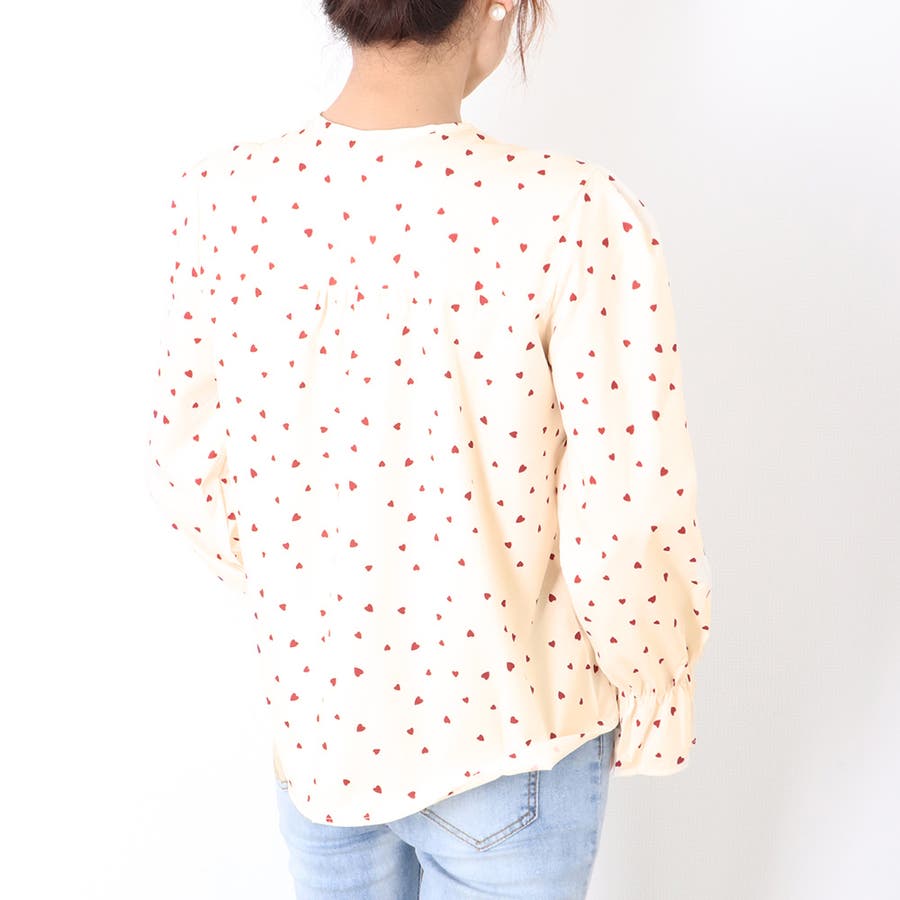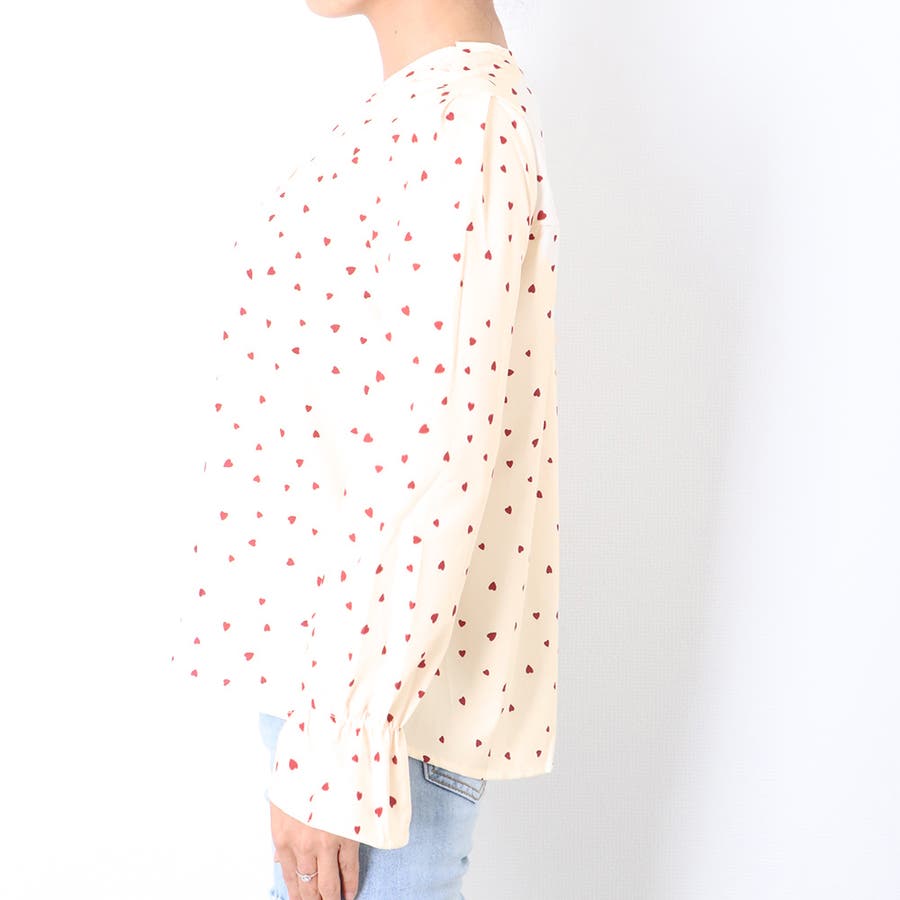 小さめのハート柄のプリントはとてもキュートなブラウス