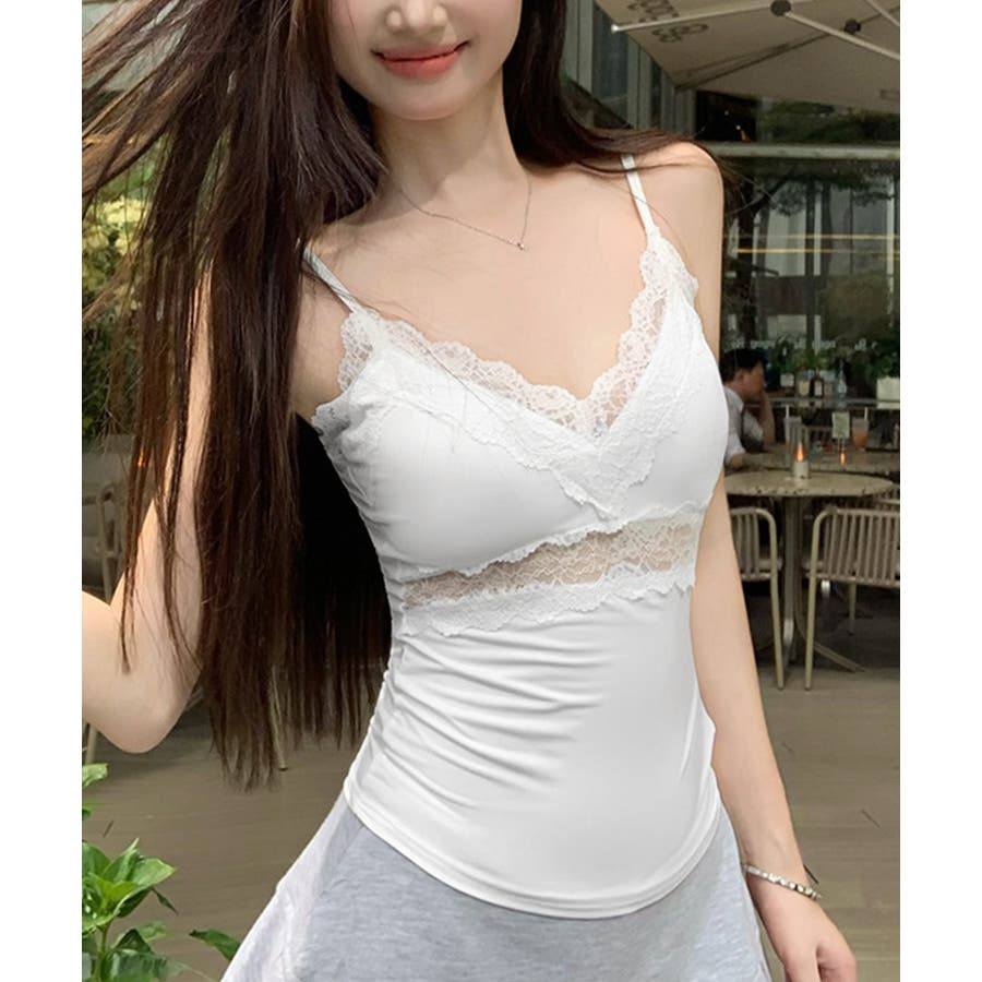 繊細なレースがあしらわれた、上品で女性らしいキャミソールトップスです。
