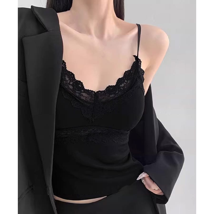 レースキャミソール カップ付きブラトップ