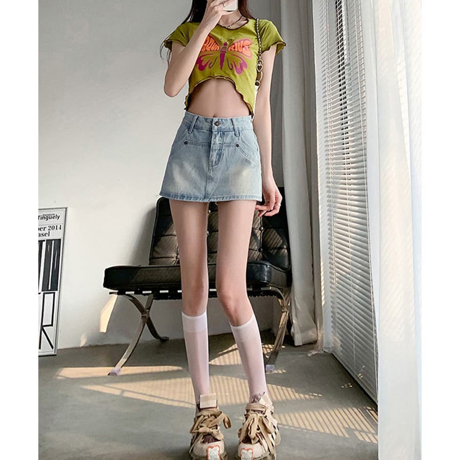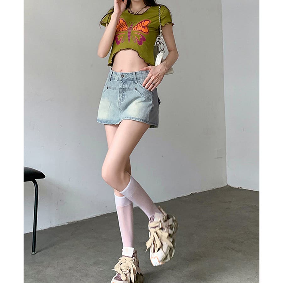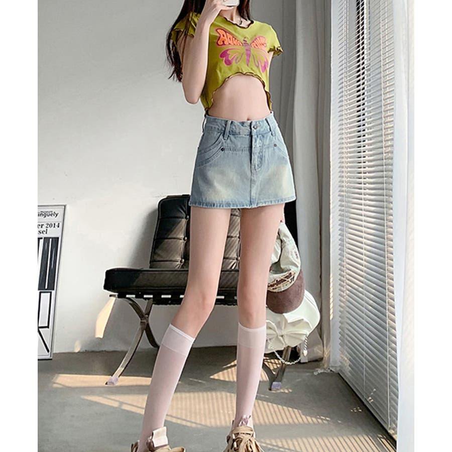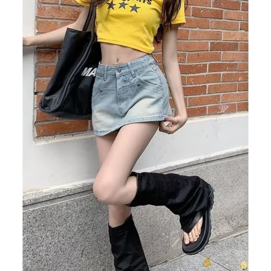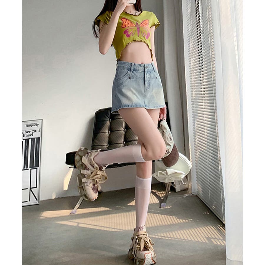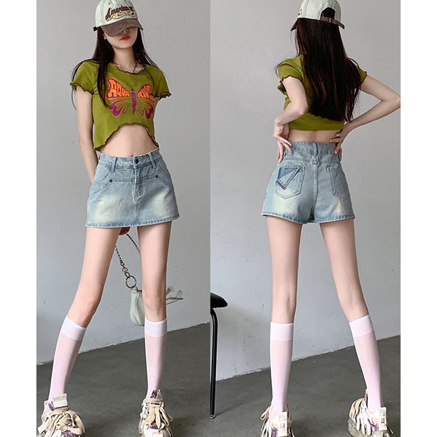 ミニスカートのデザインですが、後ろから見るとショートパンツのデニムスカパンです。