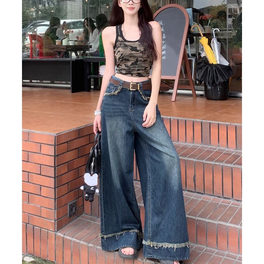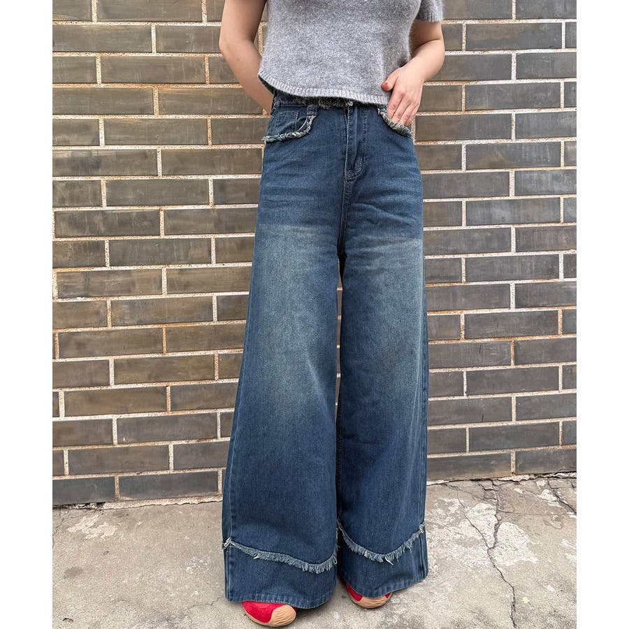 ボトムス体型カバー 細見えデニムレトロ カジュアル 低身長
