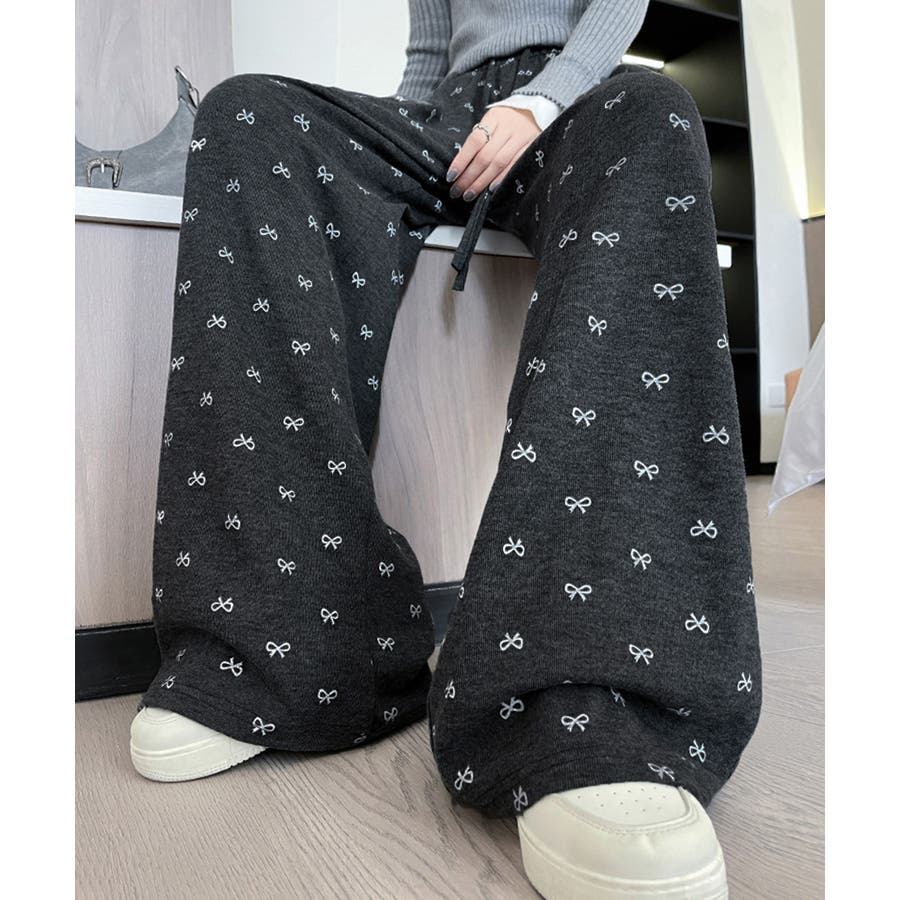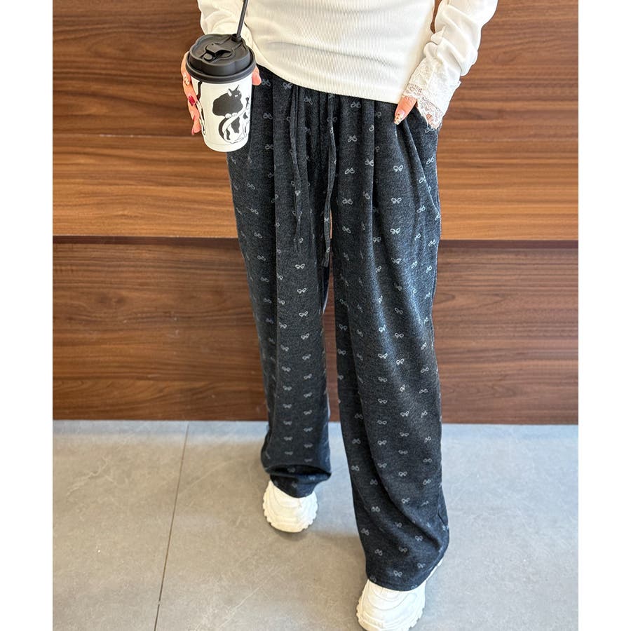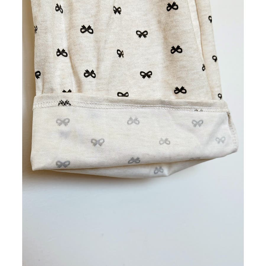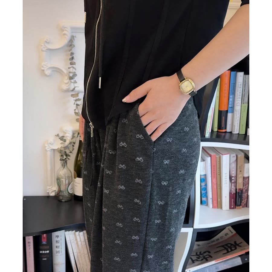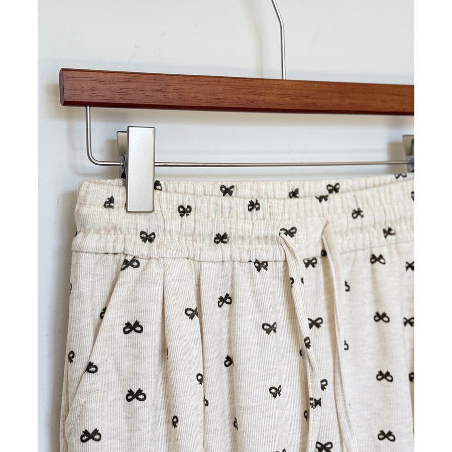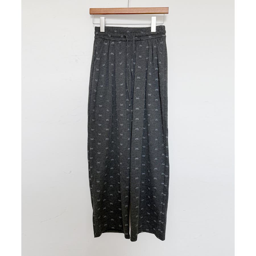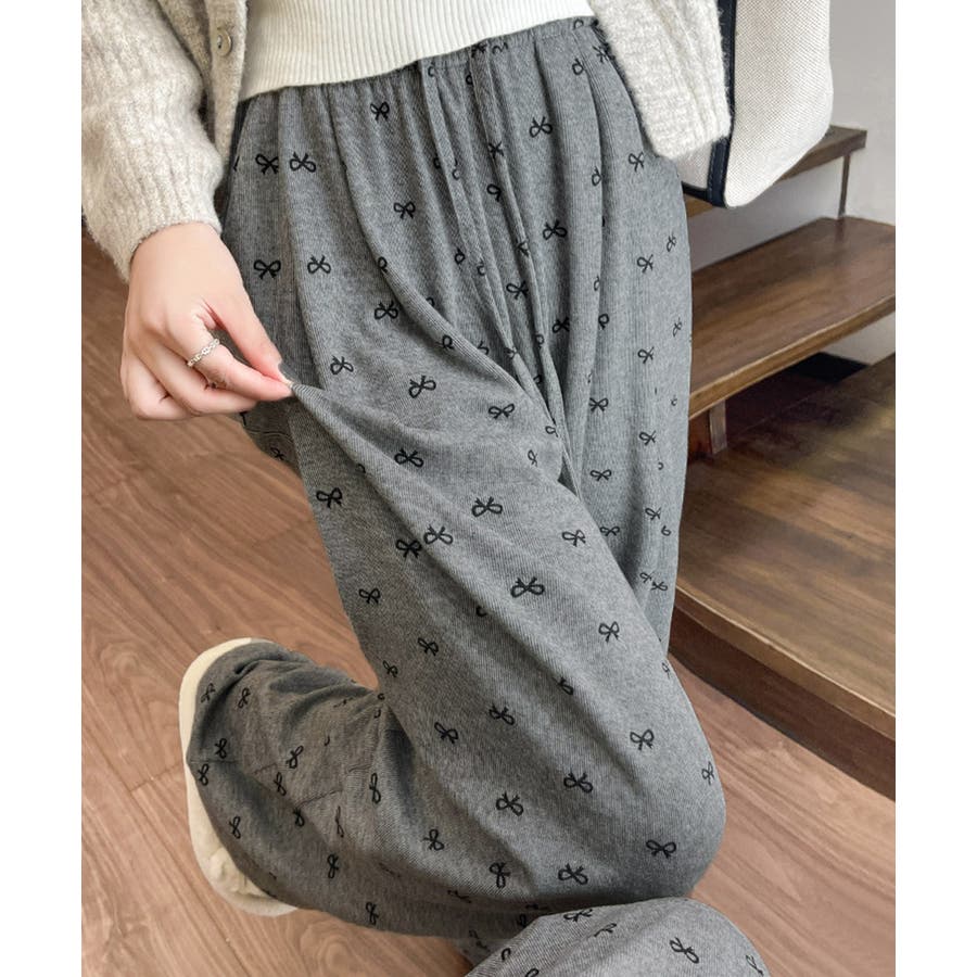 小さなリボン柄がとても可愛いリラックスパジャマパンツです。