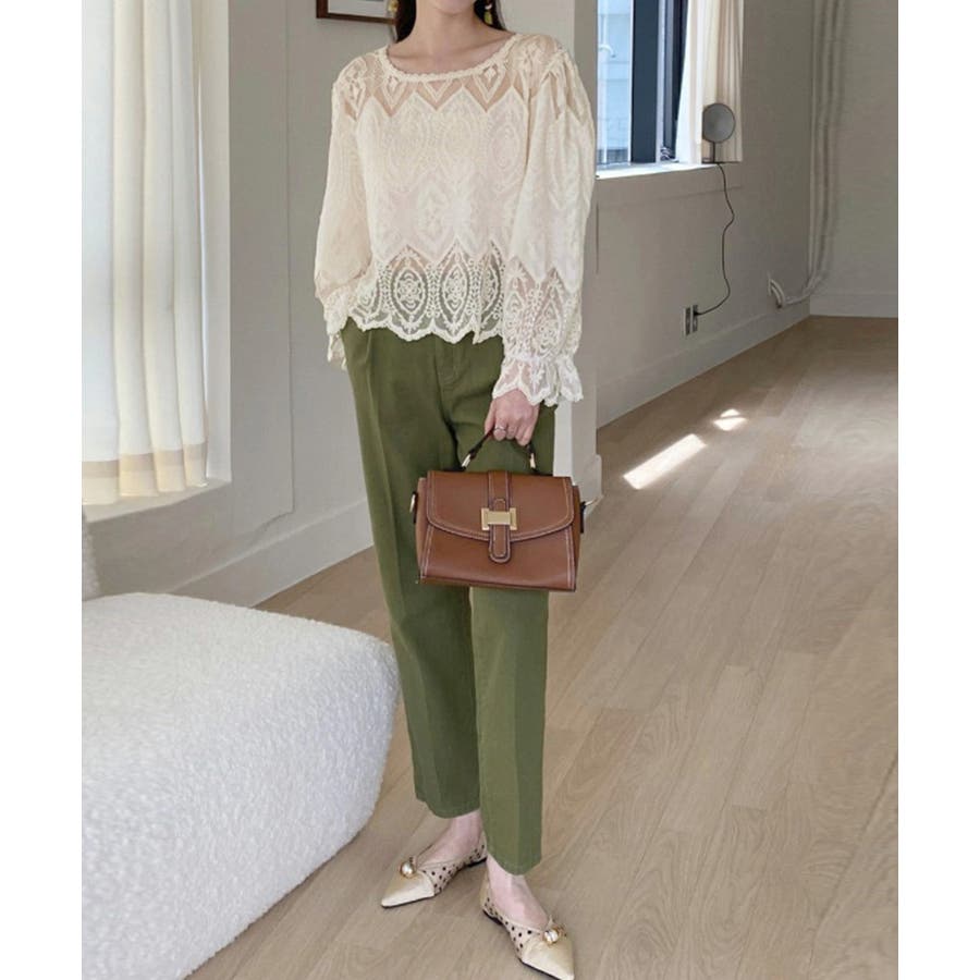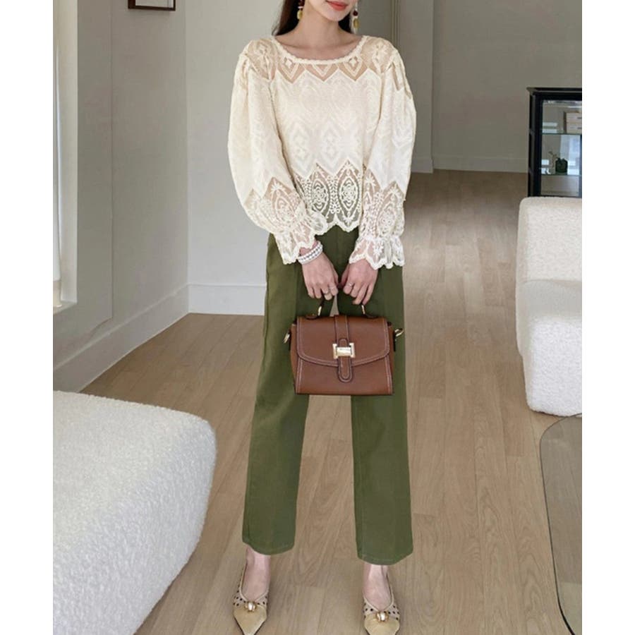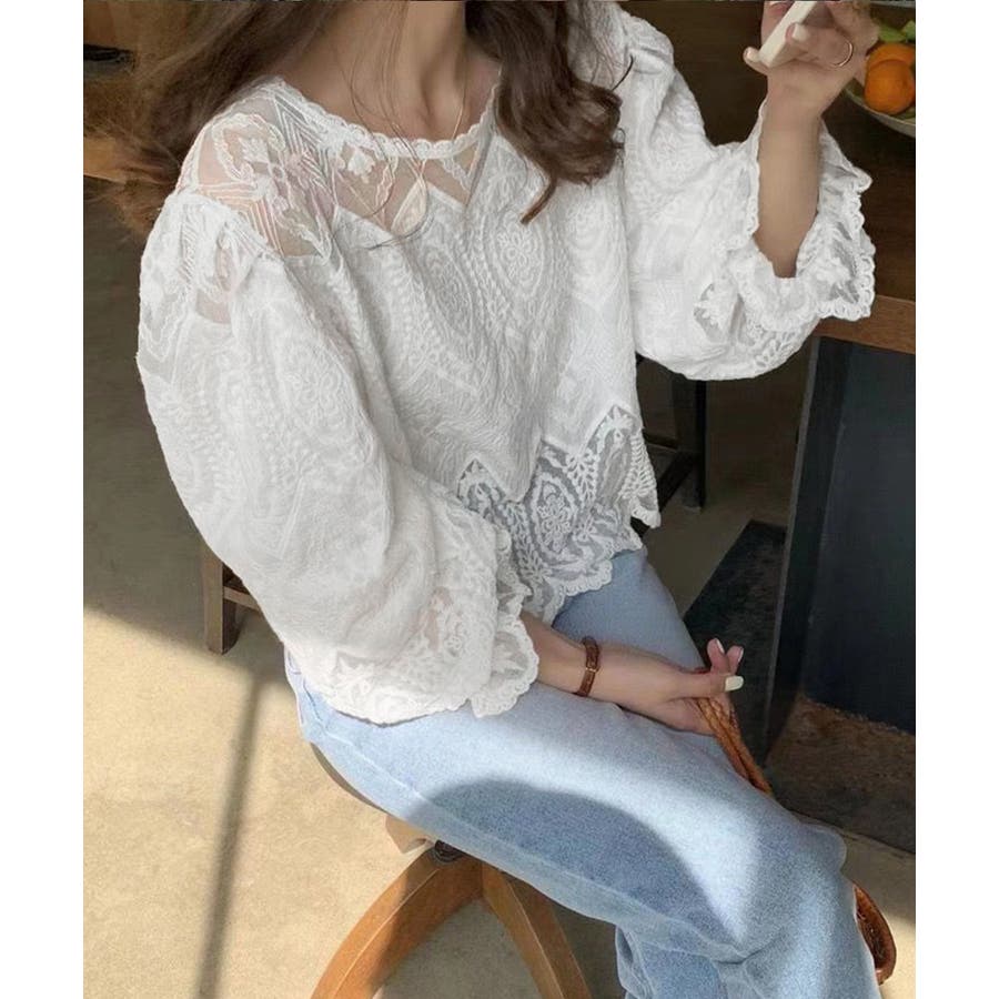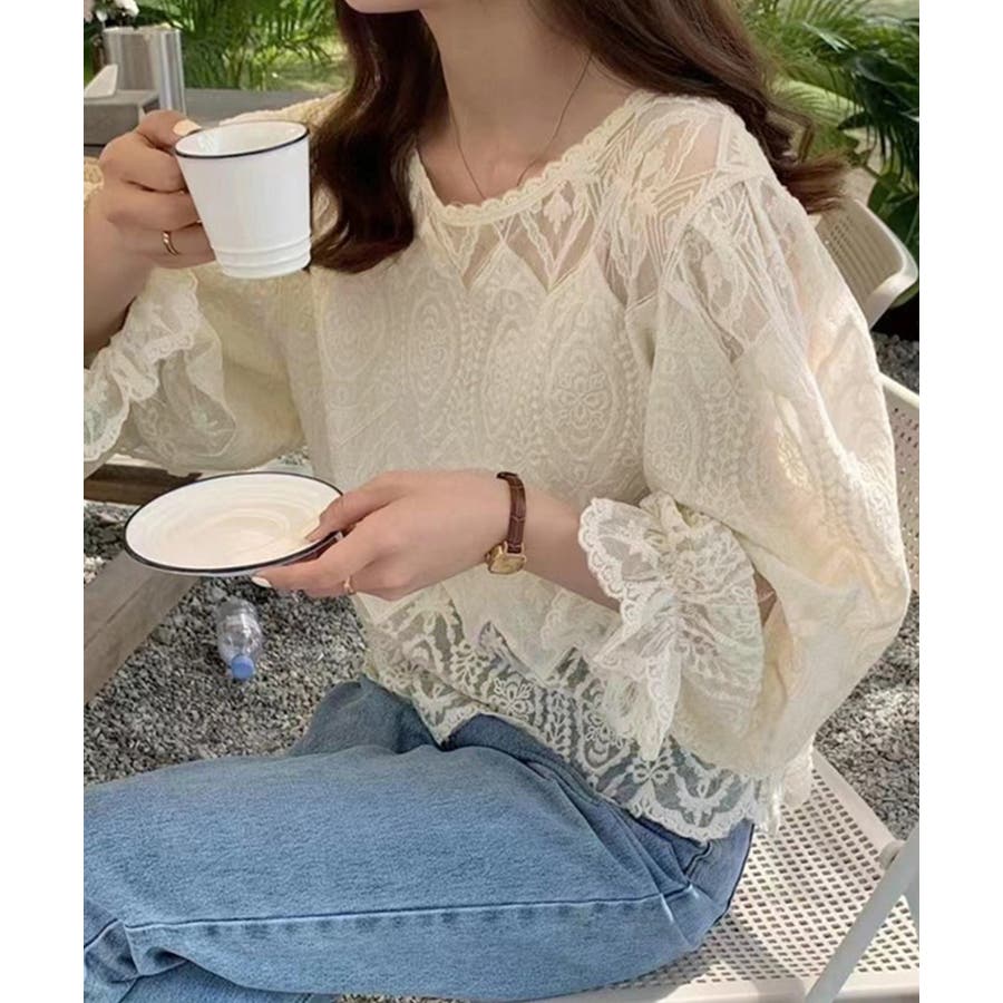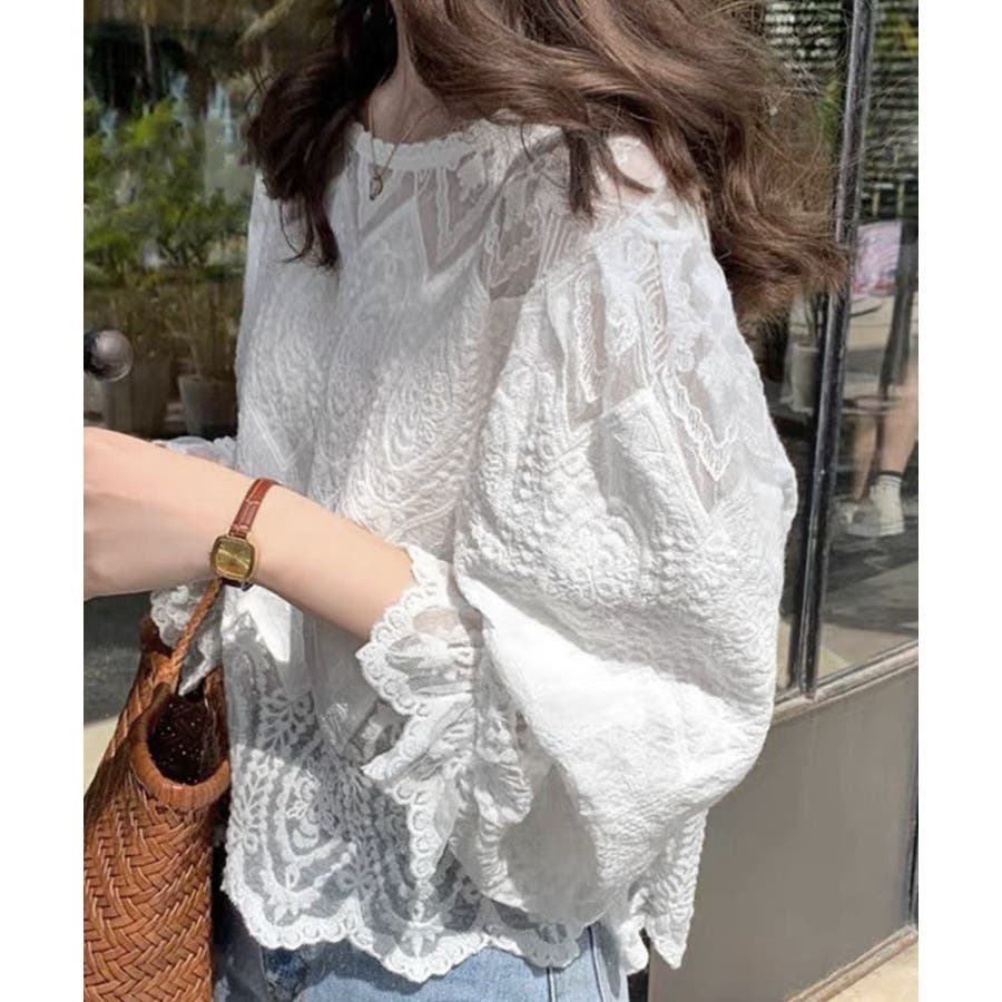 レース透かし袖ボリュームブラウス 春夏
