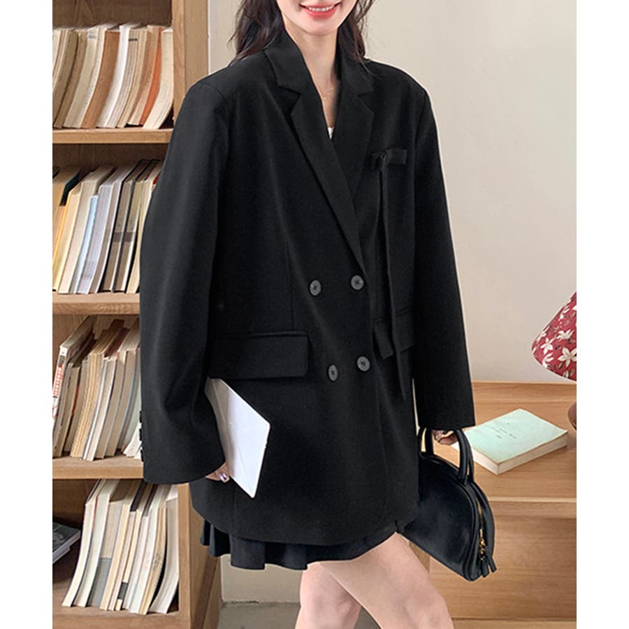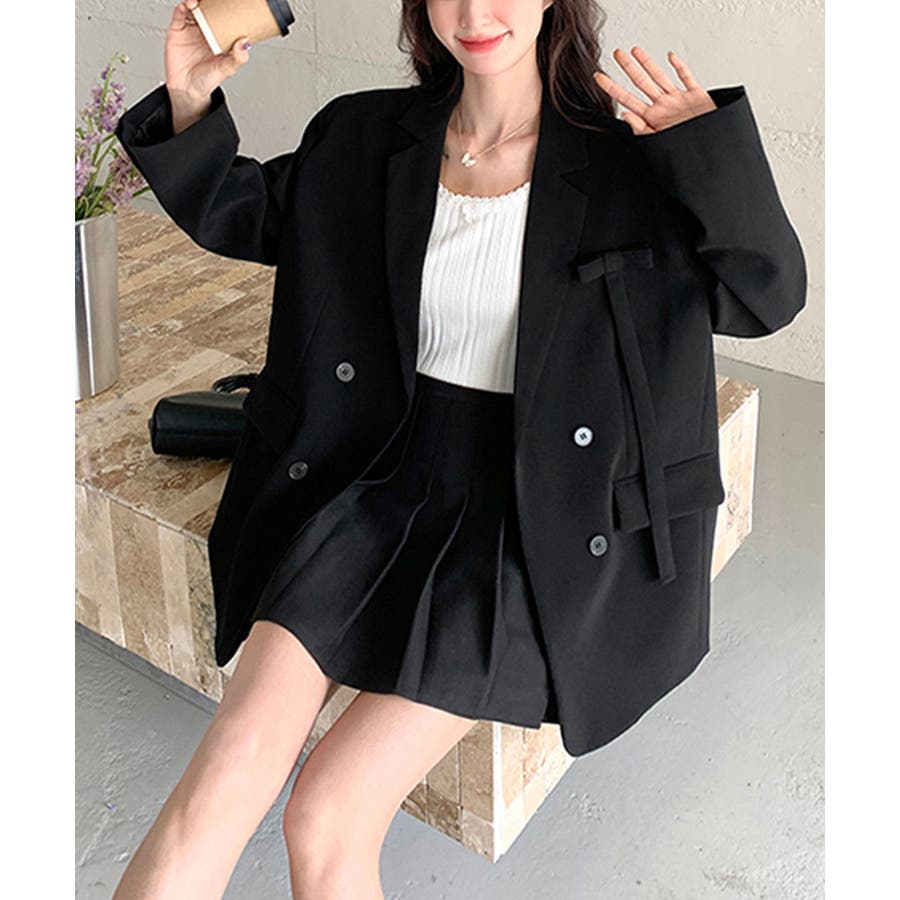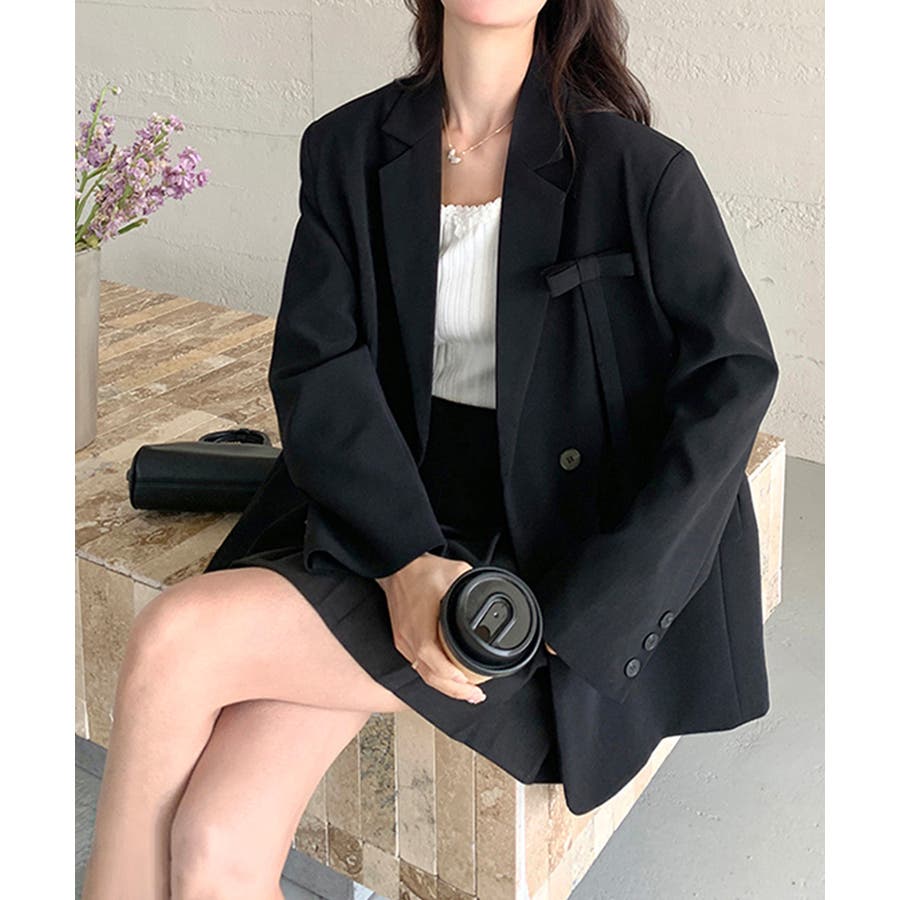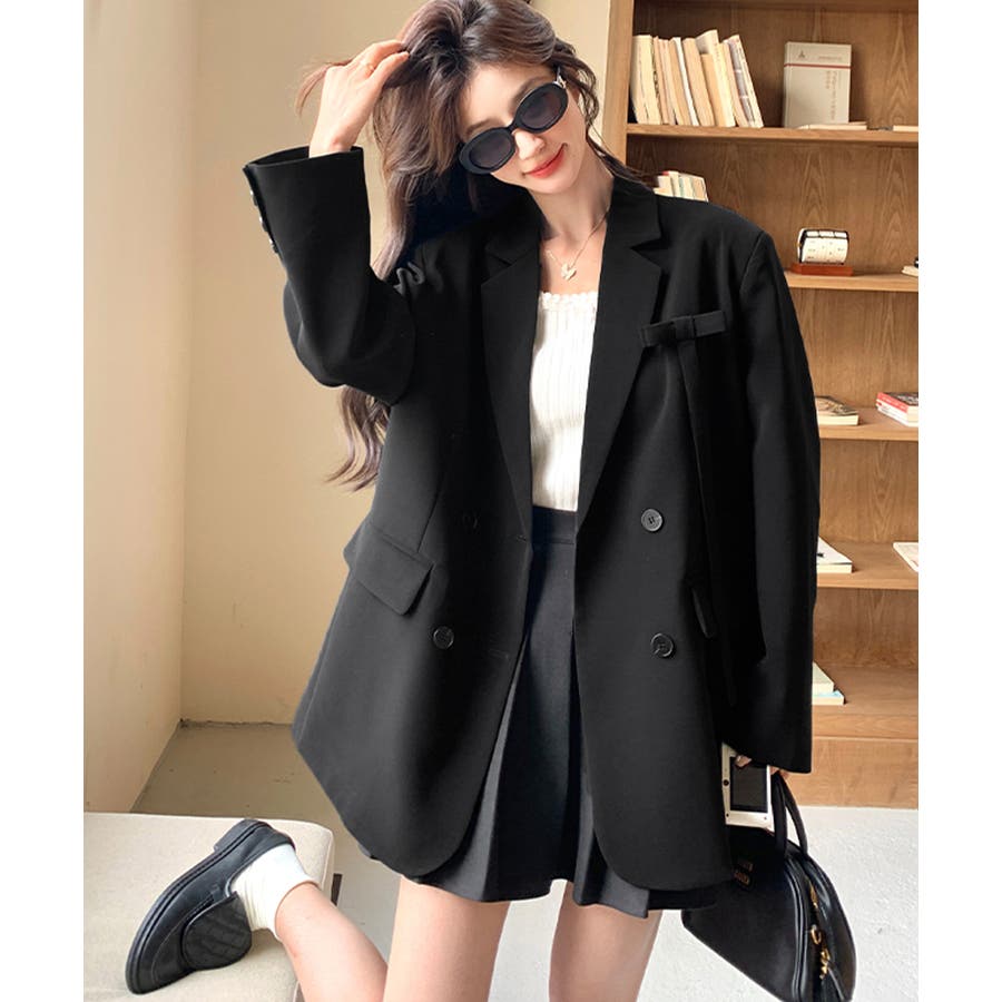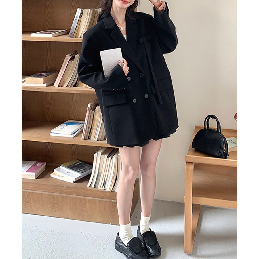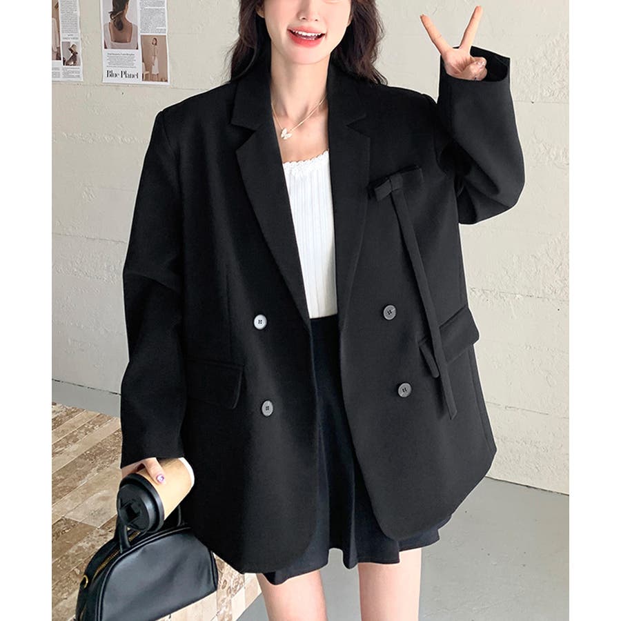 肩パッド入りオーバーサイズジャケット ポケット付き スーツジャケット オフィスカジュアル 韓国風 ベーシックアウター長袖