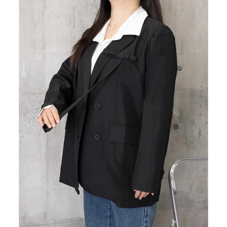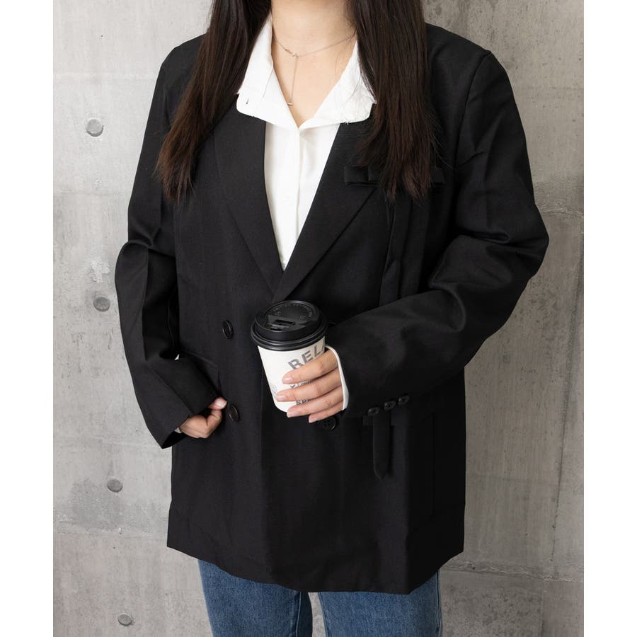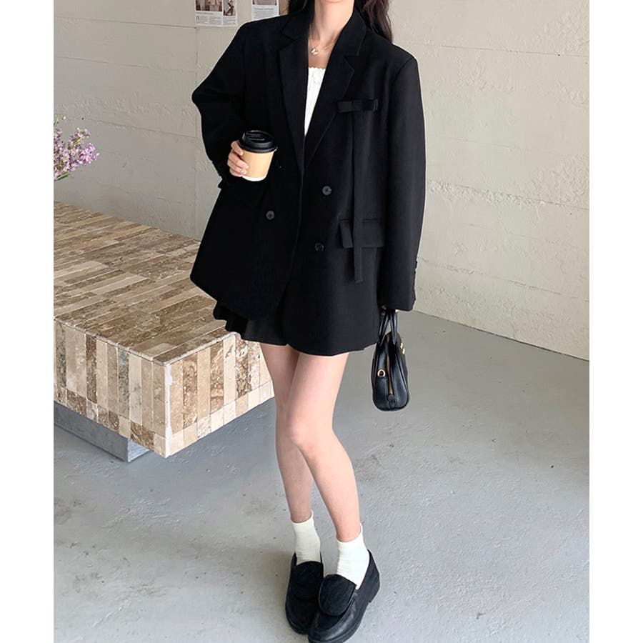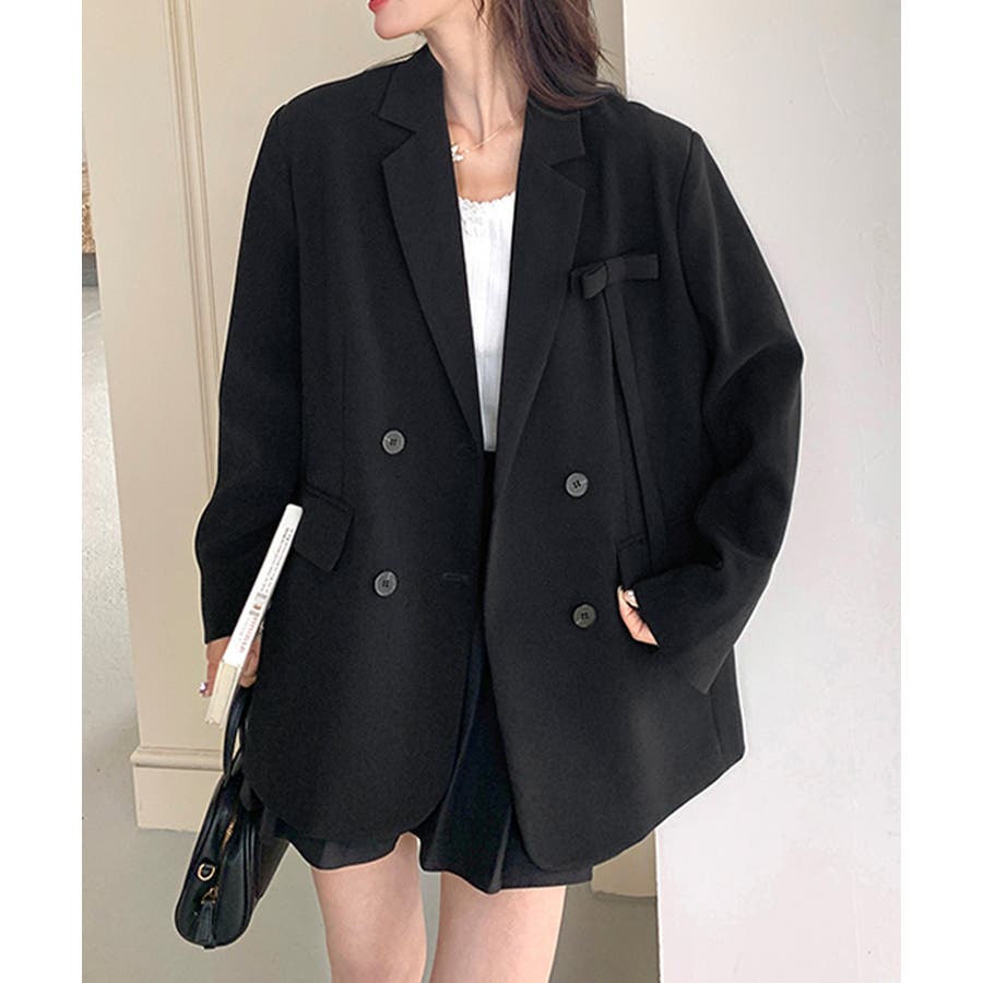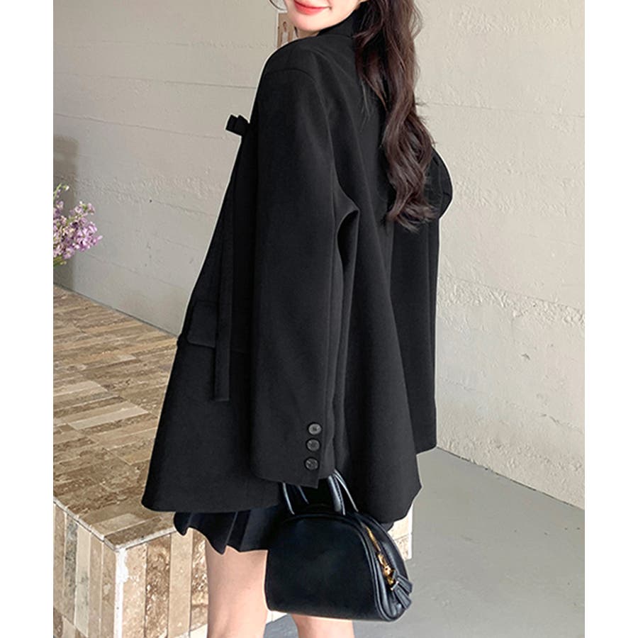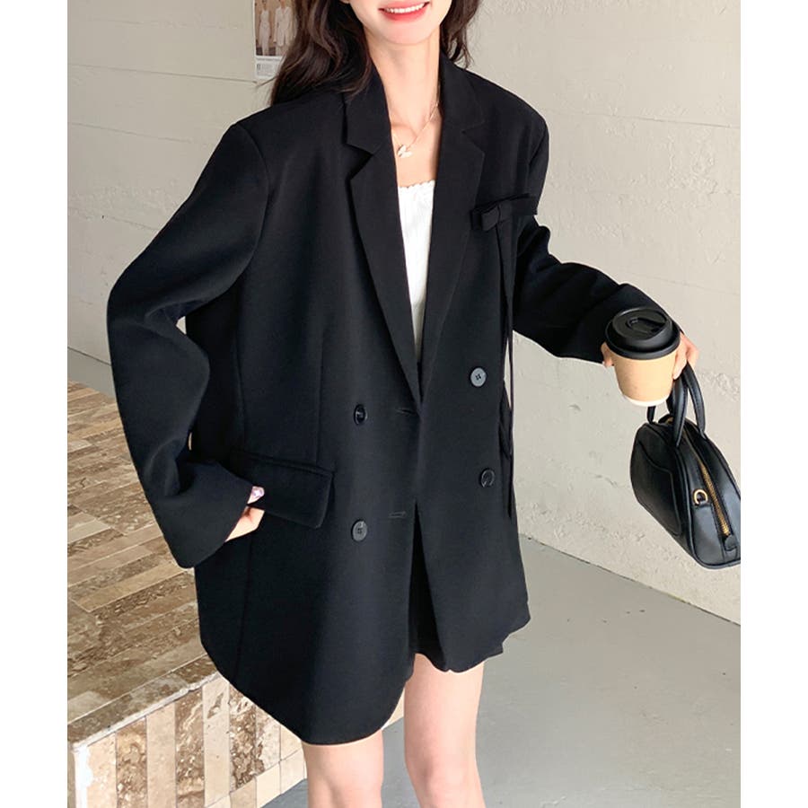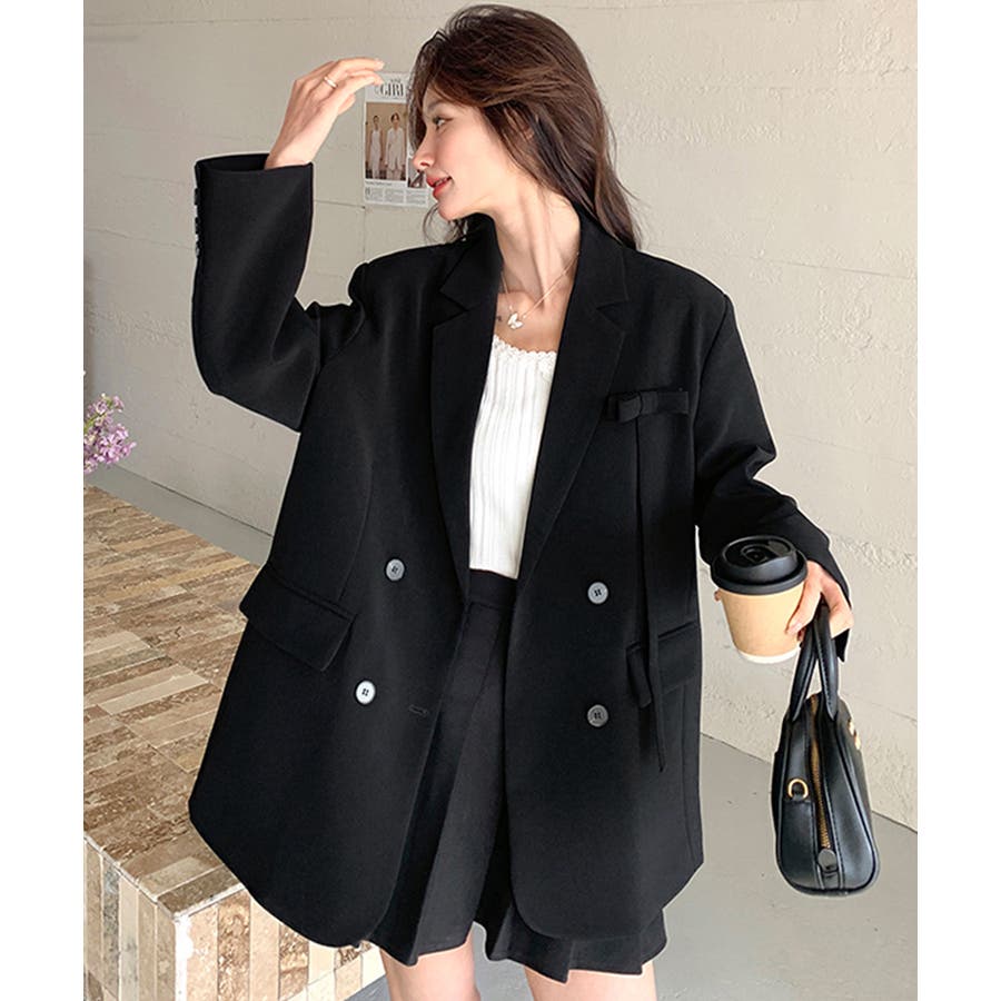 肩パッド入りオーバーサイズジャケット ポケット付き スーツジャケット オフィスカジュアル 韓国風 ベーシックアウター長袖