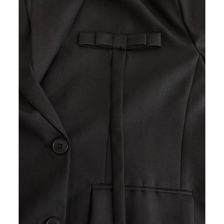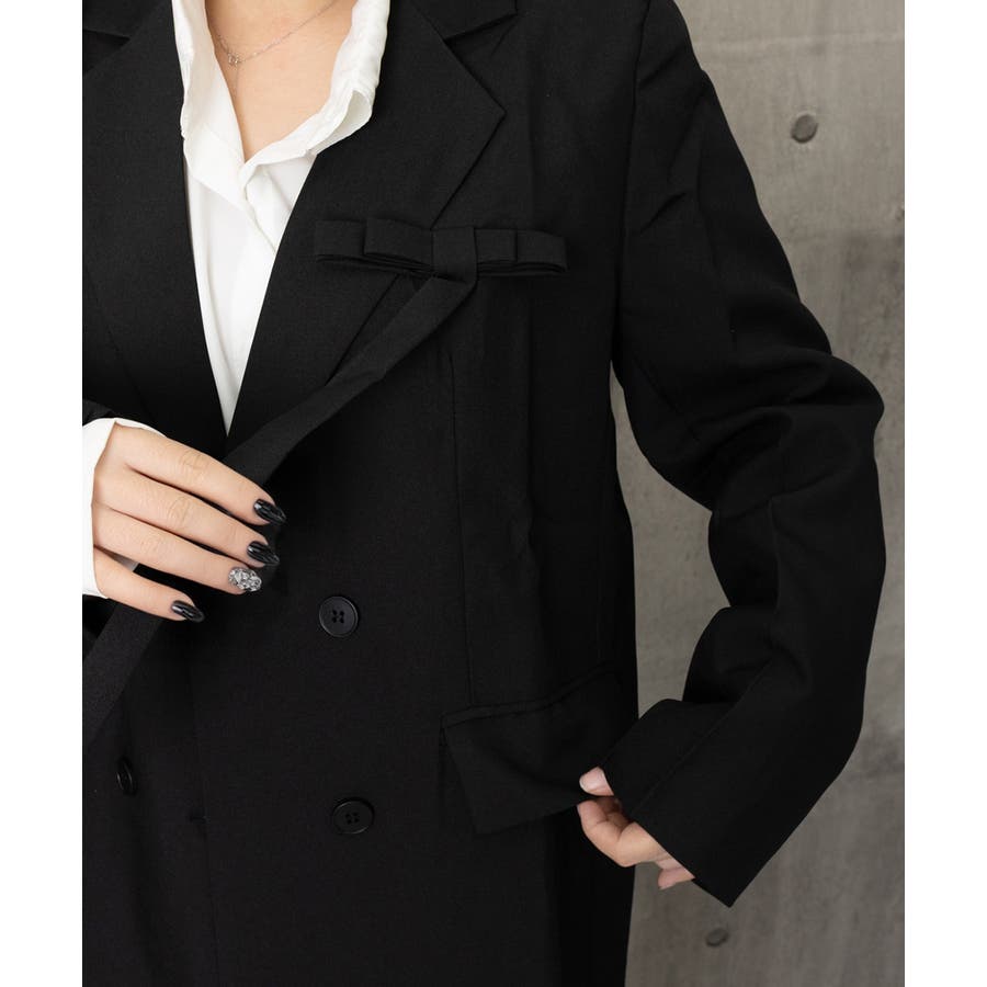 胸元にあしらった上品なリボンディテールが、シンプルながらも女性らしさを引き立てるポイント。