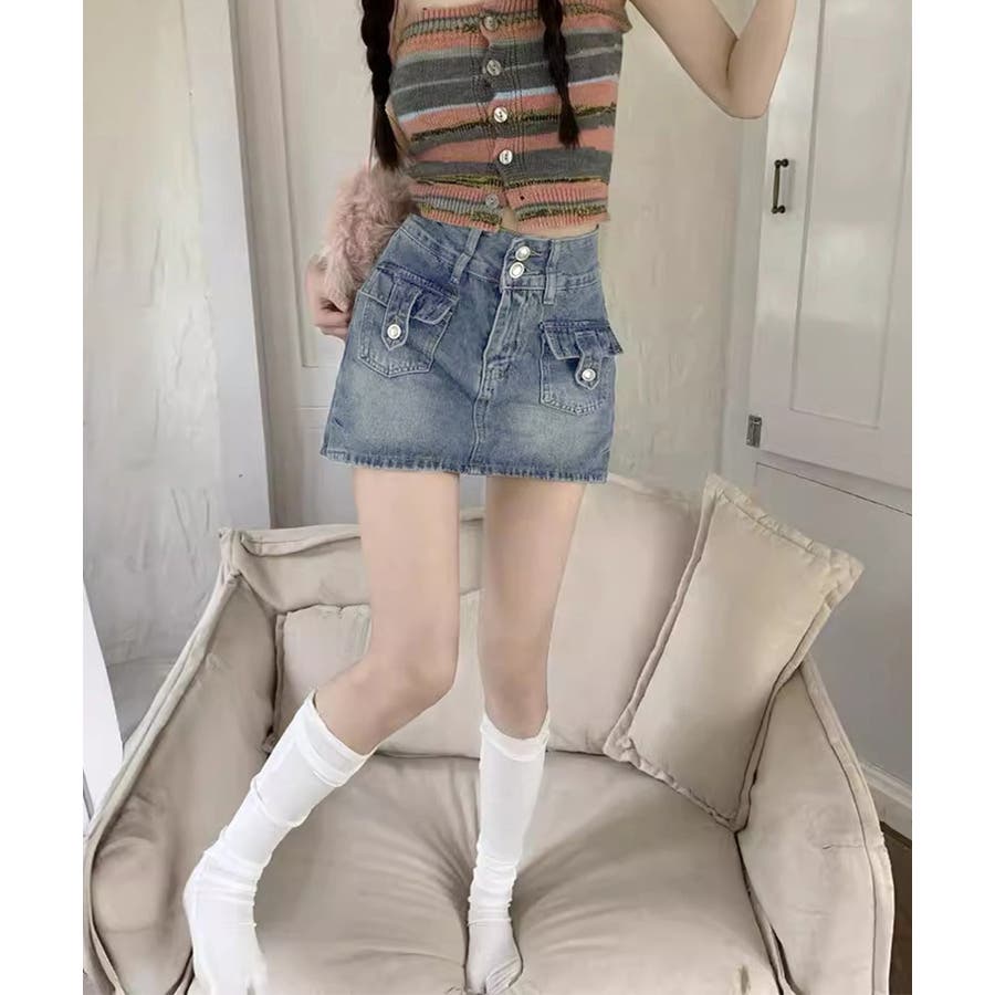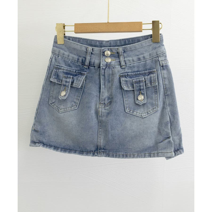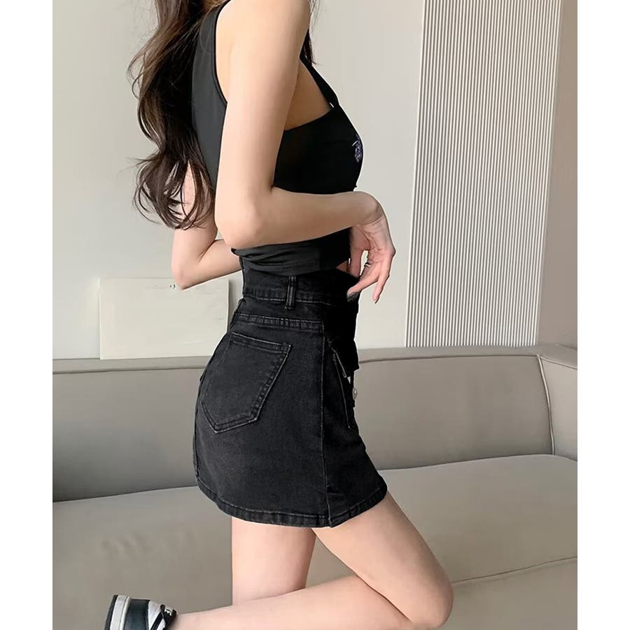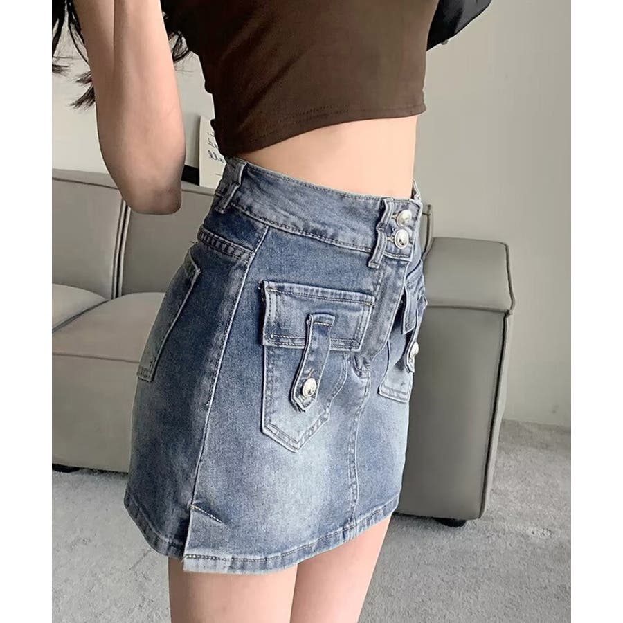 カーゴミニスカート 細見え台形スカート 着やせデニムレトロ