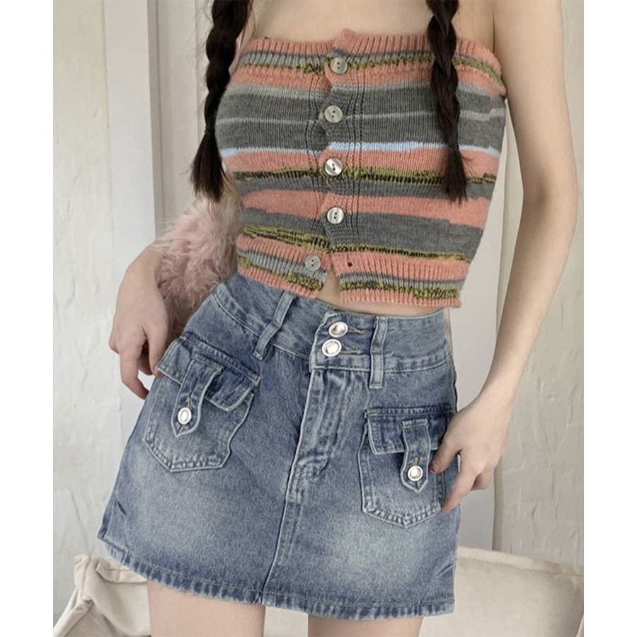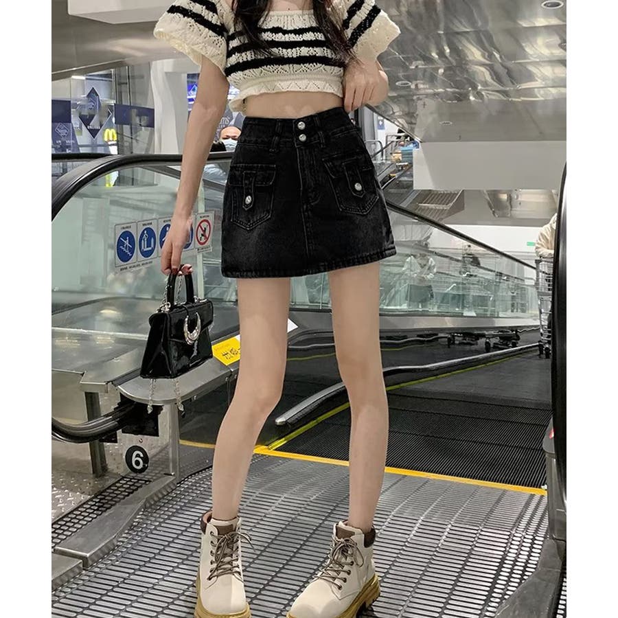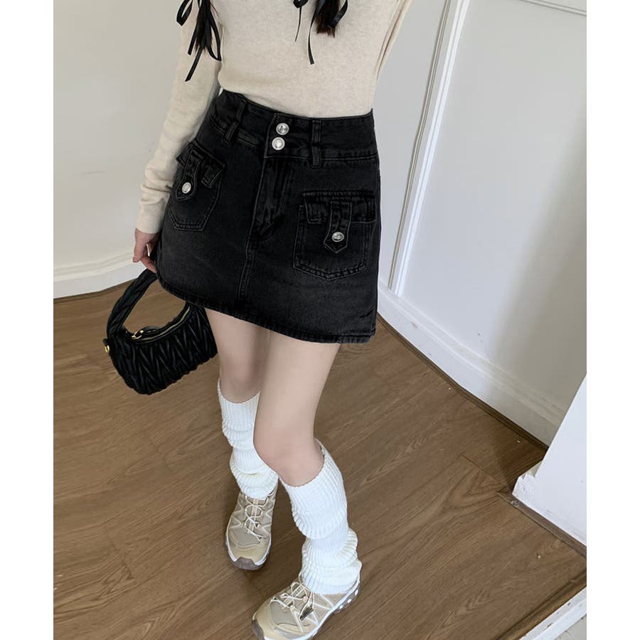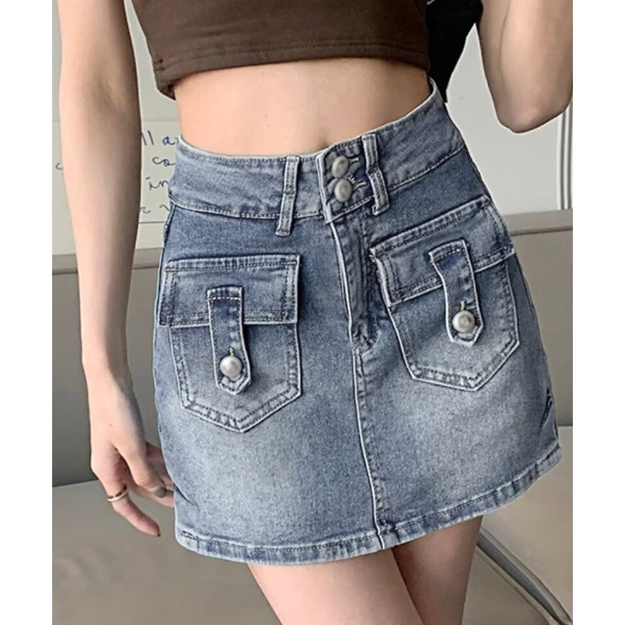 カーゴミニスカート 細見え台形スカート 着やせデニムレトロ