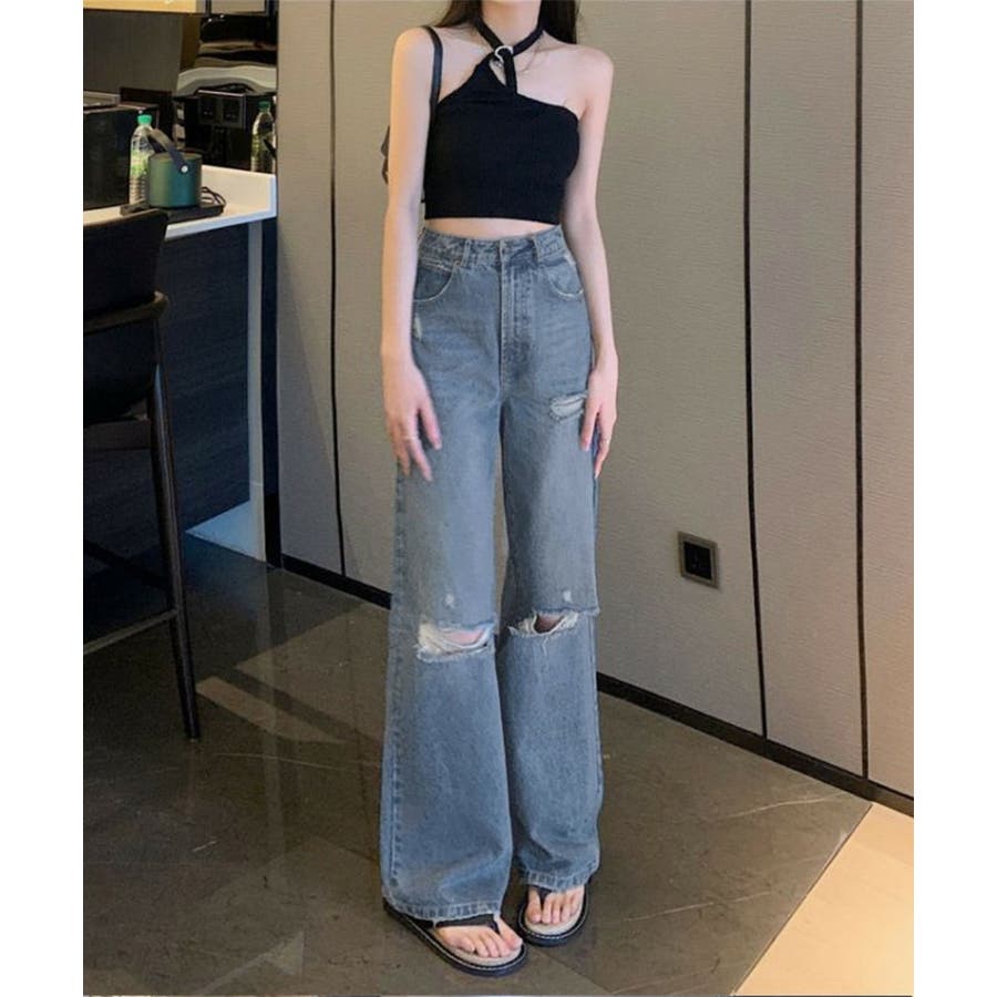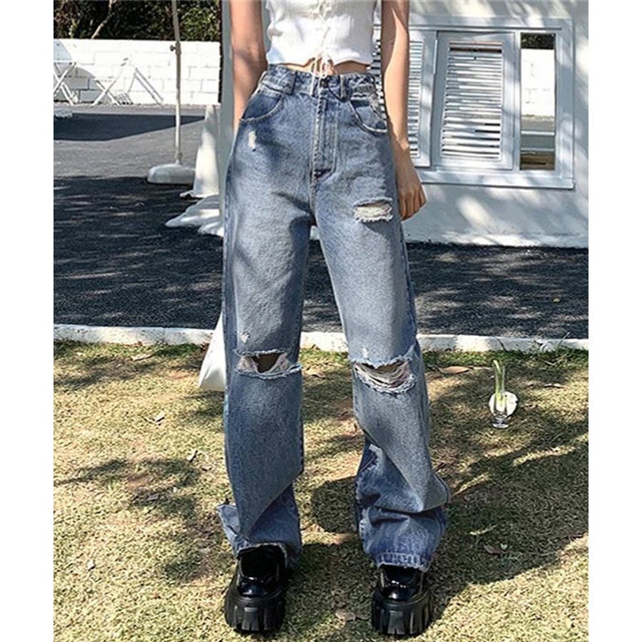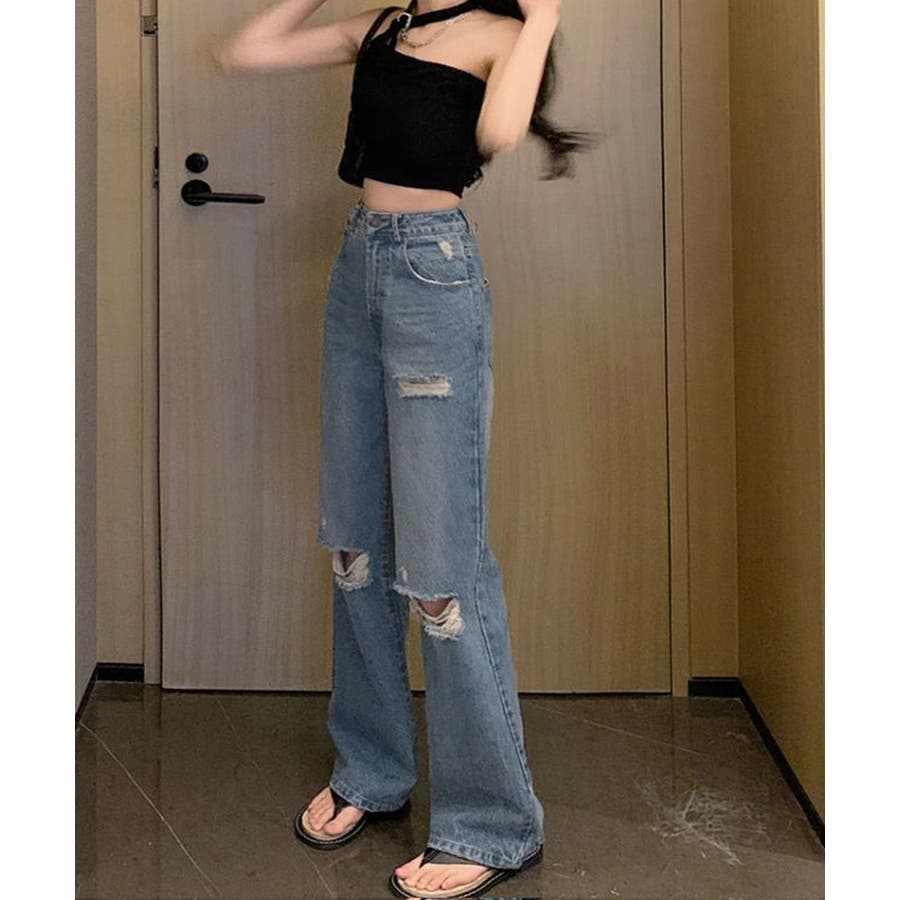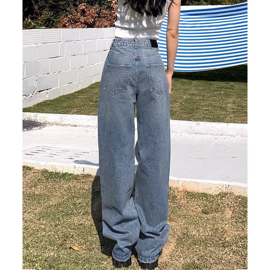 ハイウエスト ストレートデニム ホットガールスタイル アメカジジーパン カジュアルレトロジーンズ ロングズボン 美脚脚長