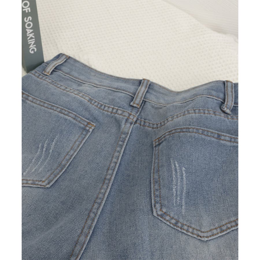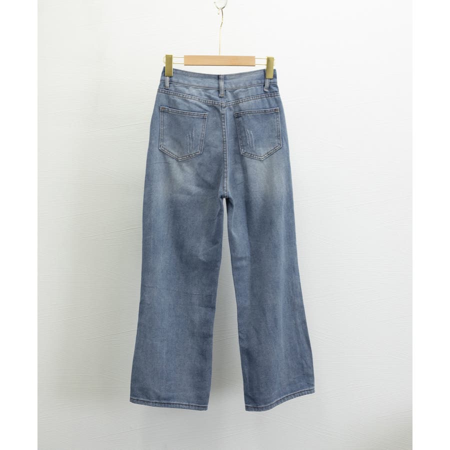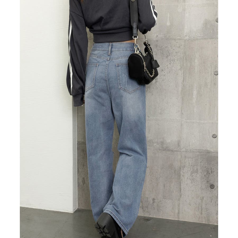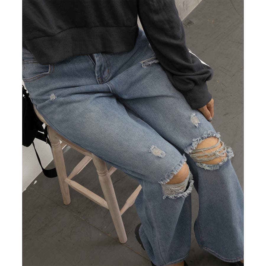 トレンド感溢れるダメージ加工が特徴のデニムストレートパンツ