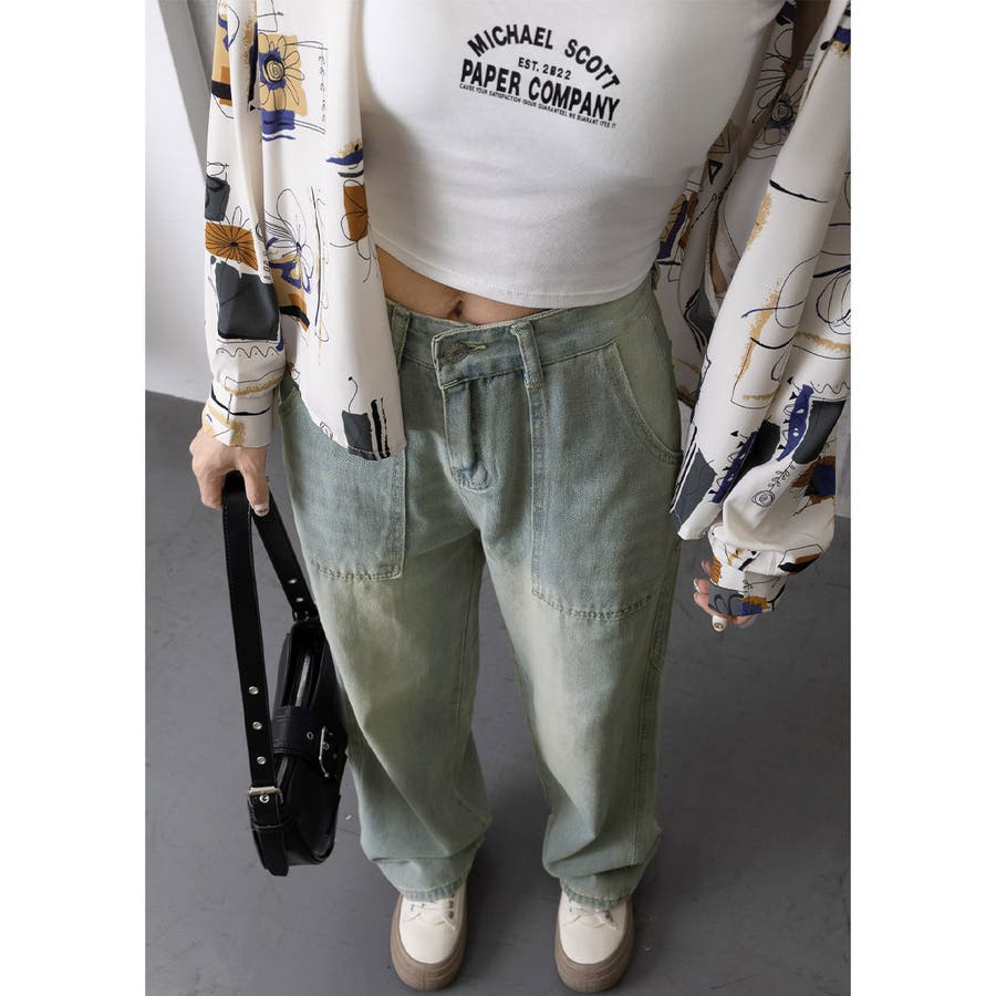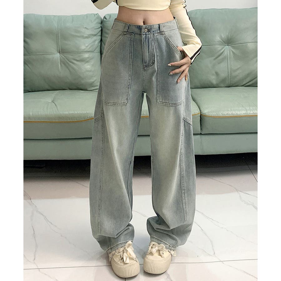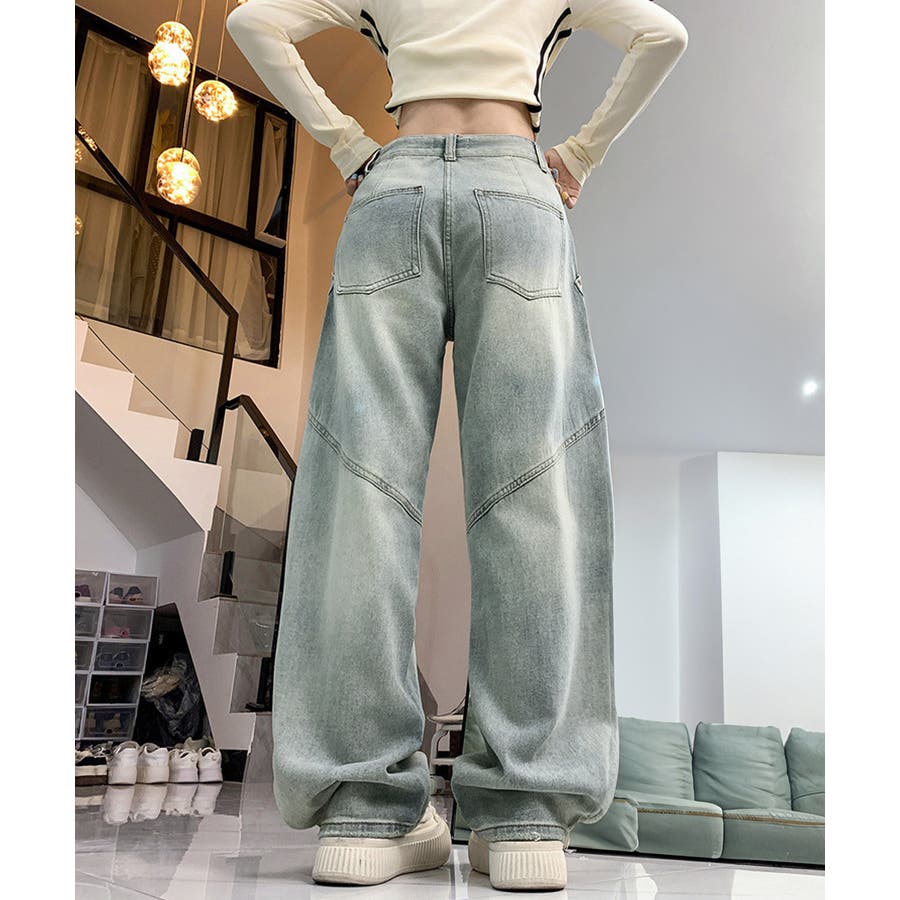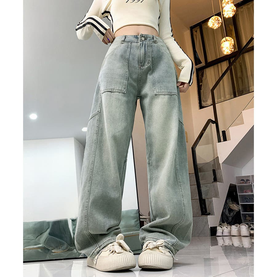 ゆったりデニム美脚 韓国風 ストリート 体型カバーボトムス