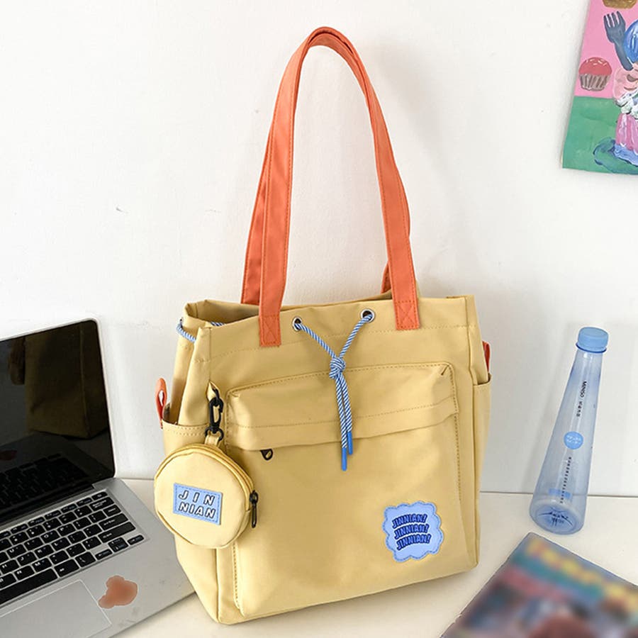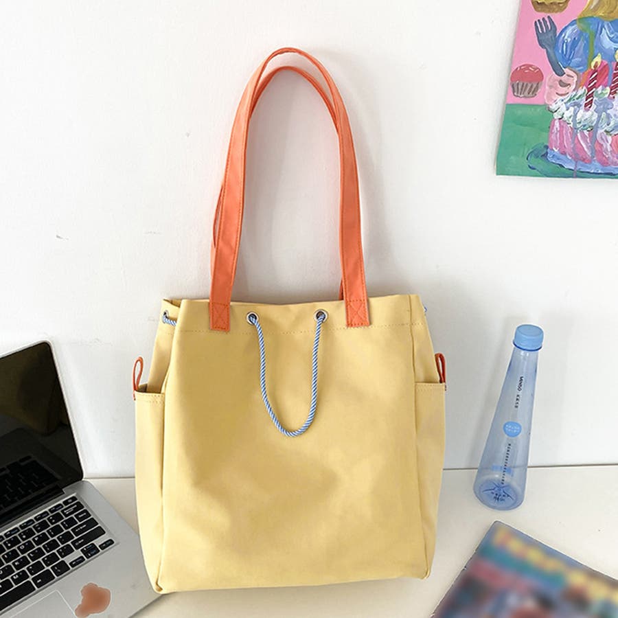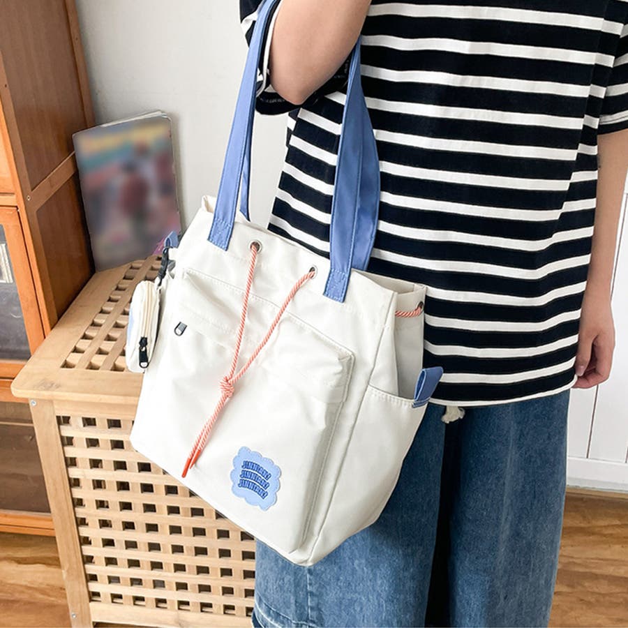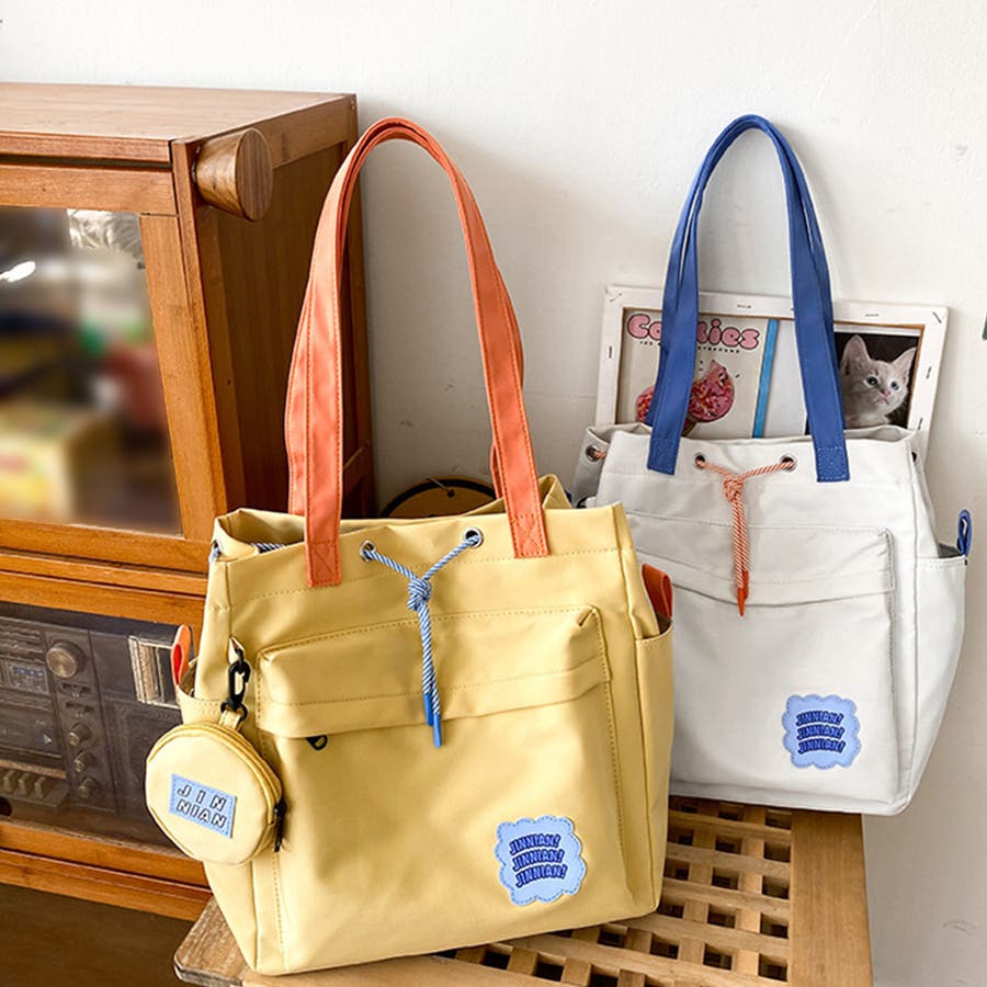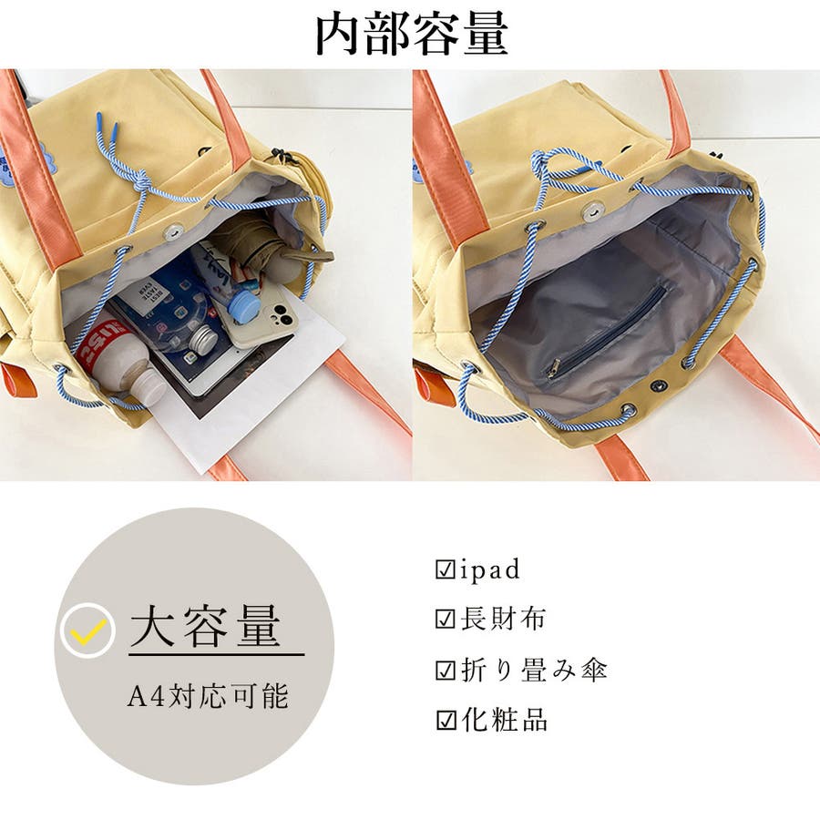 軽量で丈夫な素材で仕上げてられている巾着2wayトートバッグです