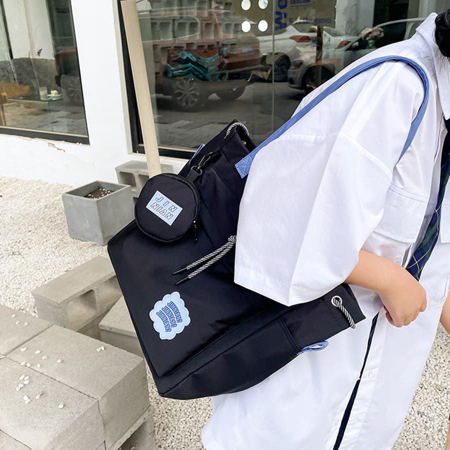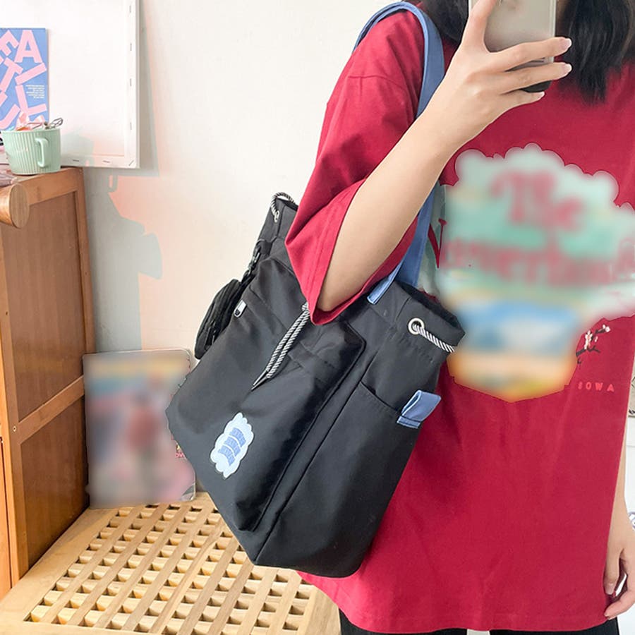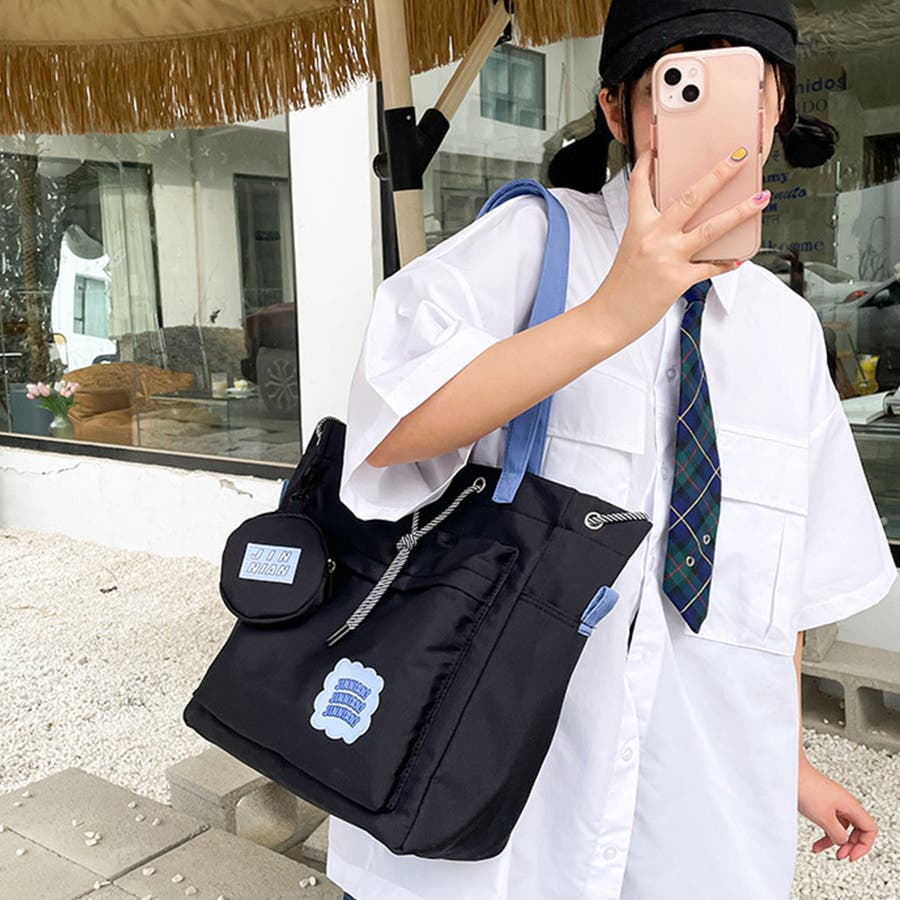 ナイロントート 黒 2WAY巾着トート ビックトート可愛い